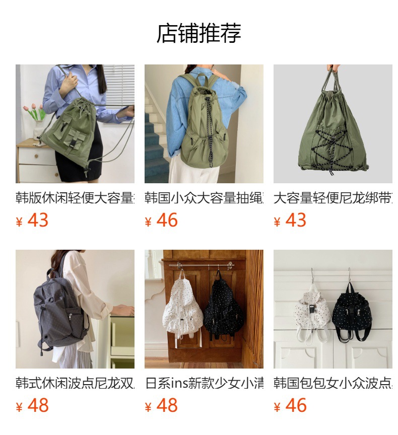 대용량 경량 나일론 스트랩 백팩 남녀 등산용 소형 백팩 고등학생 및 중학생을 위한 고급스러운 가방스토어 가기