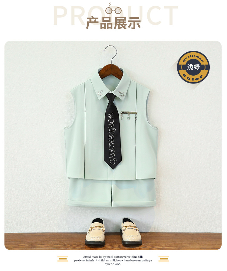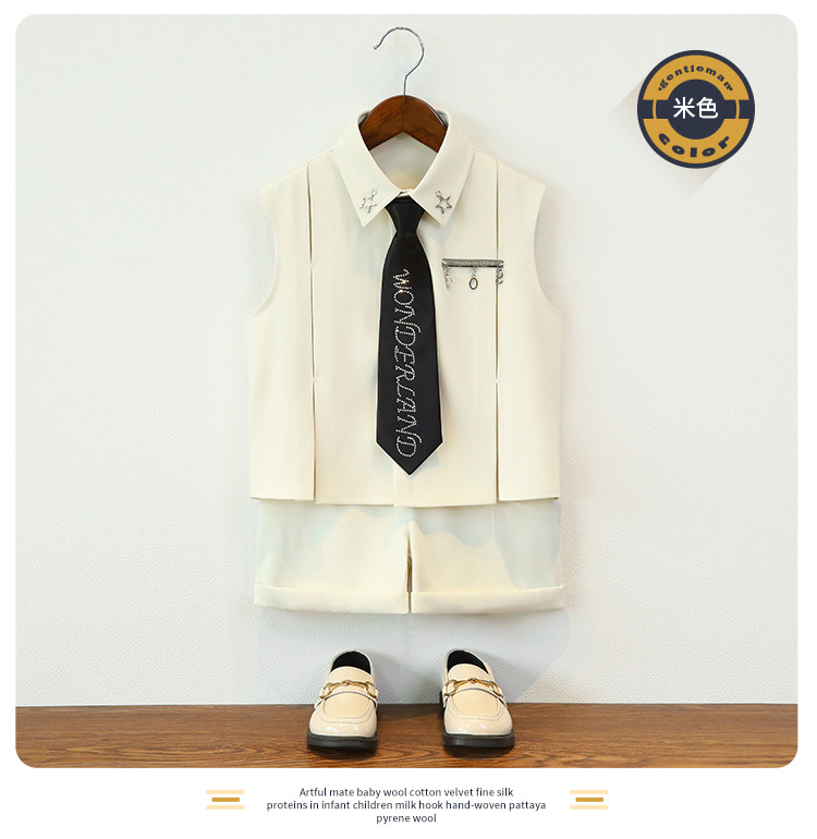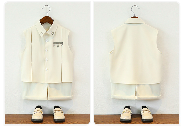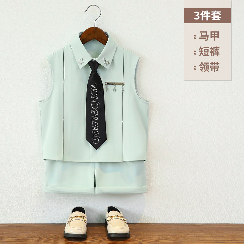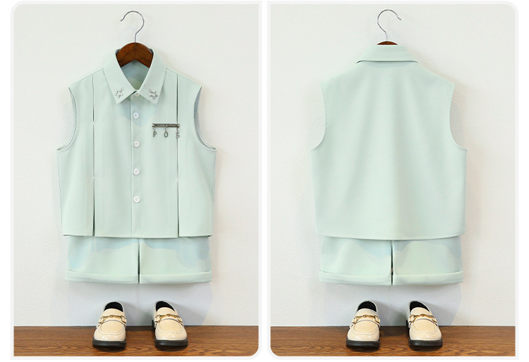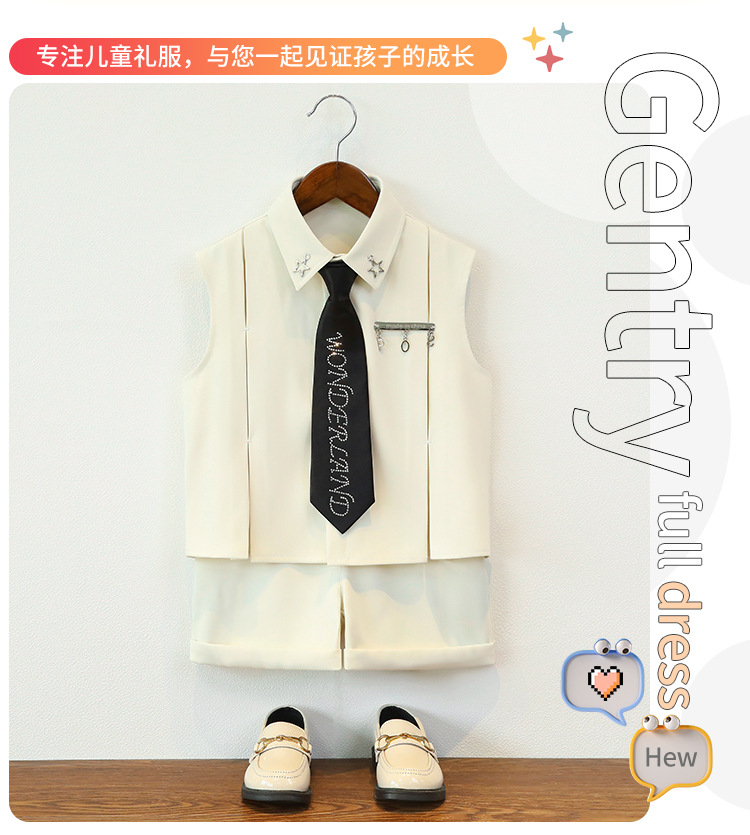 남아 여름옷, 아동 민소매 셔츠, 멋진 투피스 세트, 남아 스트리트 촬영 캣워크 의상, 조끼, 플라워 걸 드레스스토어 가기