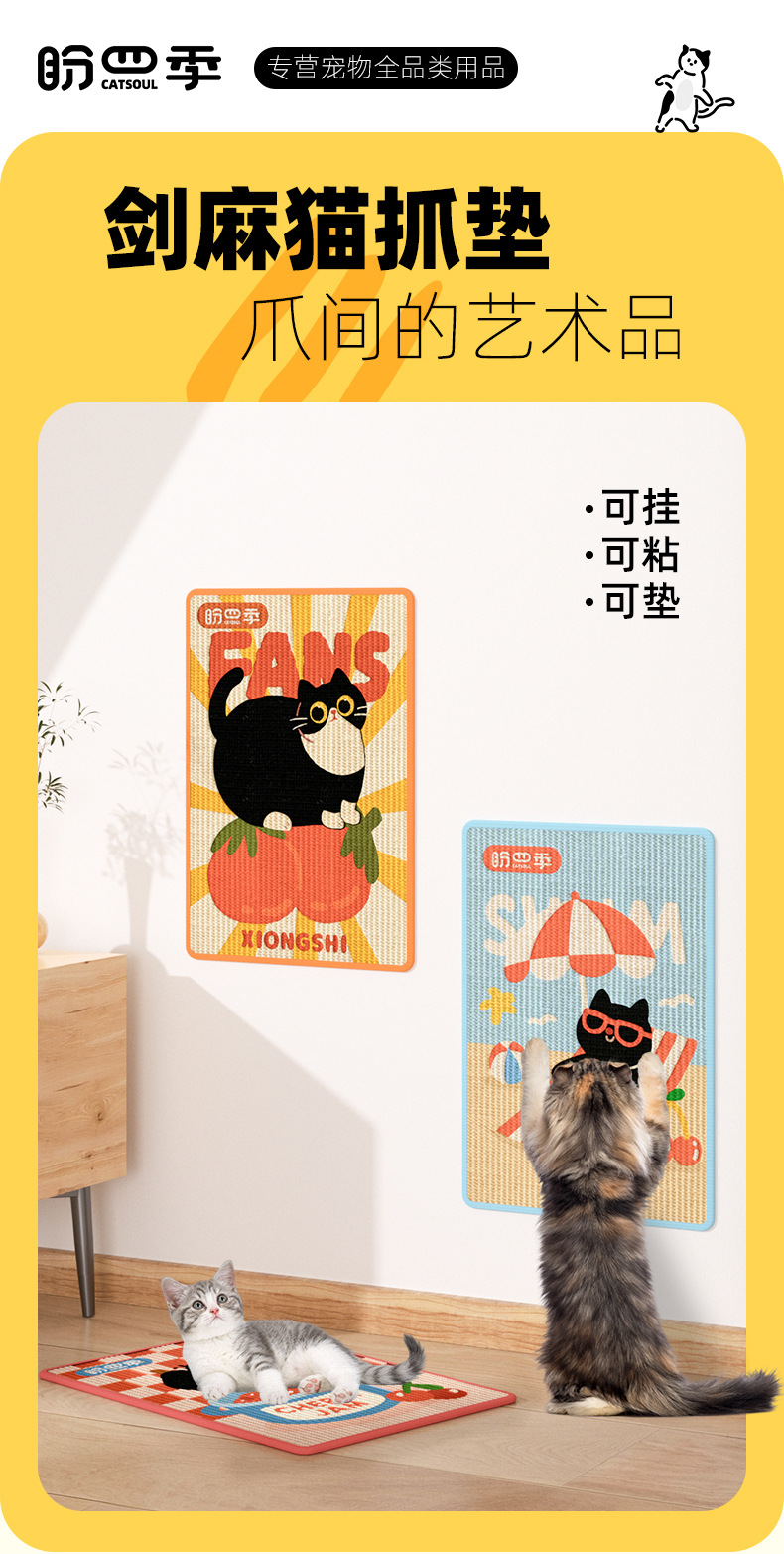 사마귀 고양이 스크래치 패드, 애완용 고양이 홈 매트, 귀여운 스타일의 고양이 스크래치 보드, 내마모성, 긁힘 방지 및 부스러기 없는 고양이 발톱스토어 가기