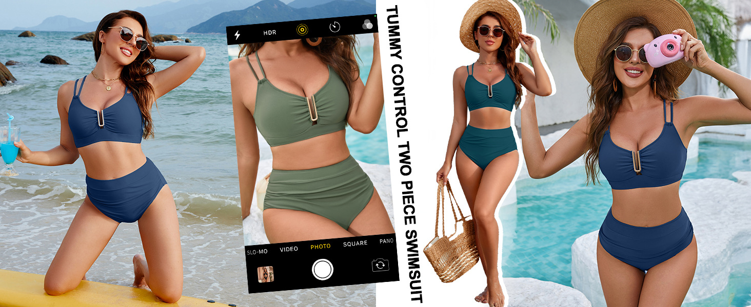 2025 새로운 아마존 꽉 백리스 수영복 여성 섹시한 스트랩 작은 가슴 푸시 업 비치 수영복 여성 멀티 컬러