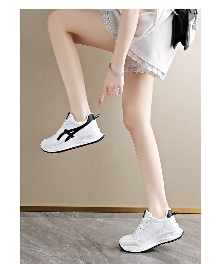 Ins 한국어 버전 여성용 새 아빠 신발 2025 여름 새 캐주얼 스포츠 여성 신발 두꺼운 밑창 경량 레이스 업 흰색 신발스토어 가기