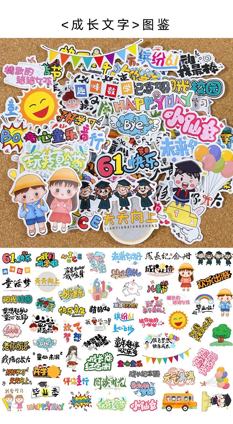 어린이 성장 기념 사진 앨범 스티커 아기 성장 일기 만화 유치원 스티커 텍스트 캐릭터 장식