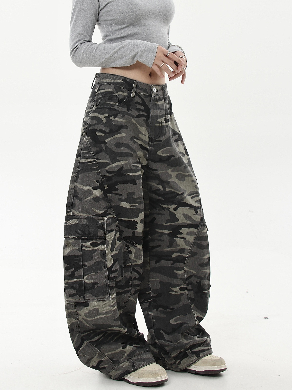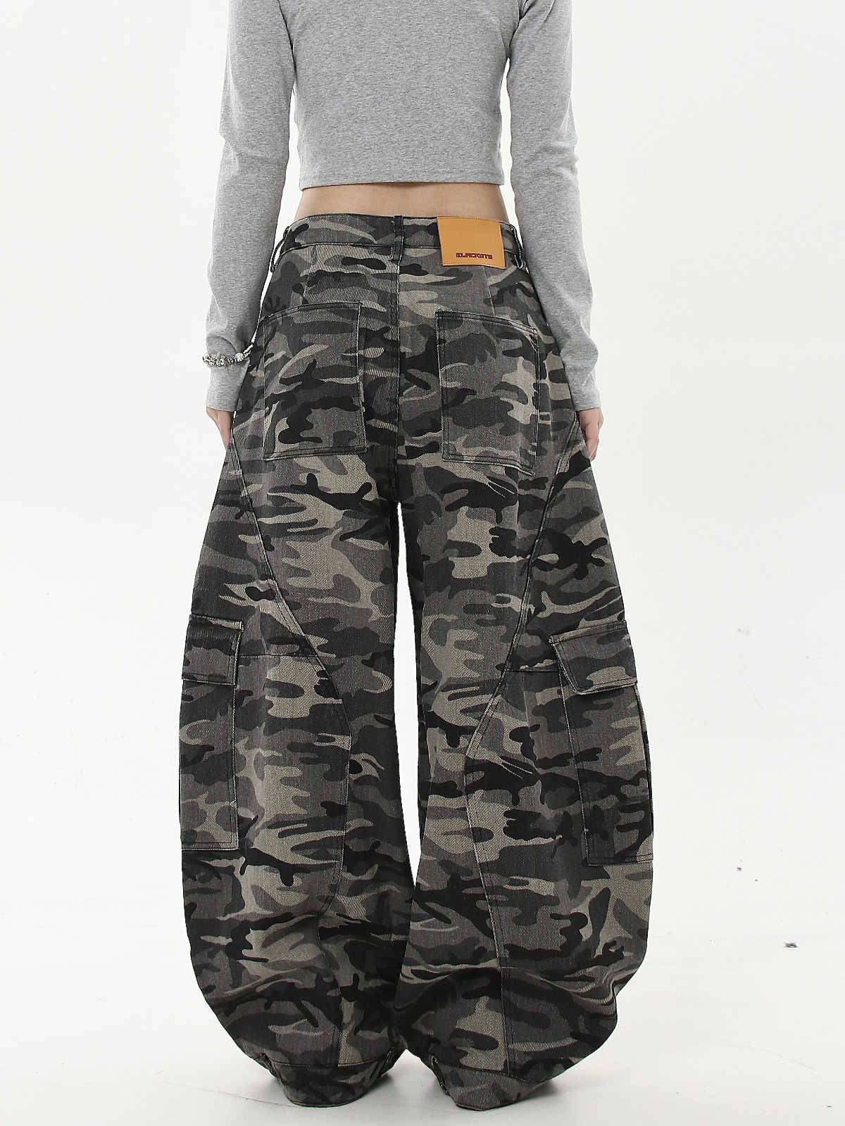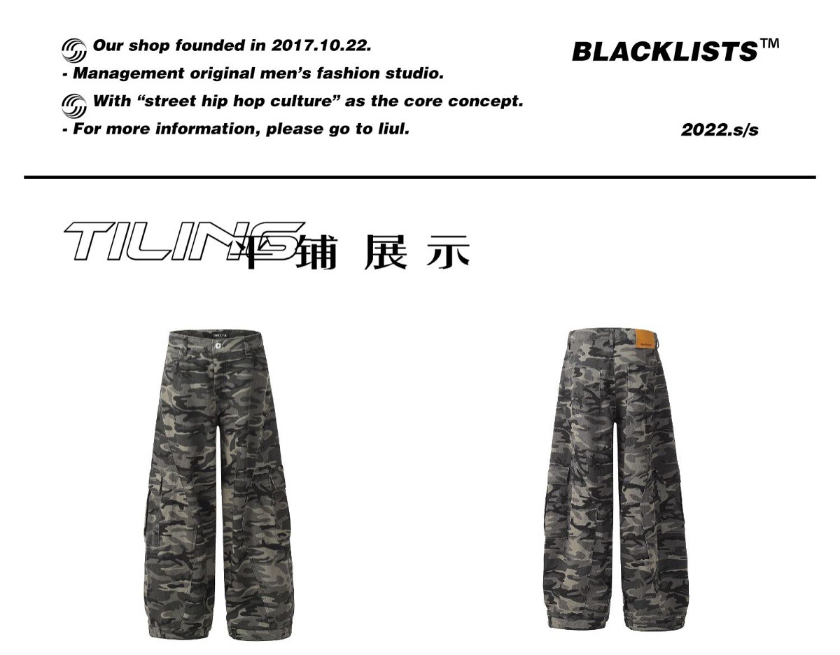 BLACKLISTS 남성용 및 여성용 아메리칸 레트로 멀티 포켓 카모 카고 팬츠 루즈 와이드 레그 데님 디컨스트럭티드 세이버 팬츠
