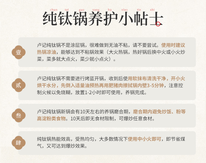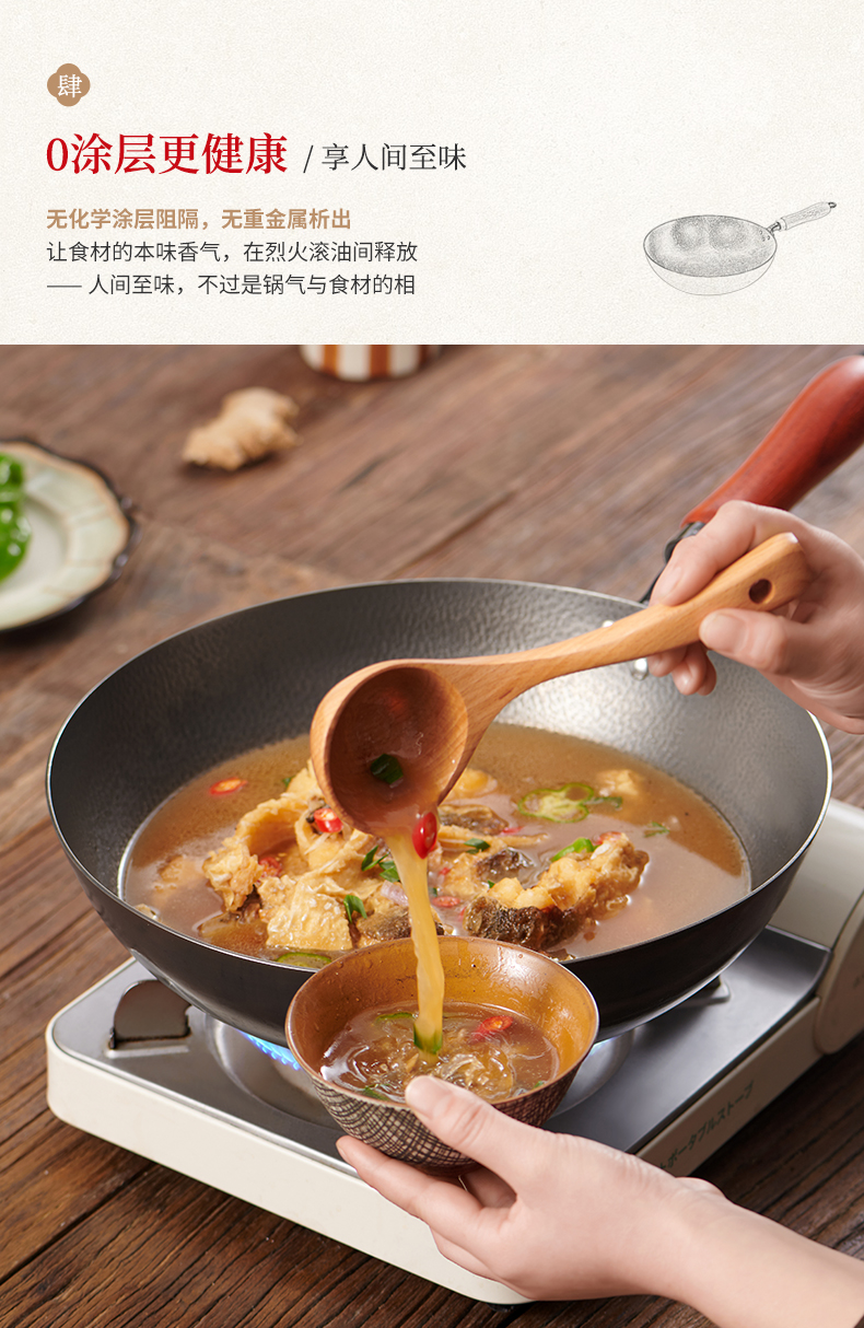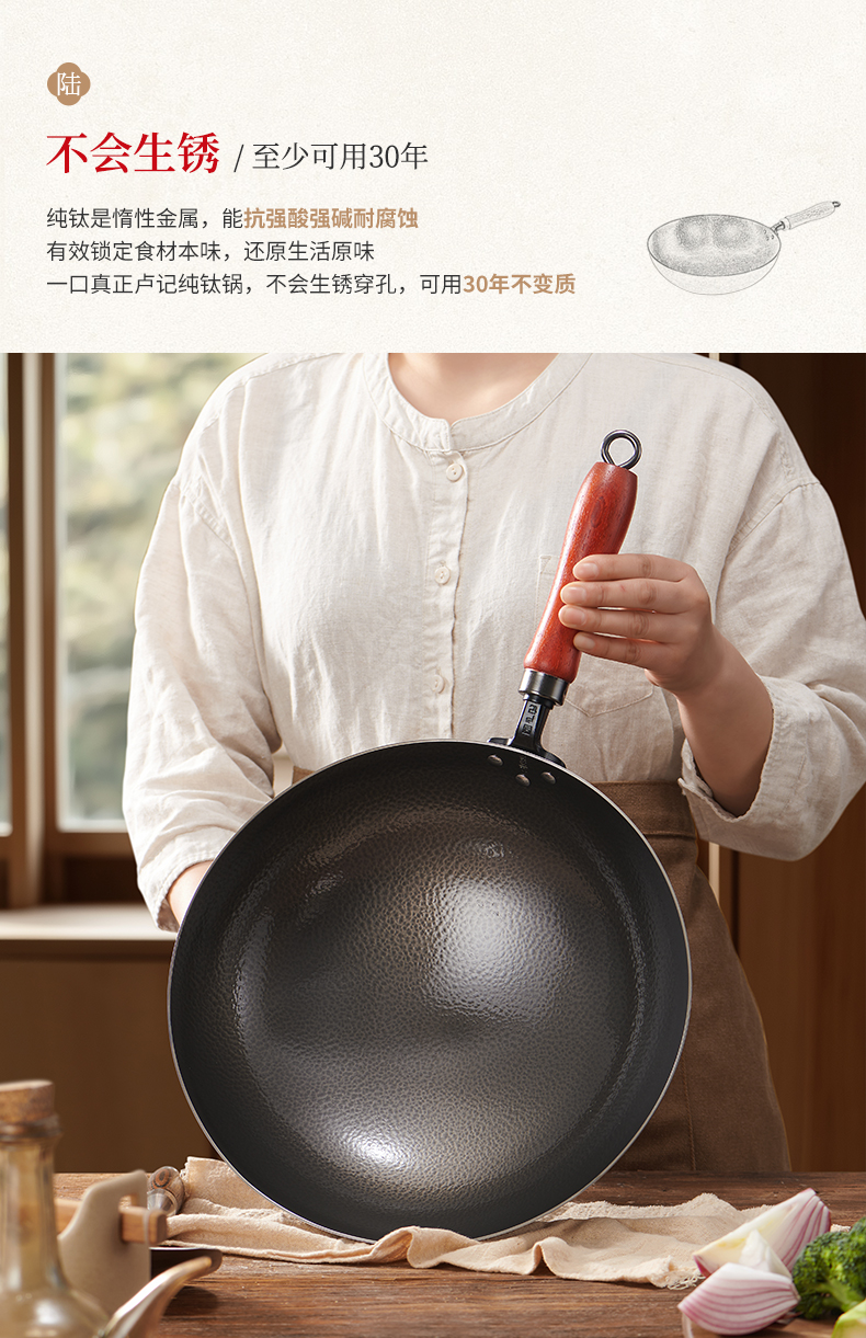 • 2.0mm 냉단조 망치 순수 티타늄 둥근 바닥 웍 34cm (3-6인)