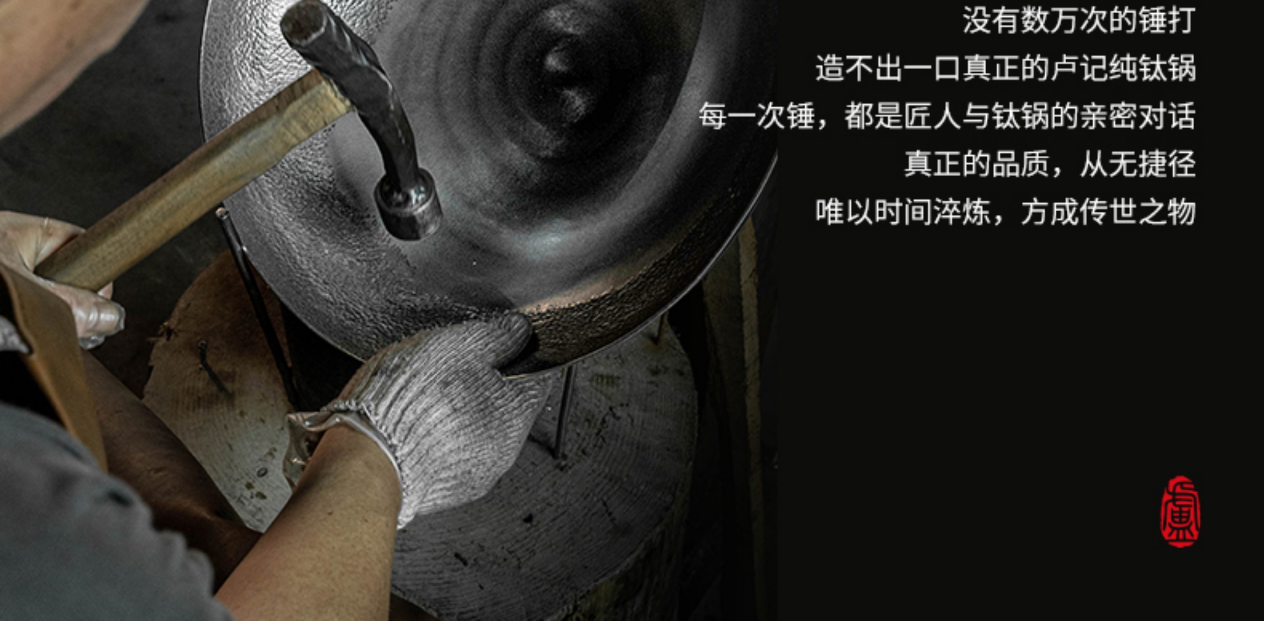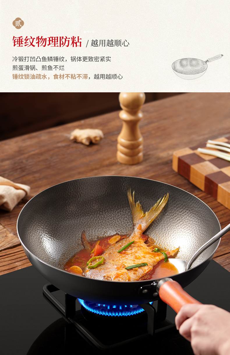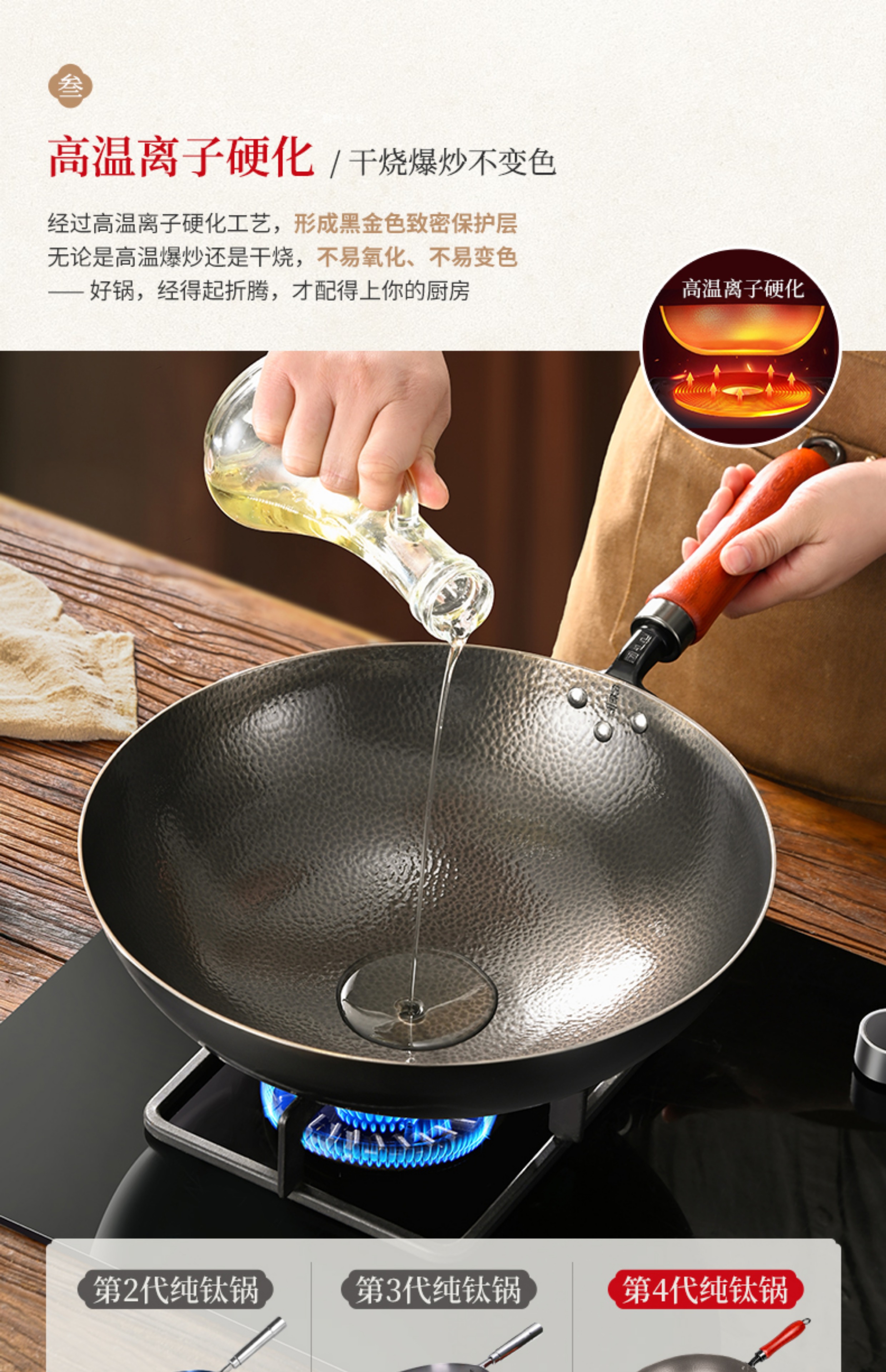 티타늄 가정용 Luji Wok 비 코팅 스틱 Wok 가스 스토브 모든 티타늄 특수 워크 망치 패턴 모든 티타늄 라운드 바닥스토어 가기