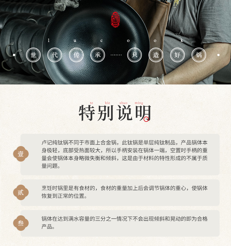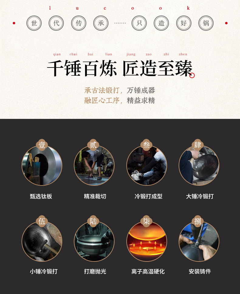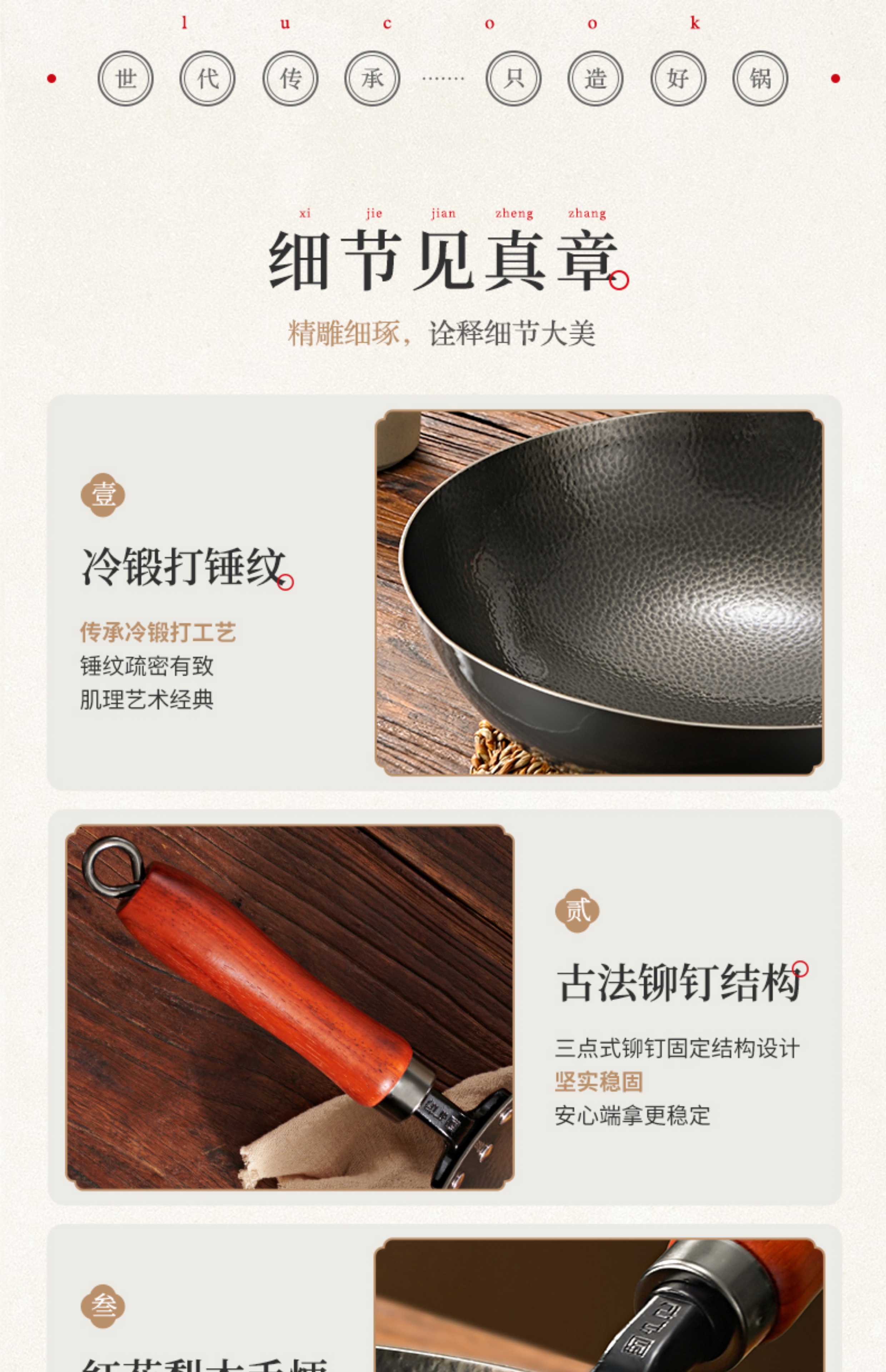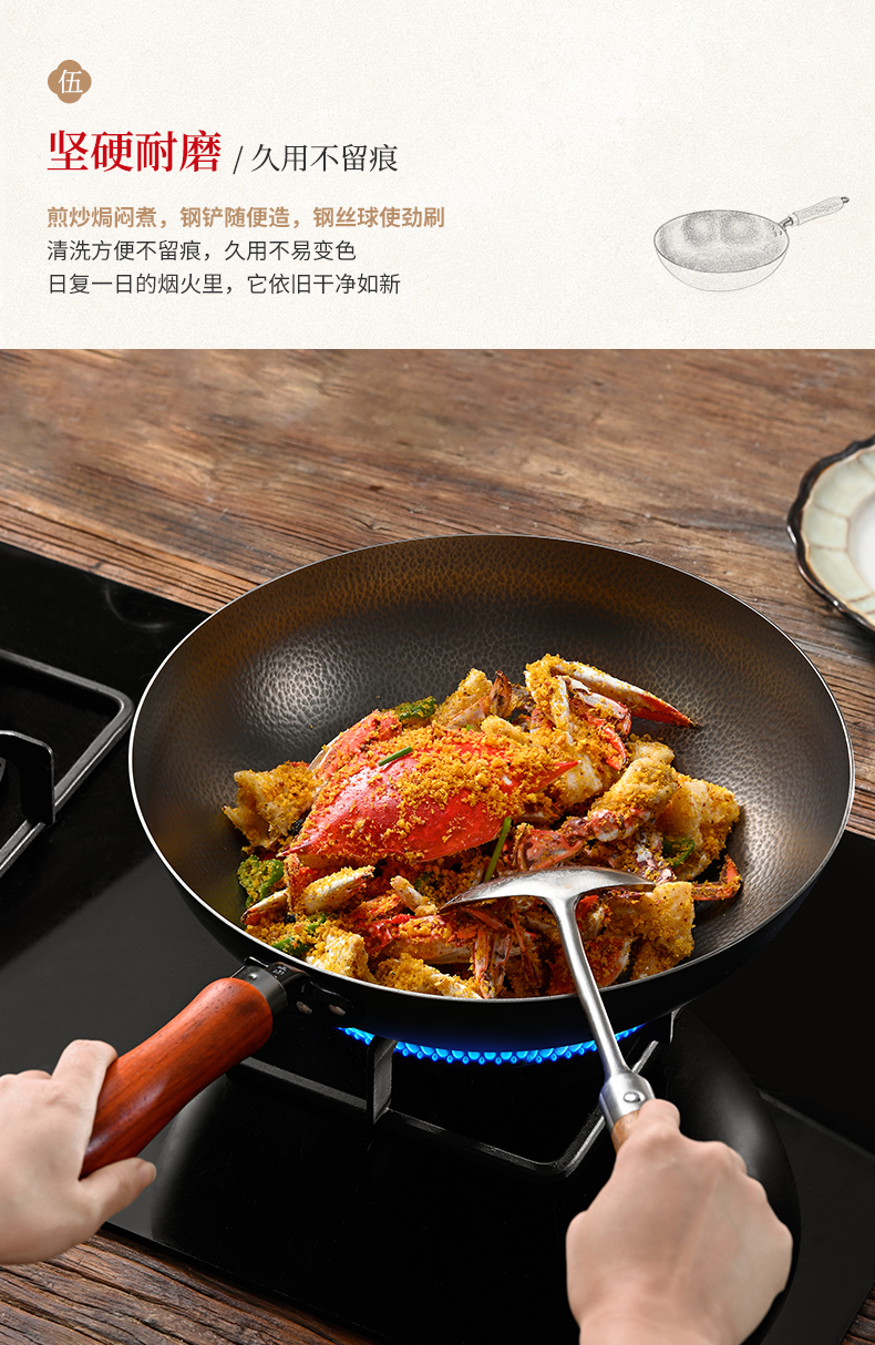 티타늄 가정용 Luji Wok 비 코팅 스틱 Wok 가스 스토브 모든 티타늄 특수 워크 망치 패턴 모든 티타늄 라운드 바닥스토어 가기