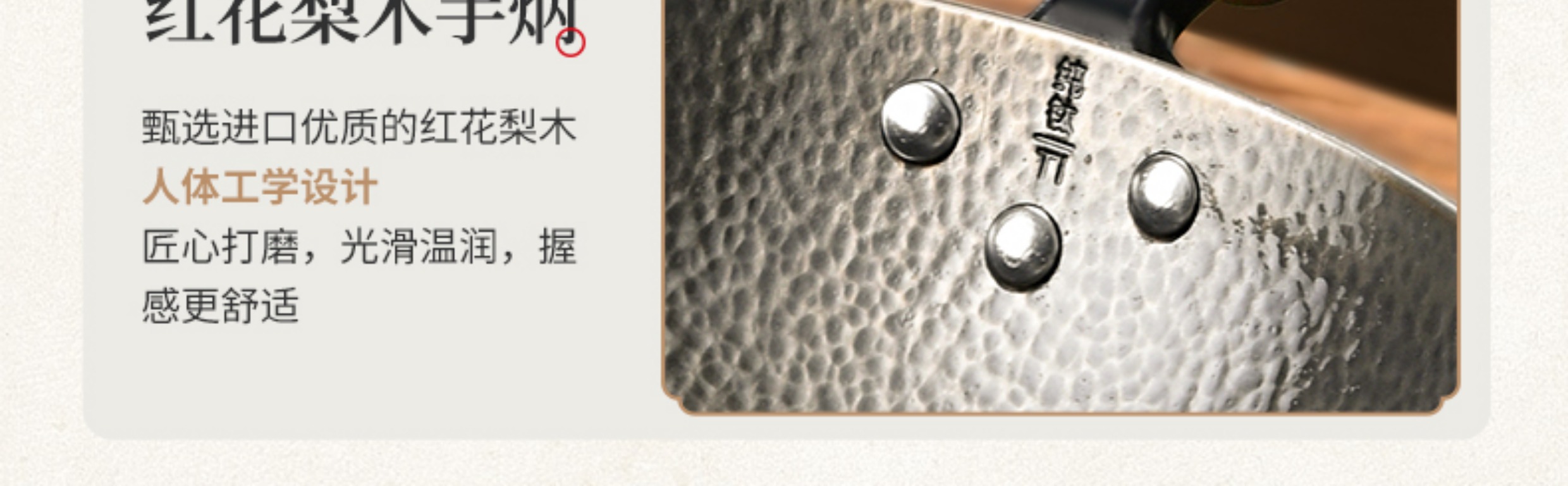 • 2.0mm 냉단조 망치 순수 티타늄 둥근 바닥 웍 32cm (2-5인)