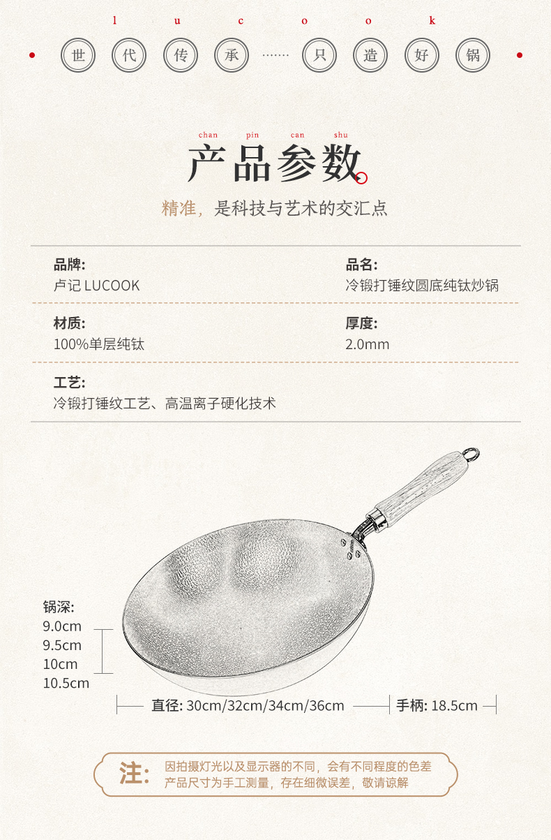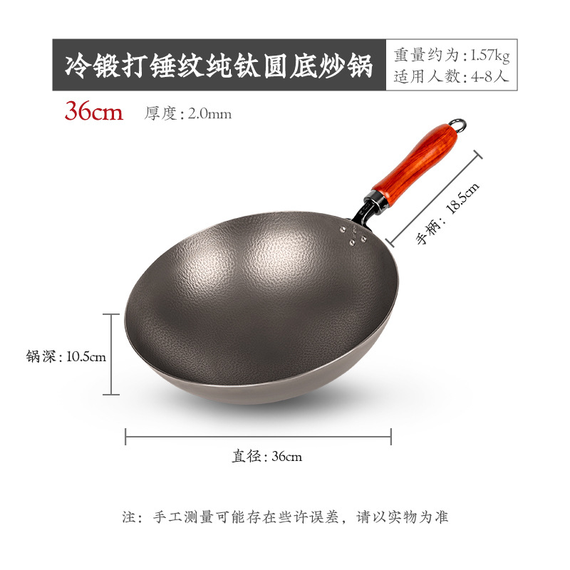 • 2.0mm 냉단 망치 순수 티타늄 둥근 바닥 웍 36cm (4-8인)