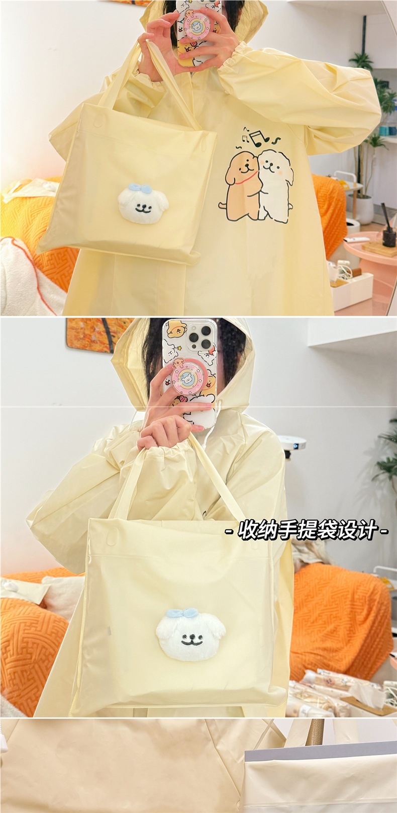 라인 강아지 비옷, 귀여운 봉제 핸드백, 여성용 전신 방수 비옷, 일체형 전기차 비옷스토어 가기