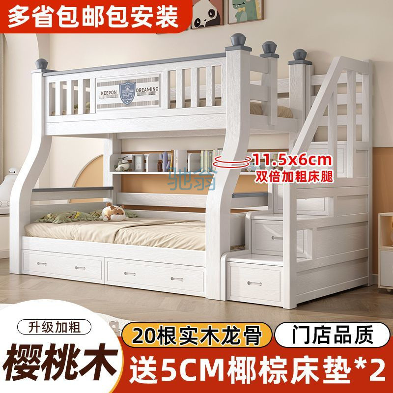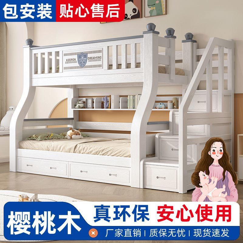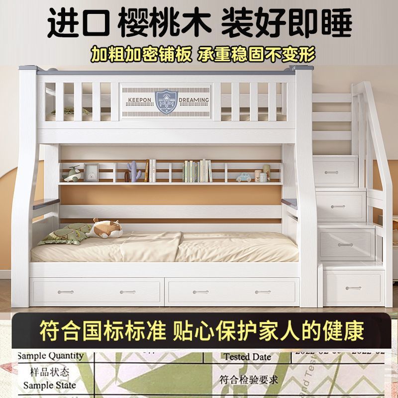 FLE 체리 우드 어머니-아이 침대 굵은 단단한 나무 침대 어린이 침대 더블 침대 두꺼운 2 층 침대스토어 가기
