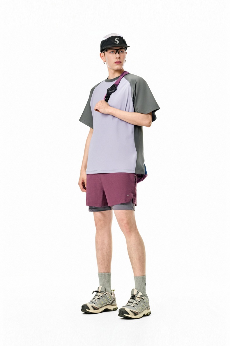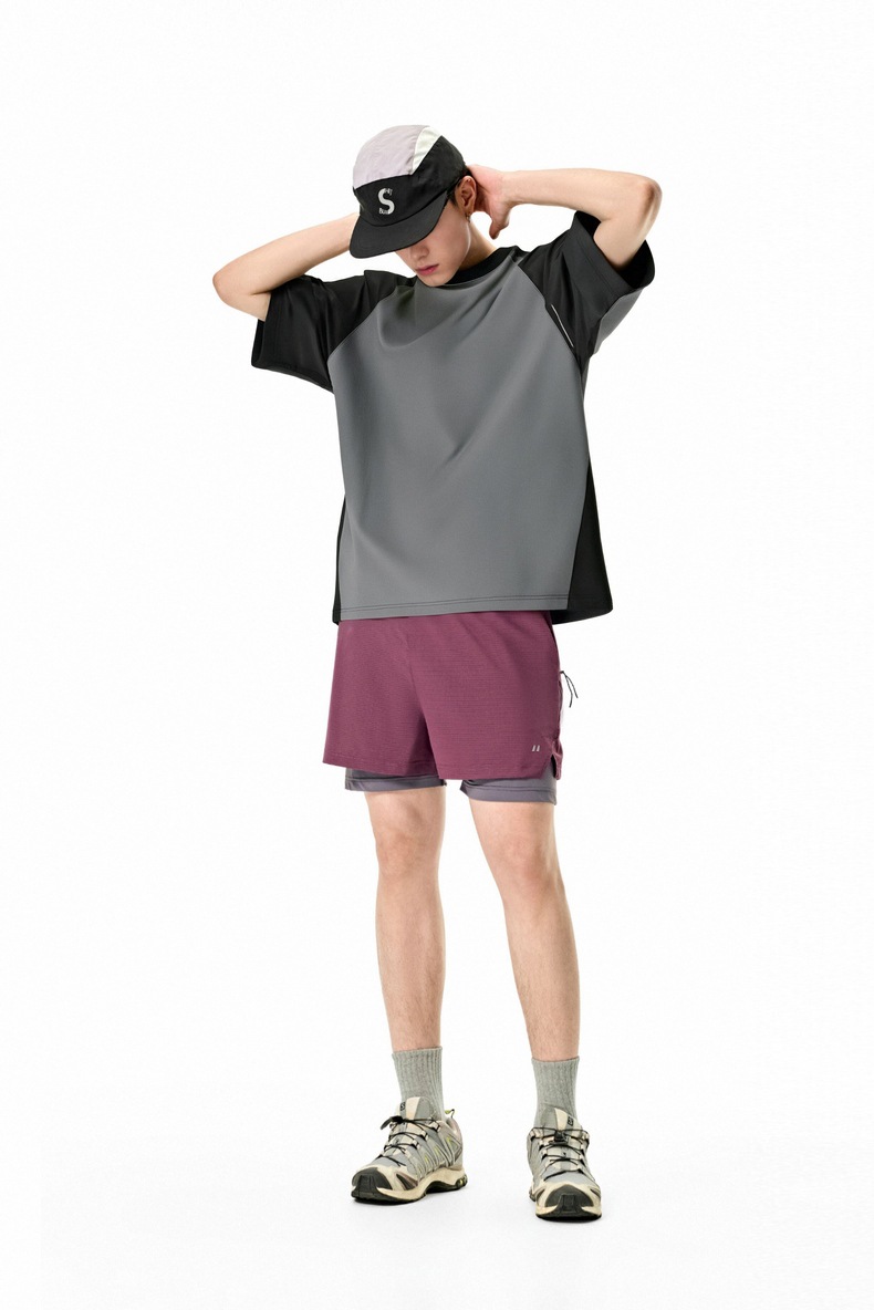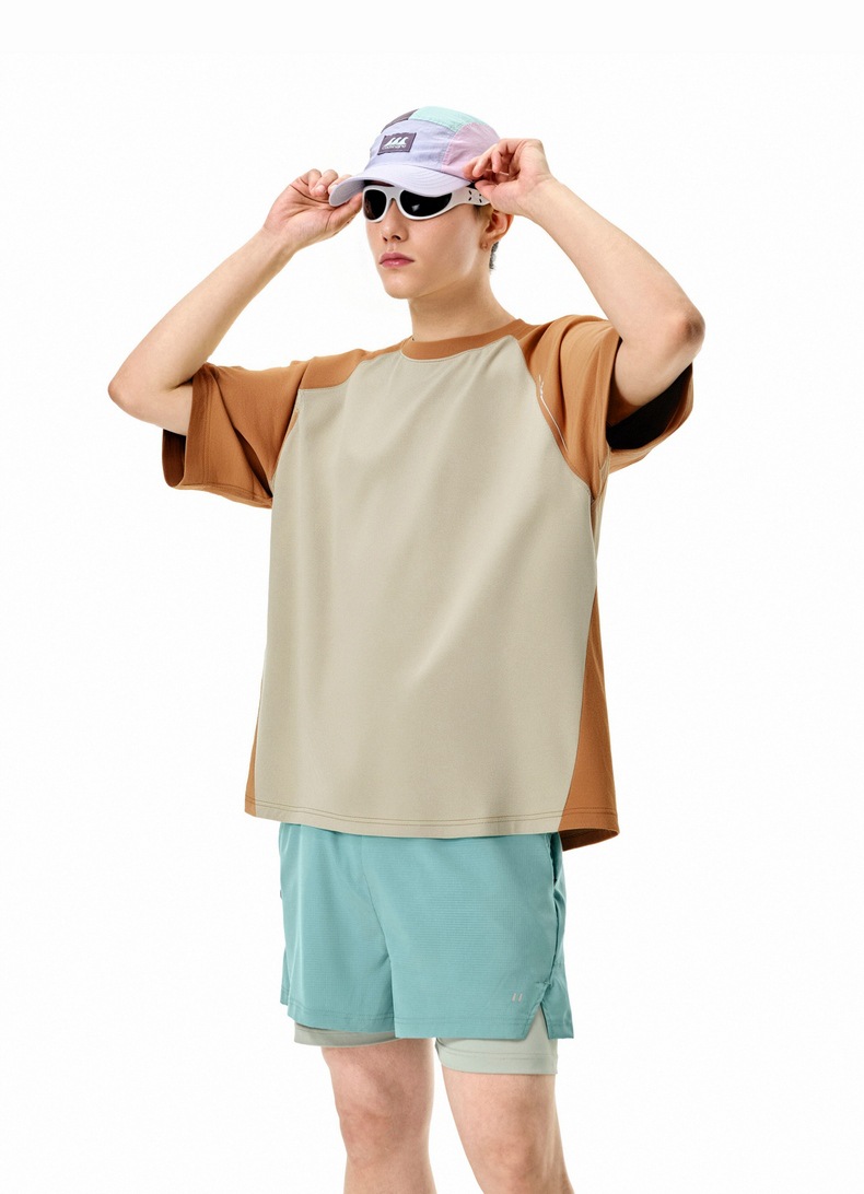 Jie Zhan 남성복 | COOLMAX Raglan 티셔츠 2025 봄/여름 신제품 수분 흡수 빠른 건조 대비 색상 야외 등산 짧은 소매