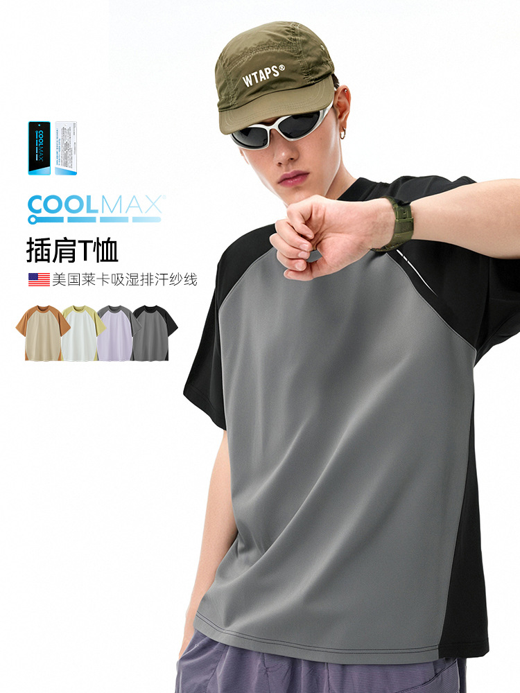 지에잔 남성복 | COOLMAX 래글런 티셔츠 2026 봄 여름 신상품 흡습속건 배색 아웃도어 등산 반팔스토어 가기
