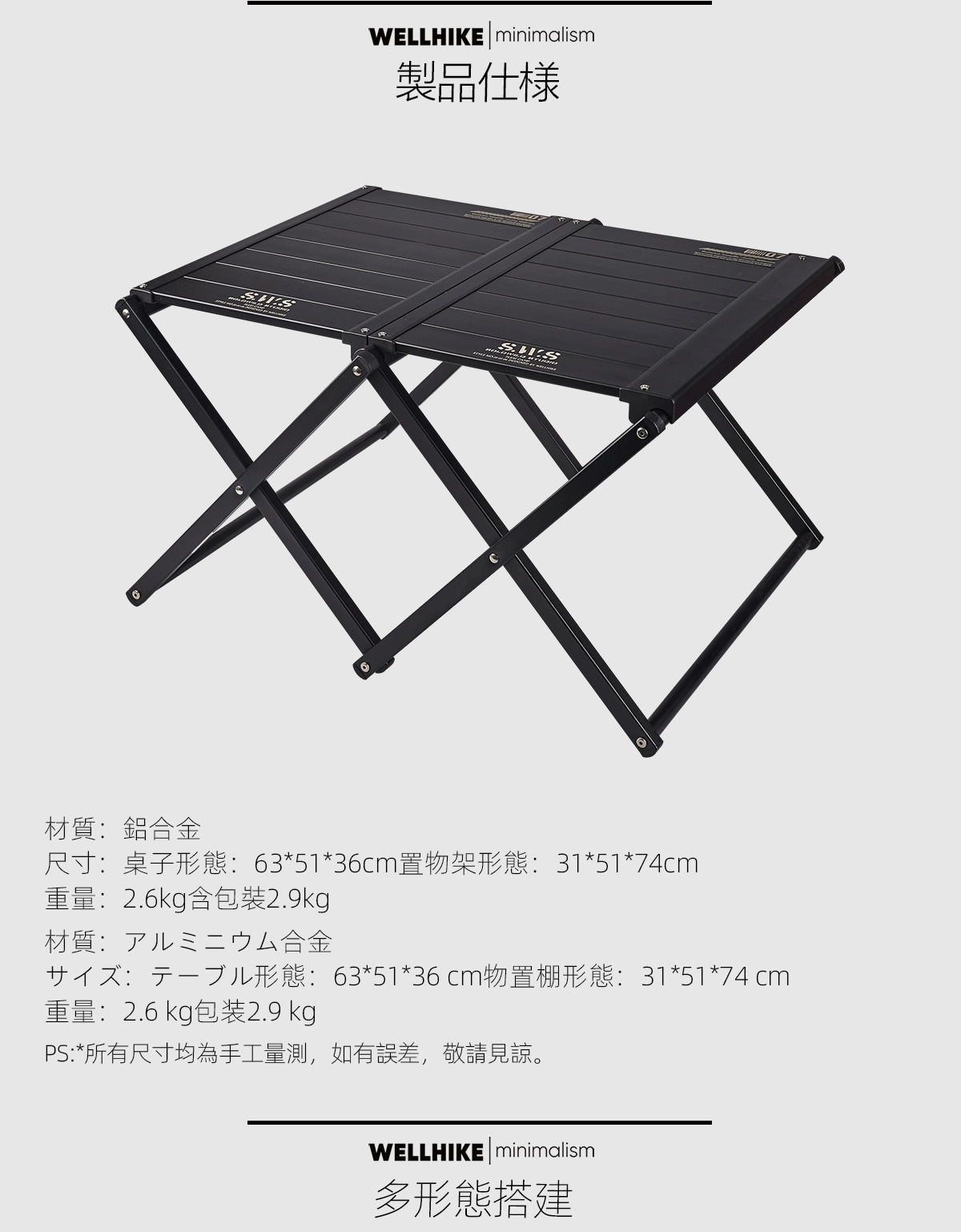 WELLHIKE 피크닉 테이블 접이식 테이블 야외 캠핑 이중 목적 테이블 휴대용 접이식 알루미늄 합금 이중 목적 스토리지 랙
