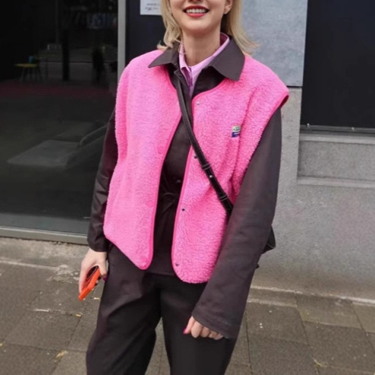 대외 무역 여성 민소매 모직 조끼 탑 유럽과 미국의 국경 간 패션 여성 봄, 가을 느슨한 싱글 브레스트 조끼 재킷