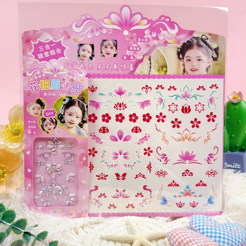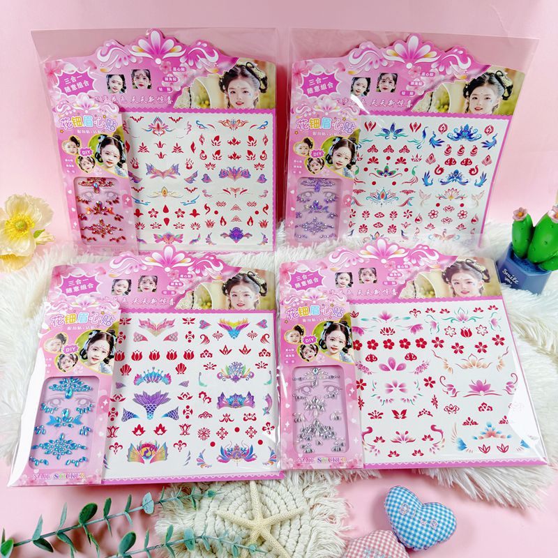 새로운 더블 레이어 아름다움 두더지 눈썹 스티커 투인원 고대 스타일 아름다운 소녀 액세서리 표현 얼굴 스티커 투 위안
