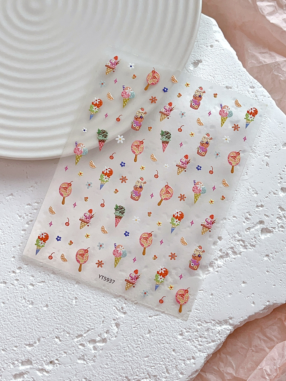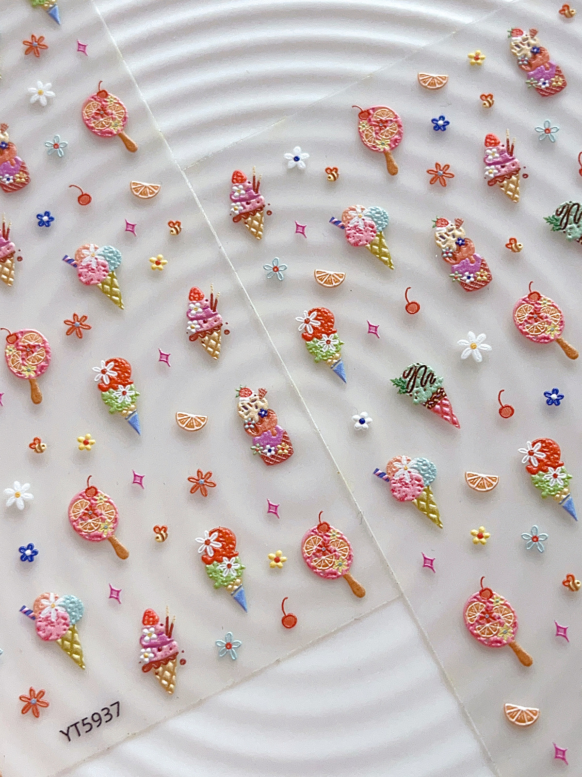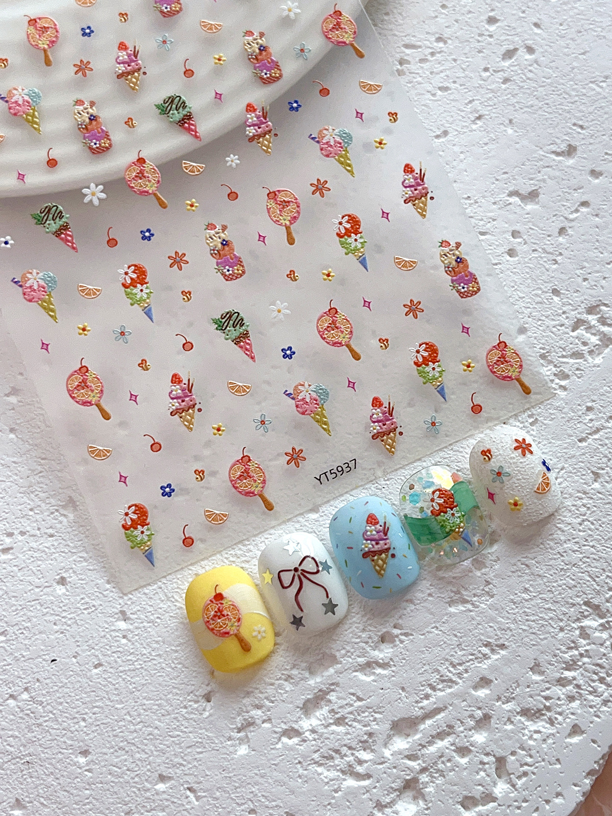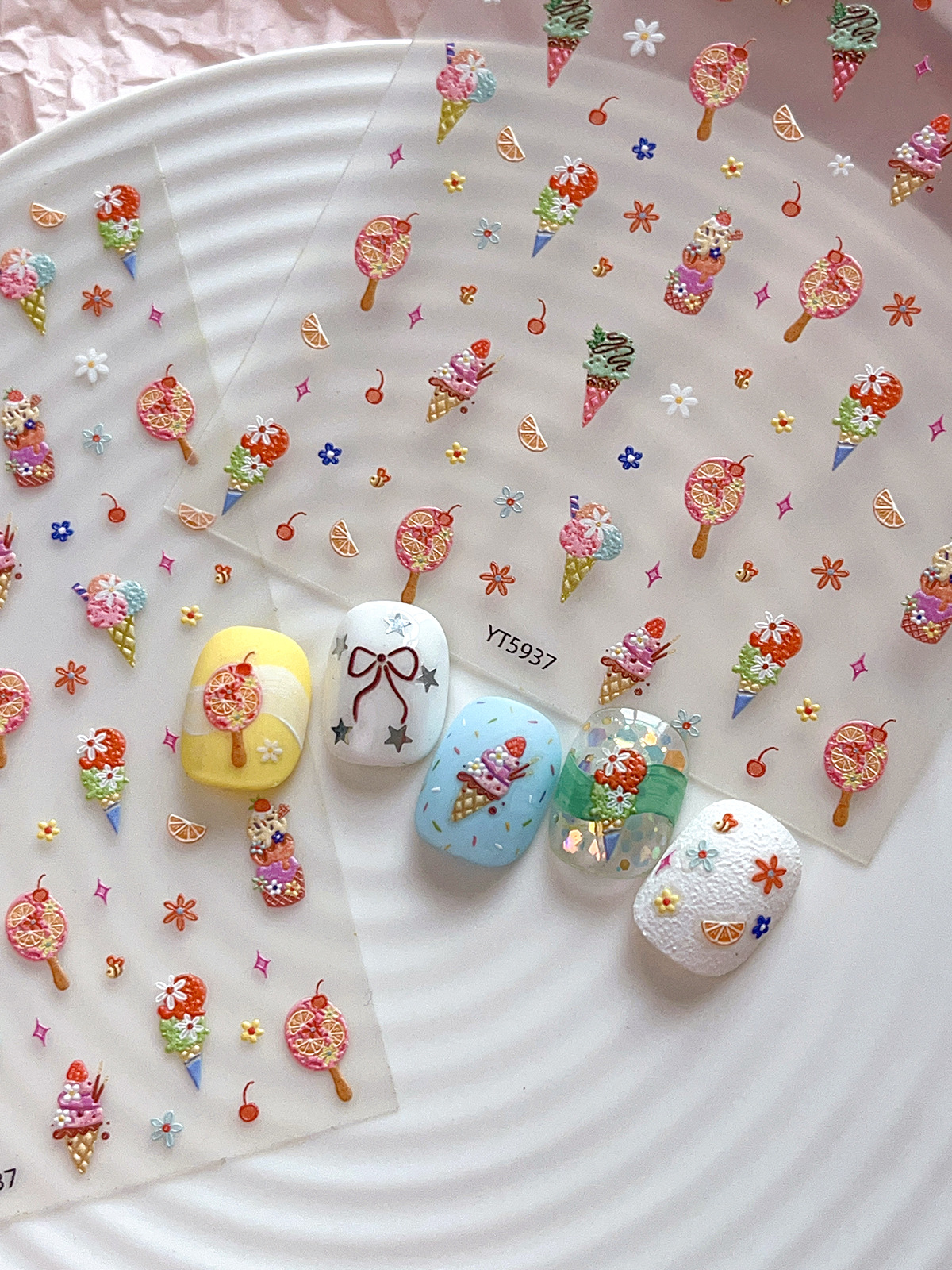 YITU 엘리베이티드 아이스크림 네일 아트 스티커 여름 달콤하고 귀여운 꽃 체리 장식 스티커 YT5937