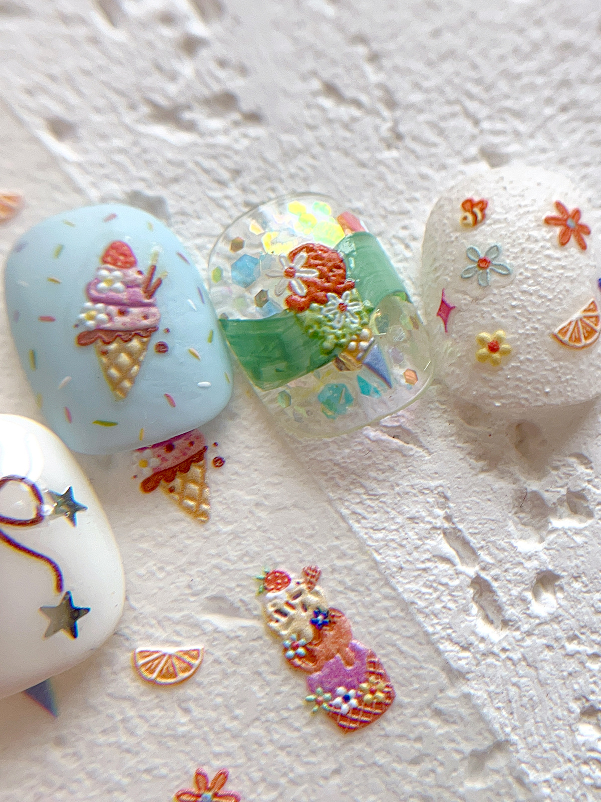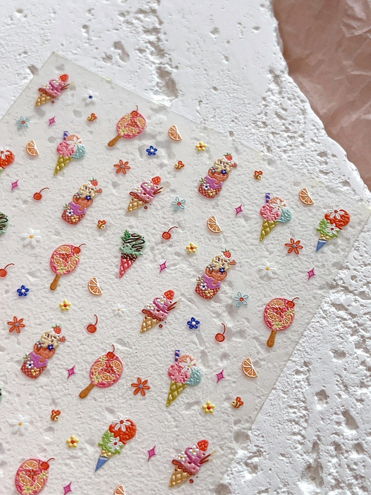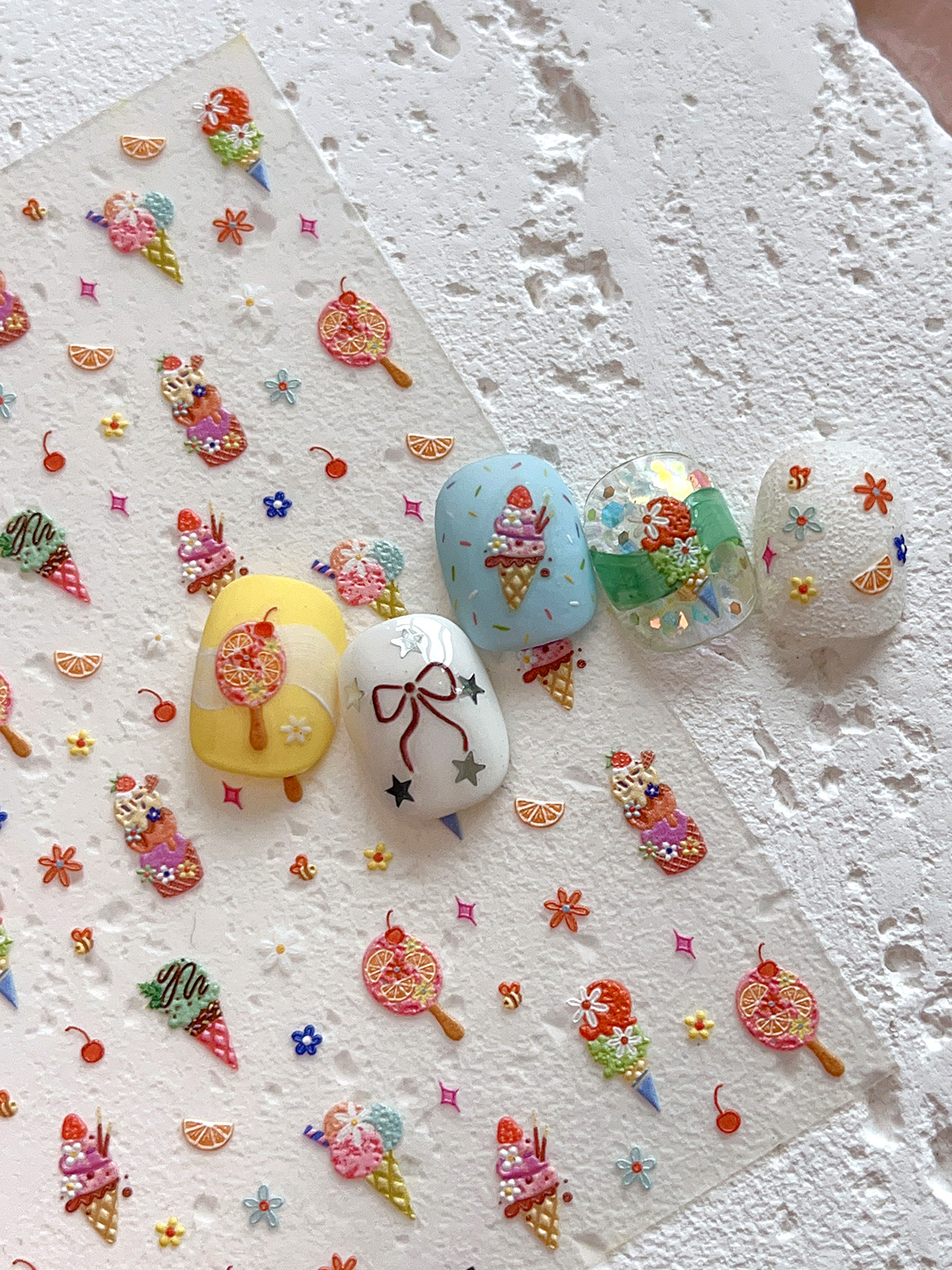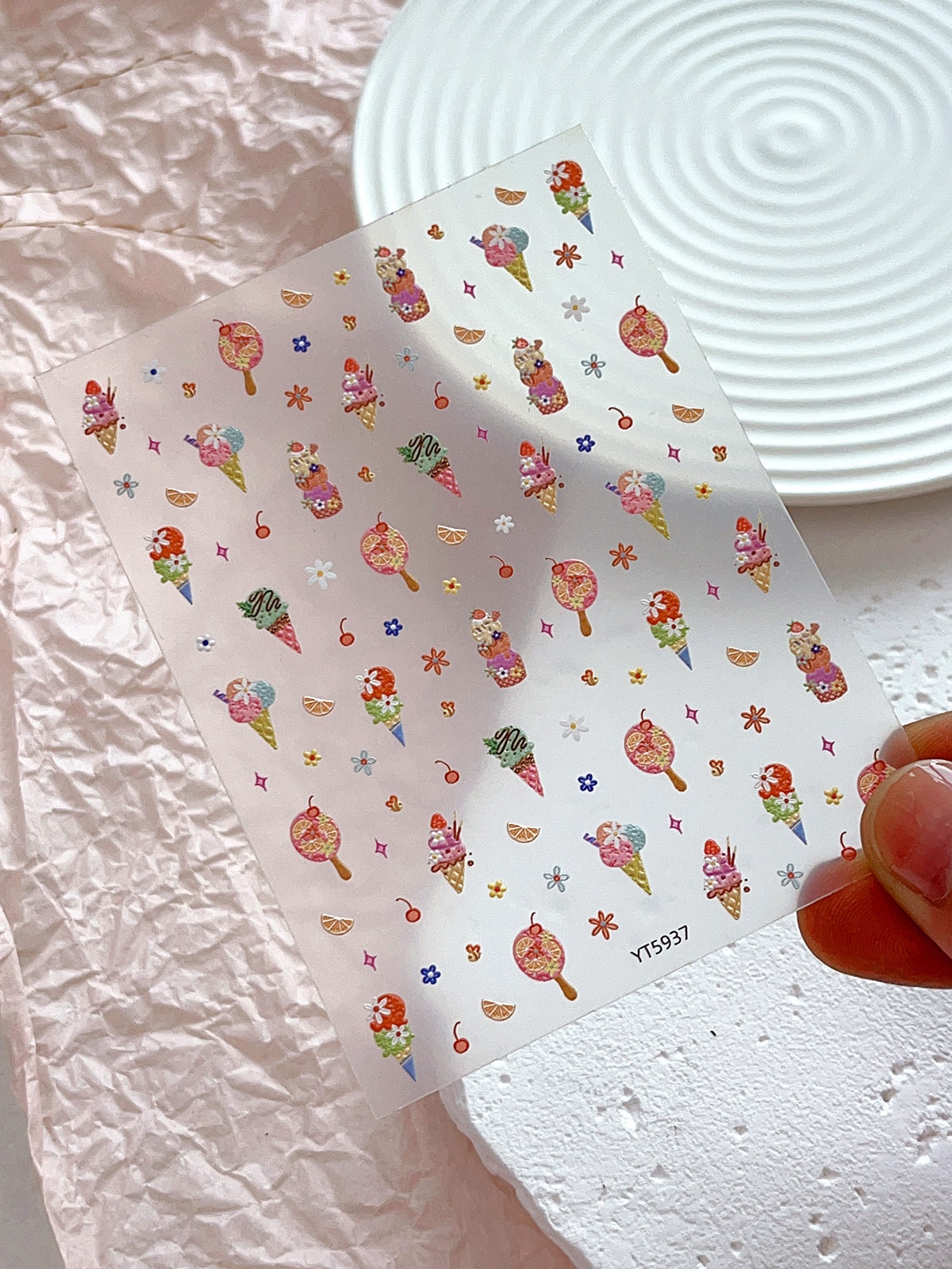 YITU 엘리베이티드 아이스크림 네일 아트 스티커 여름 달콤하고 귀여운 꽃 체리 장식 스티커 YT5937