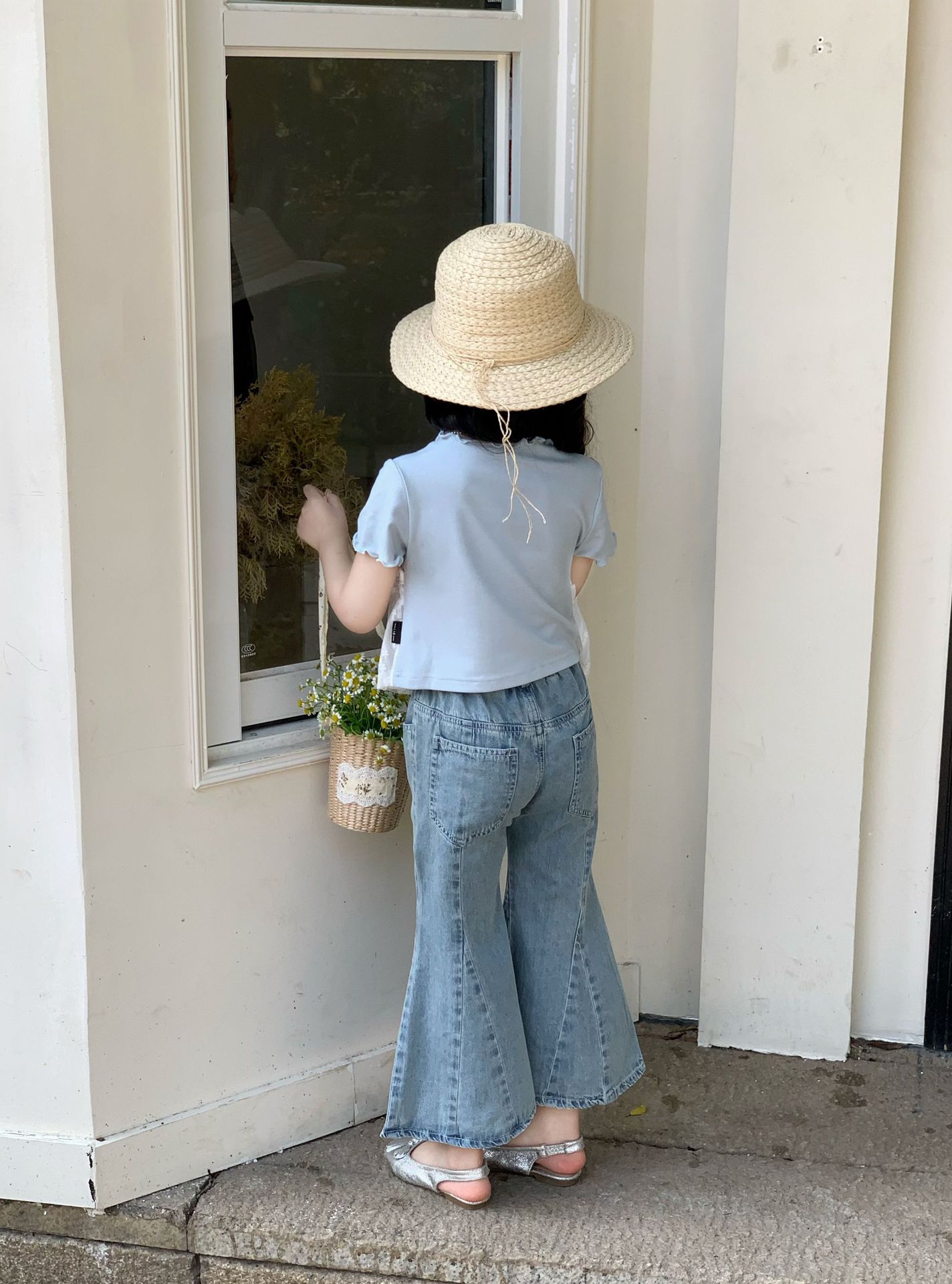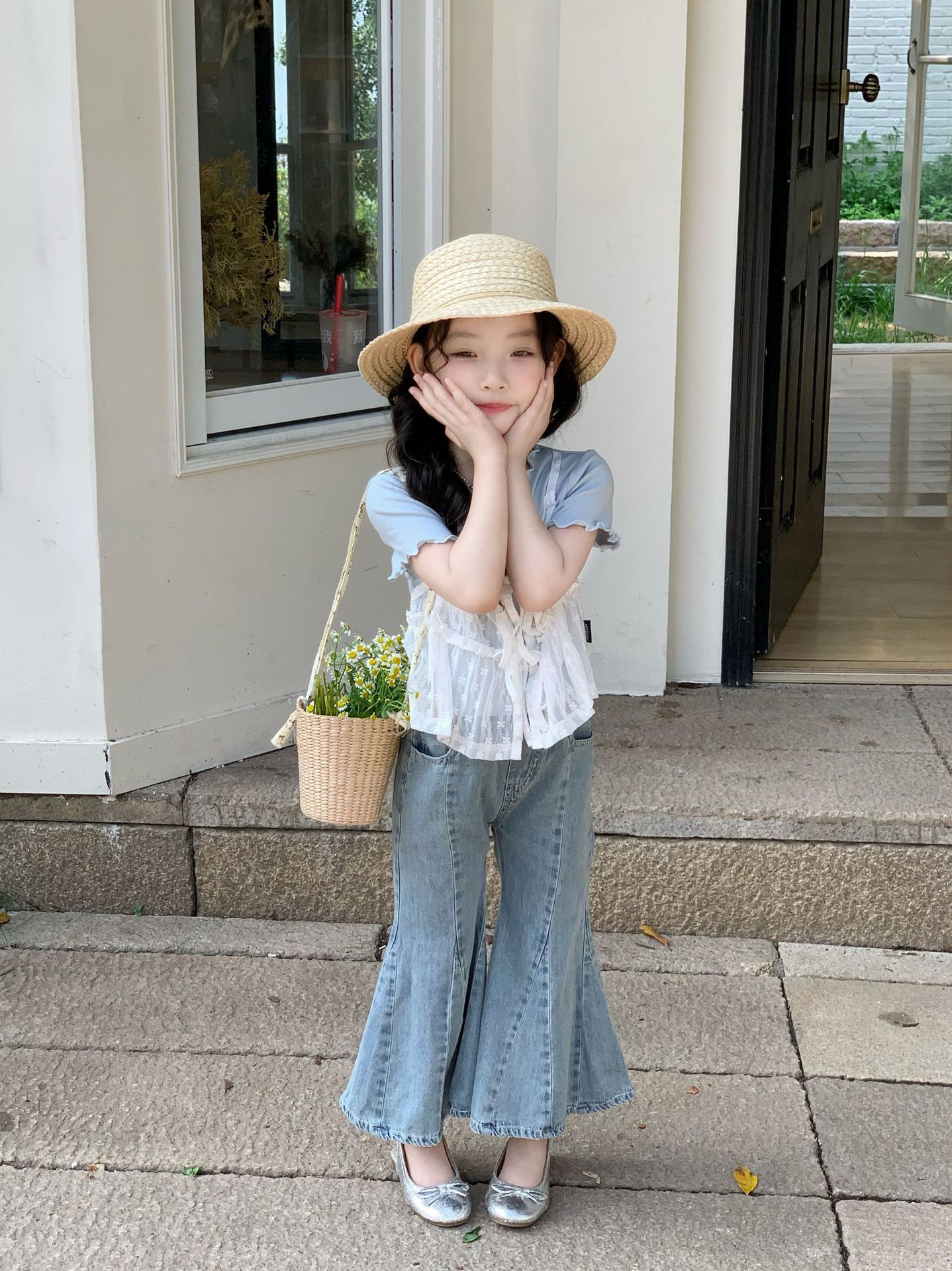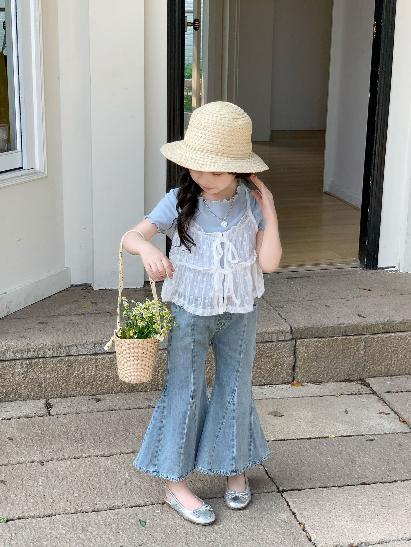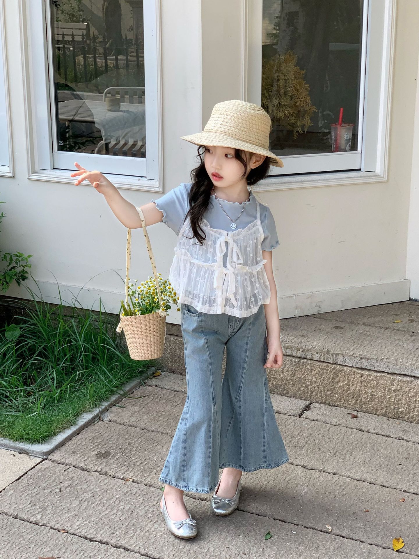 소녀 청바지 2025 여름 새 어린이 2 ~ 7 세 한국식 스티치 플라 바지 어린이 외주 9 점 바지스토어 가기