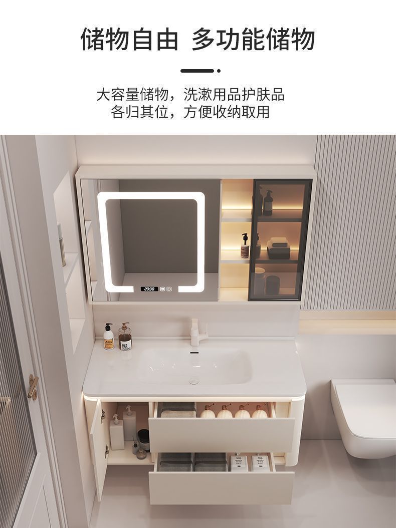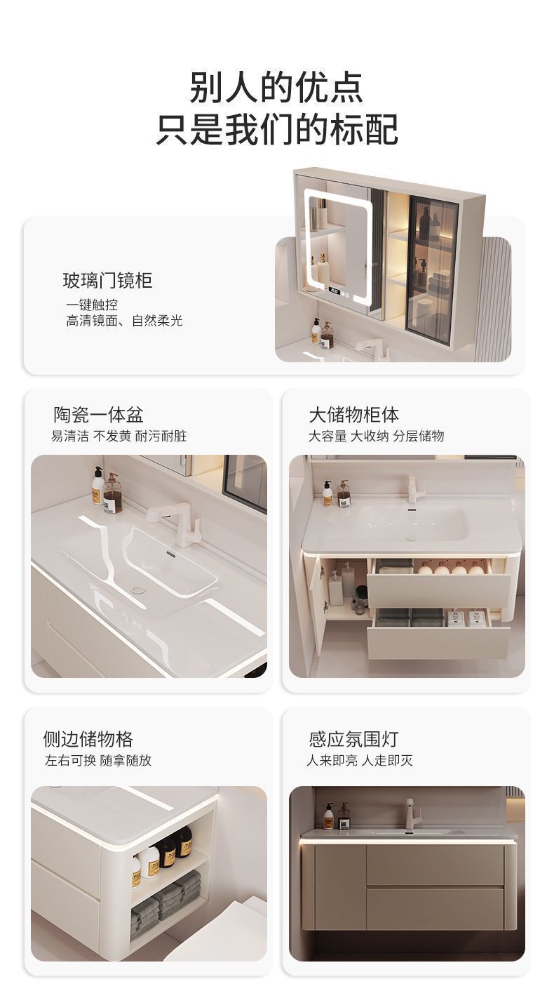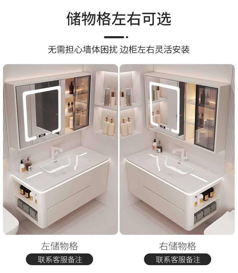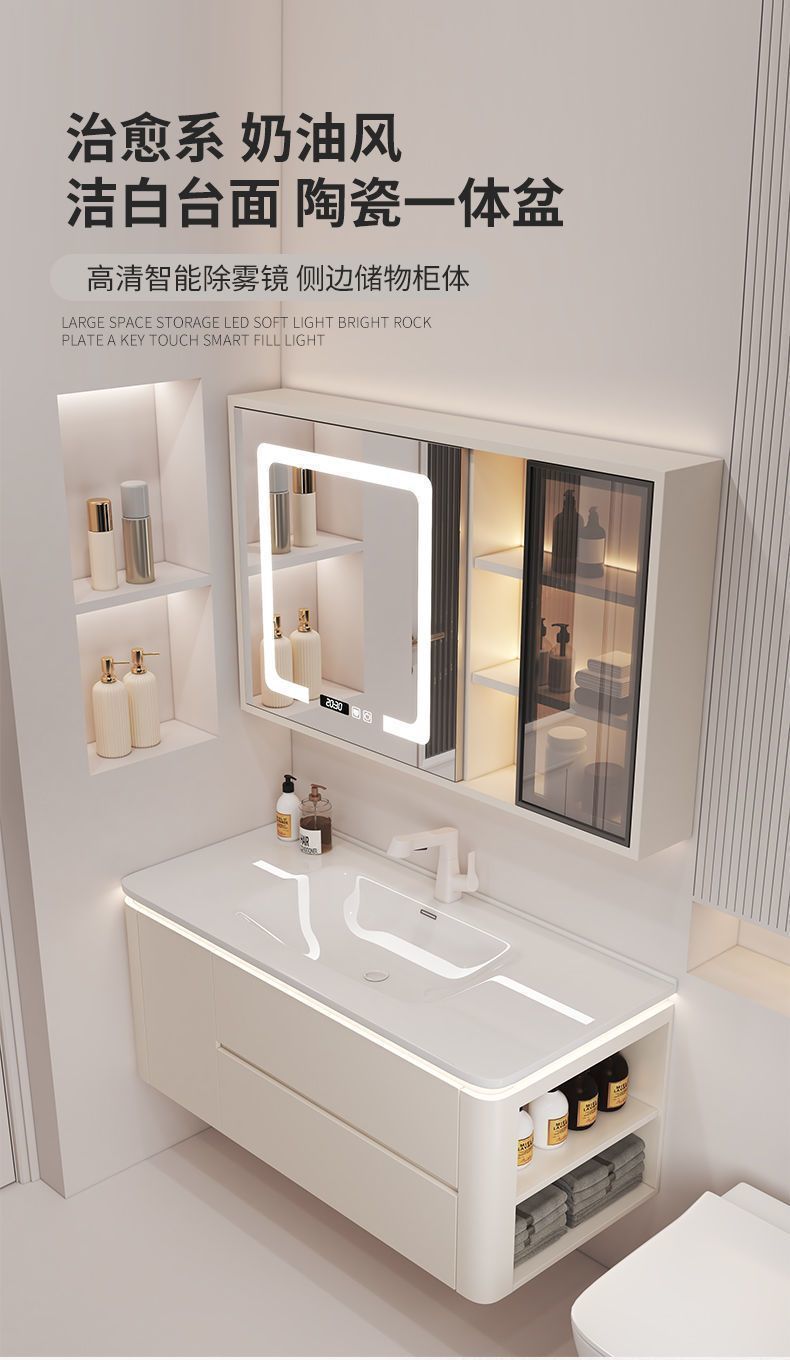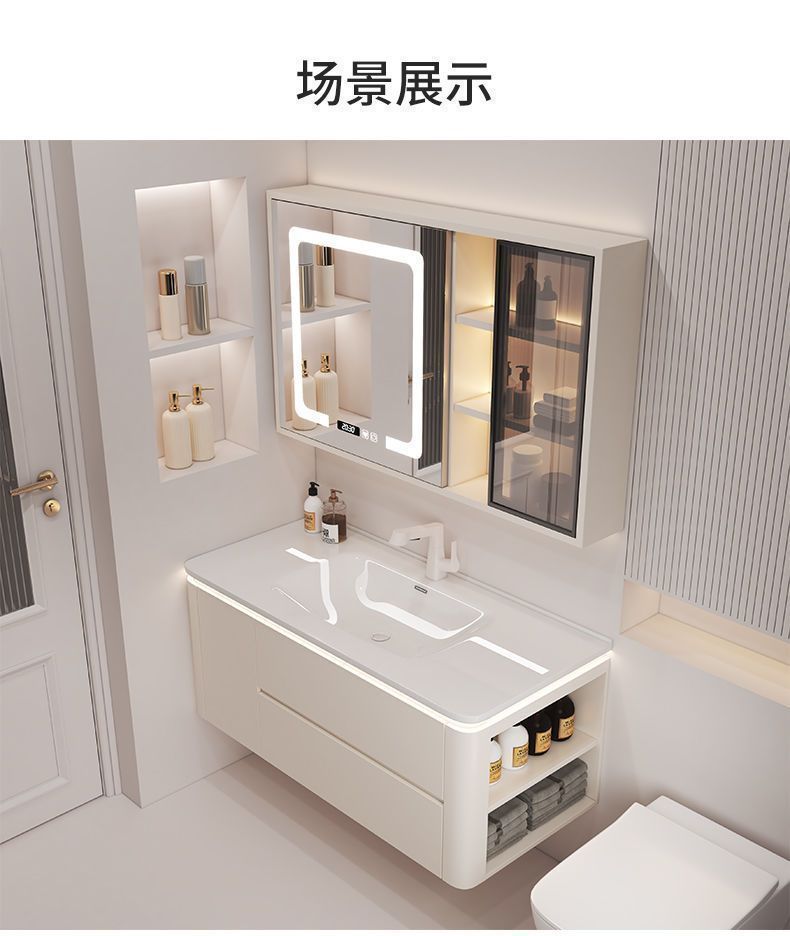 간단한 크림 세면대 세라믹 통합 현대 욕실 스마트 단단한 목재 욕실 캐비닛 세면대 조합 세면대스토어 가기