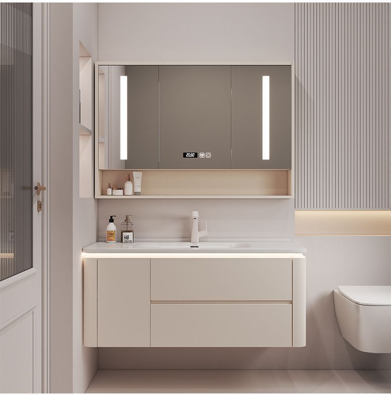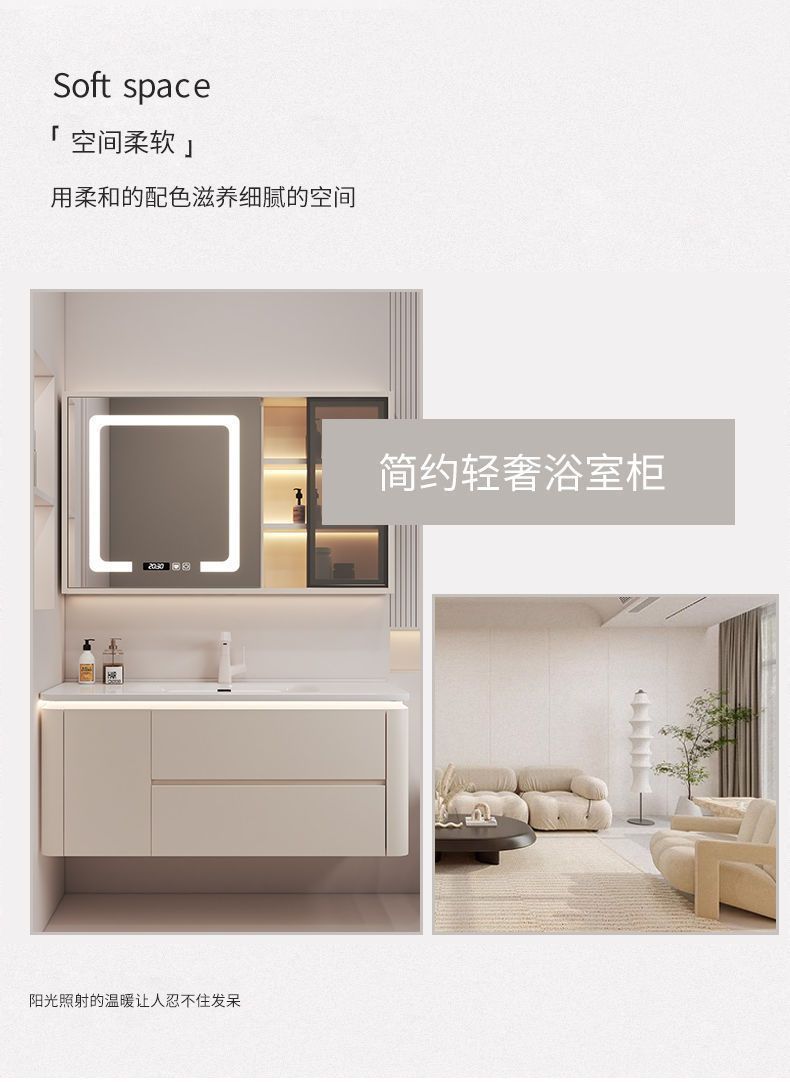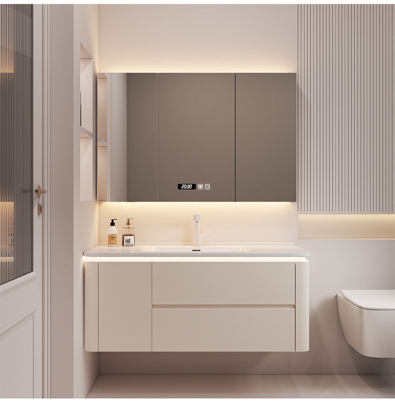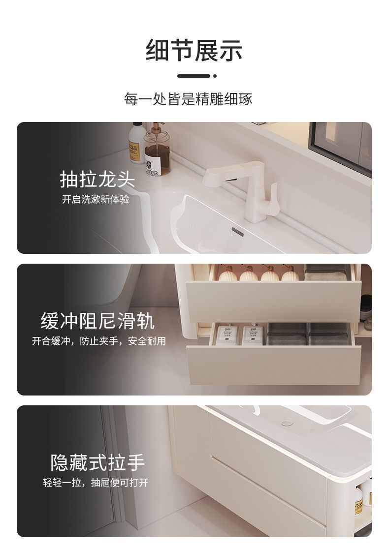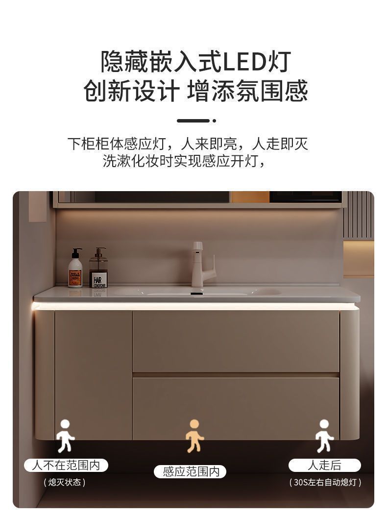 간단한 크림 세면대 세라믹 통합 현대 욕실 스마트 단단한 목재 욕실 캐비닛 세면대 조합 세면대스토어 가기