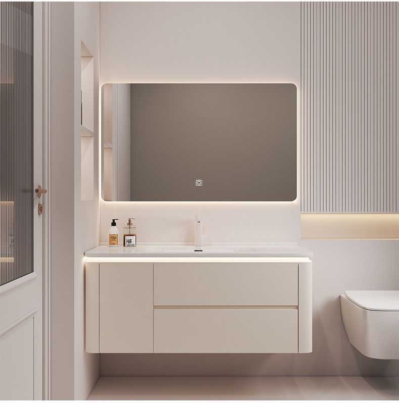 간단한 크림 세면대 세라믹 통합 현대 욕실 스마트 단단한 목재 욕실 캐비닛 세면대 조합 세면대