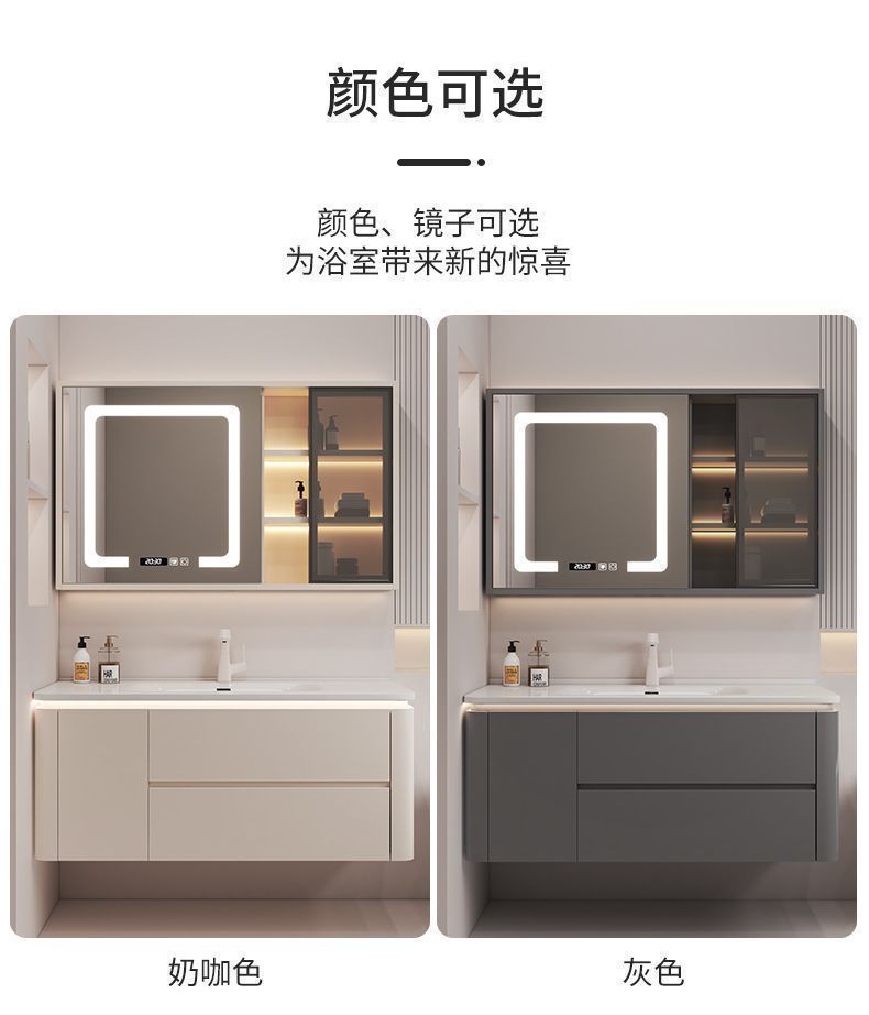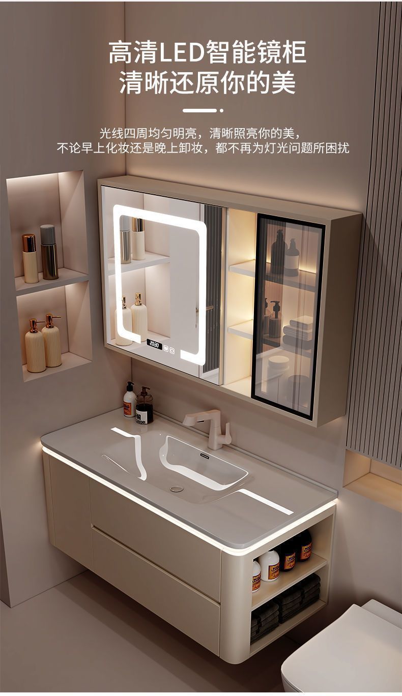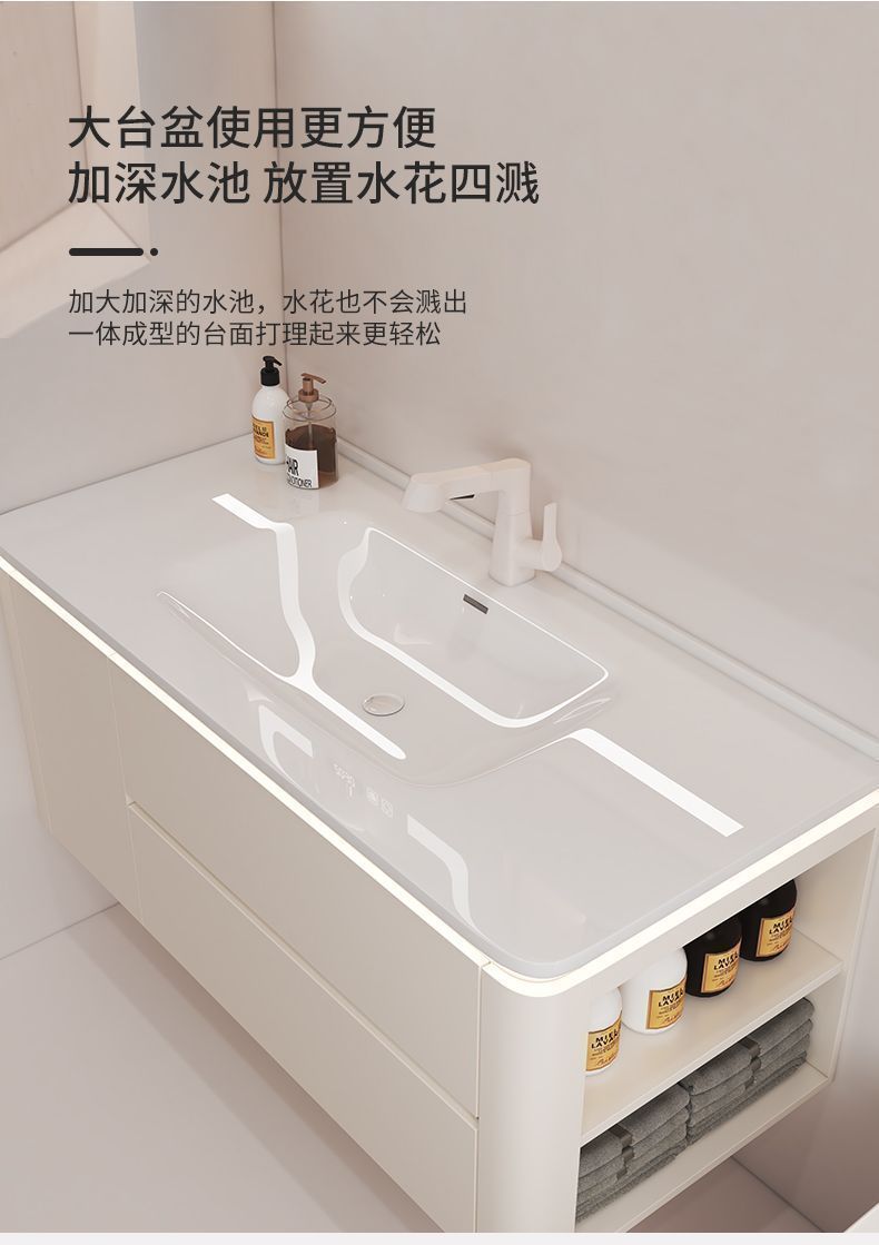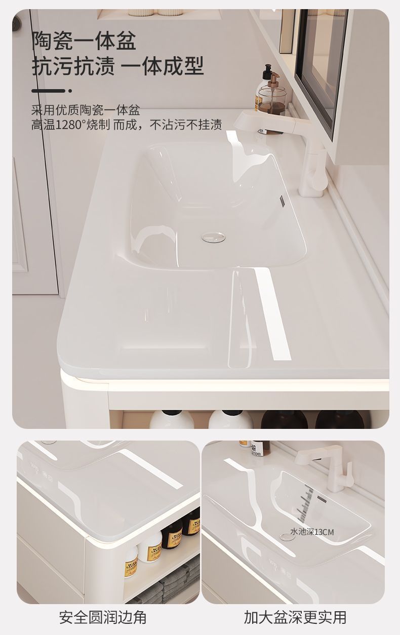• 내경이 확대된 핫 스마트 거울 캐비닛 세라믹 세면대 + 집으로 배송 - 80CM 청소가 쉬운 세라믹 일체형 세면대 + 리프트 풀아웃 수도꼭지