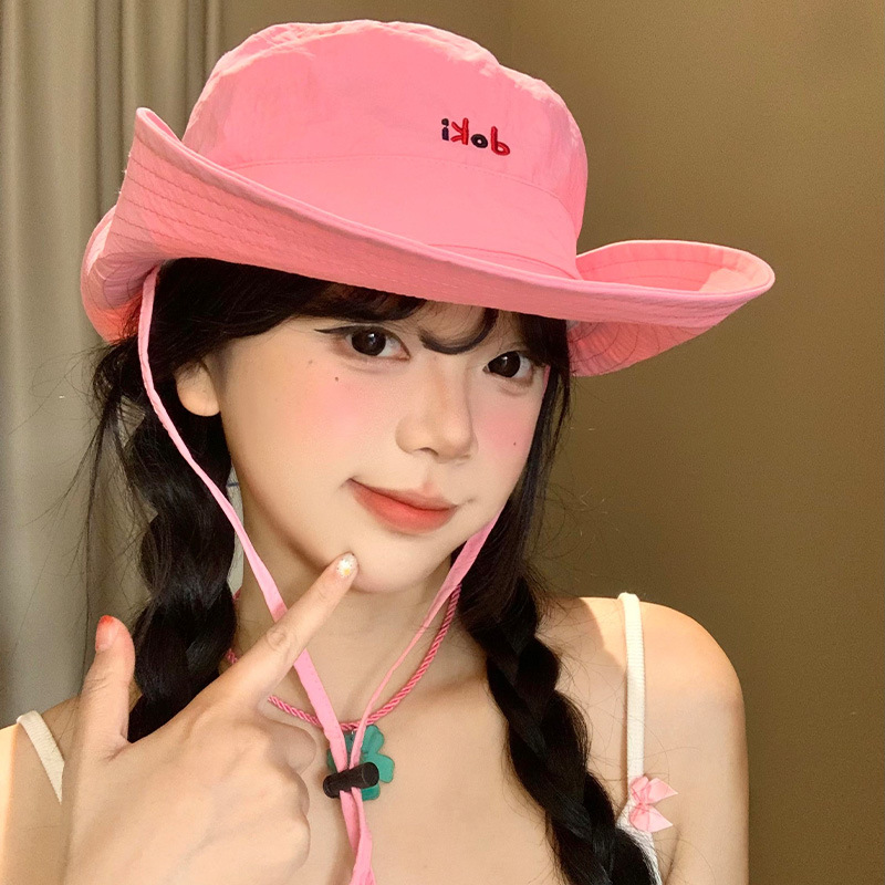 여름 여성용 핑크 속건성 어부 모자 얇은 통기성 야외 캠핑 등산 모자 큰 챙 태양 보호 모자스토어 가기
