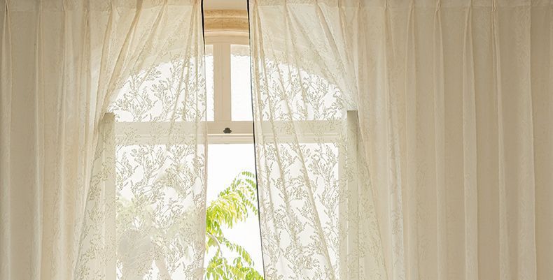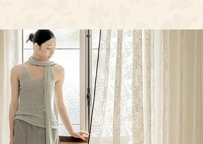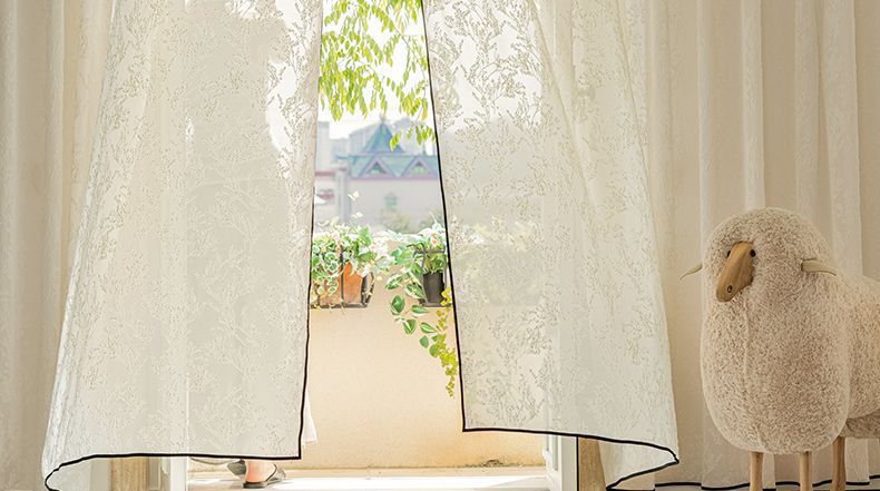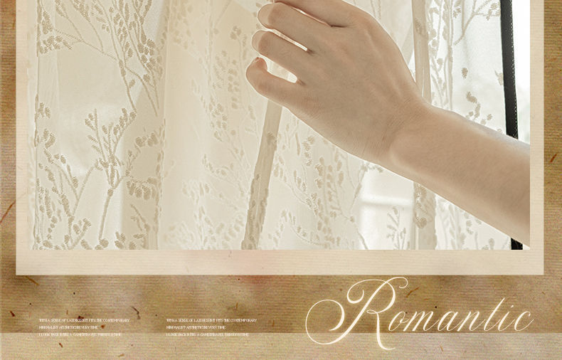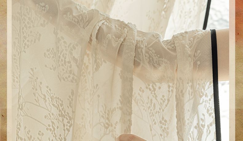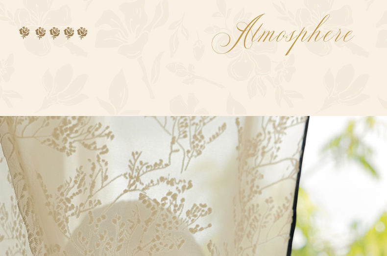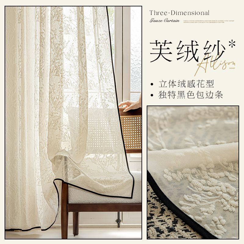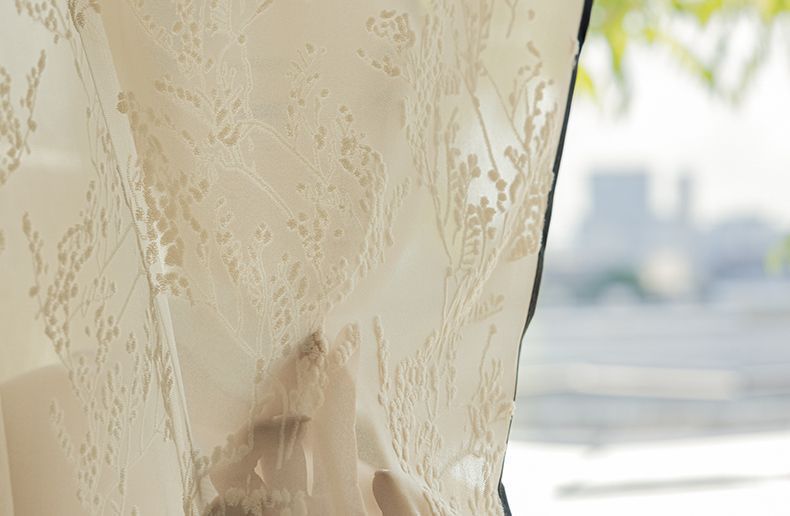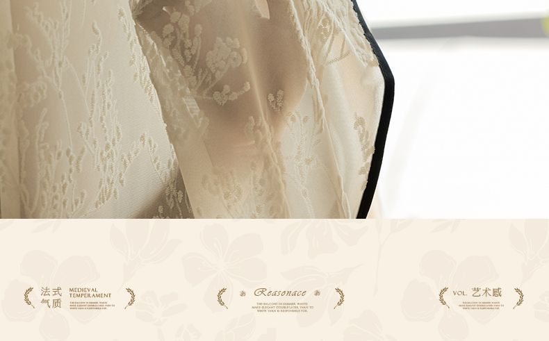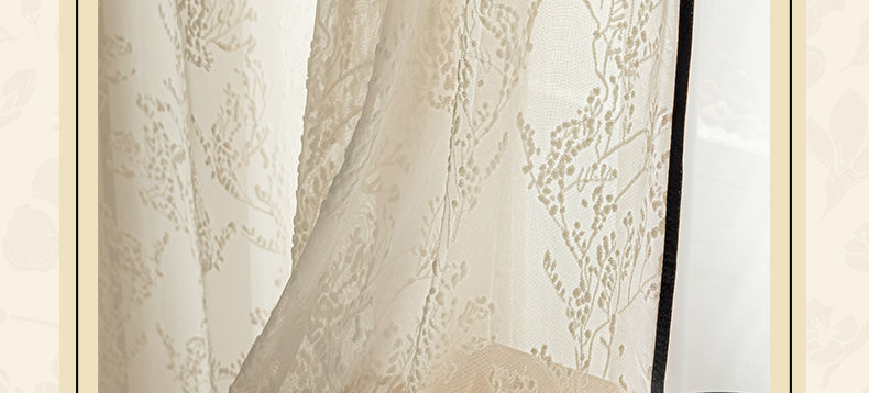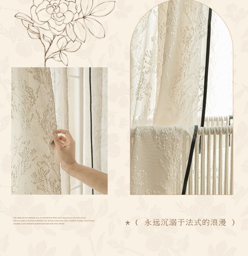 히비스커스 가지 프랑스 고급 검은색 거즈 커튼 자카드 커튼 거실 침실 중세 발코니 크림 컬러 창 스크린스토어 가기