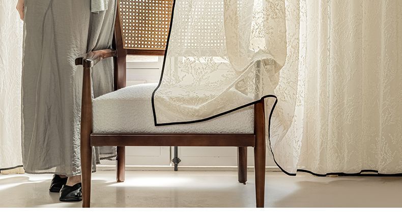 히비스커스 가지 프랑스 고급 검은색 거즈 커튼 자카드 커튼 거실 침실 중세 발코니 크림 컬러 창 스크린