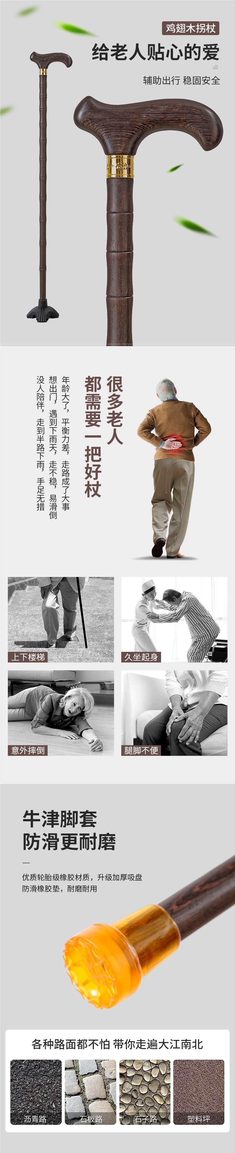 노인을 위한 마호가니 지팡이, 노인을 위한 미끄럼 방지 지팡이, 노인을 위한 경량 나무 지팡이, 치킨윙 나무 지팡이, 원목 지팡이스토어 가기