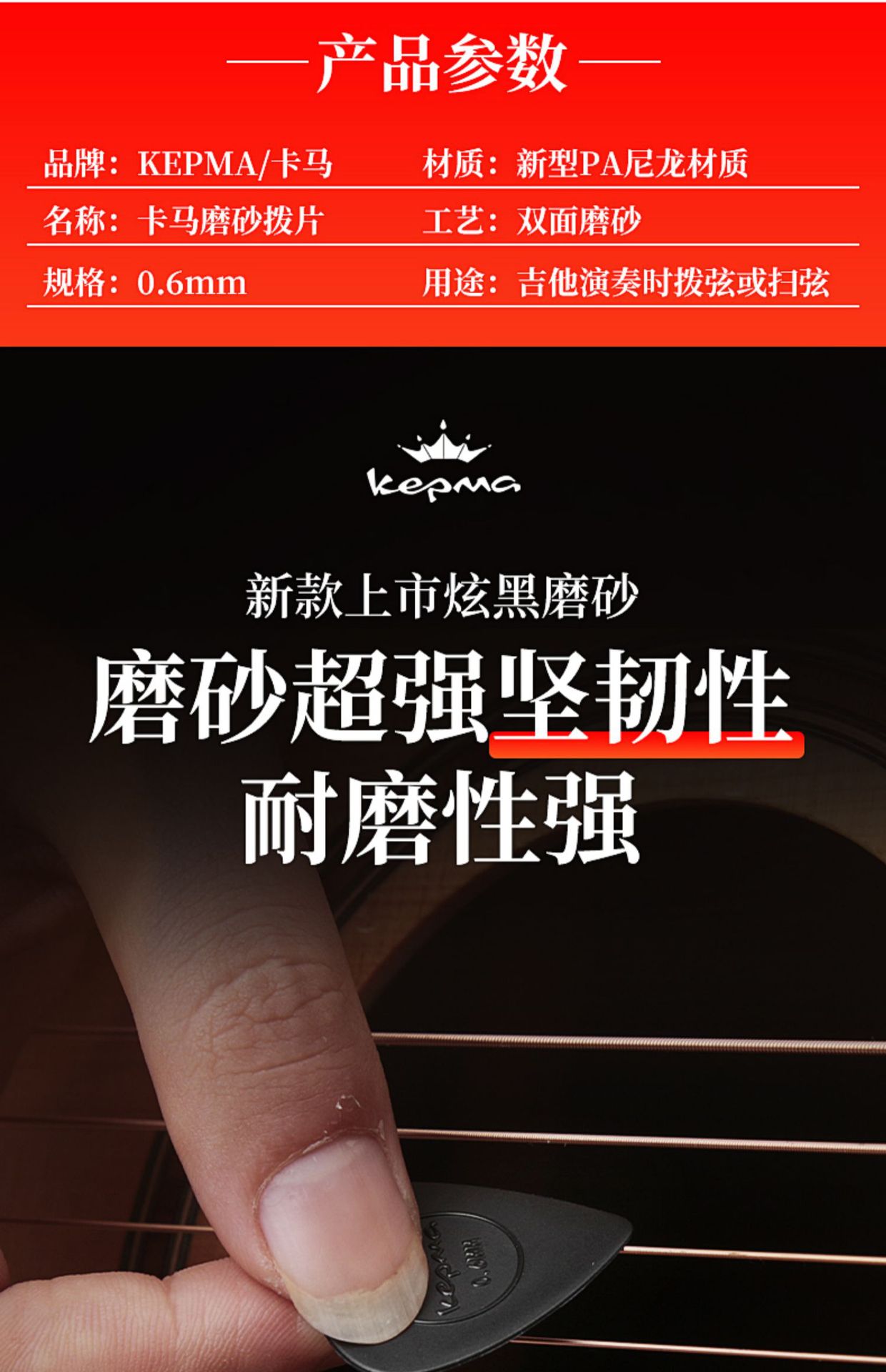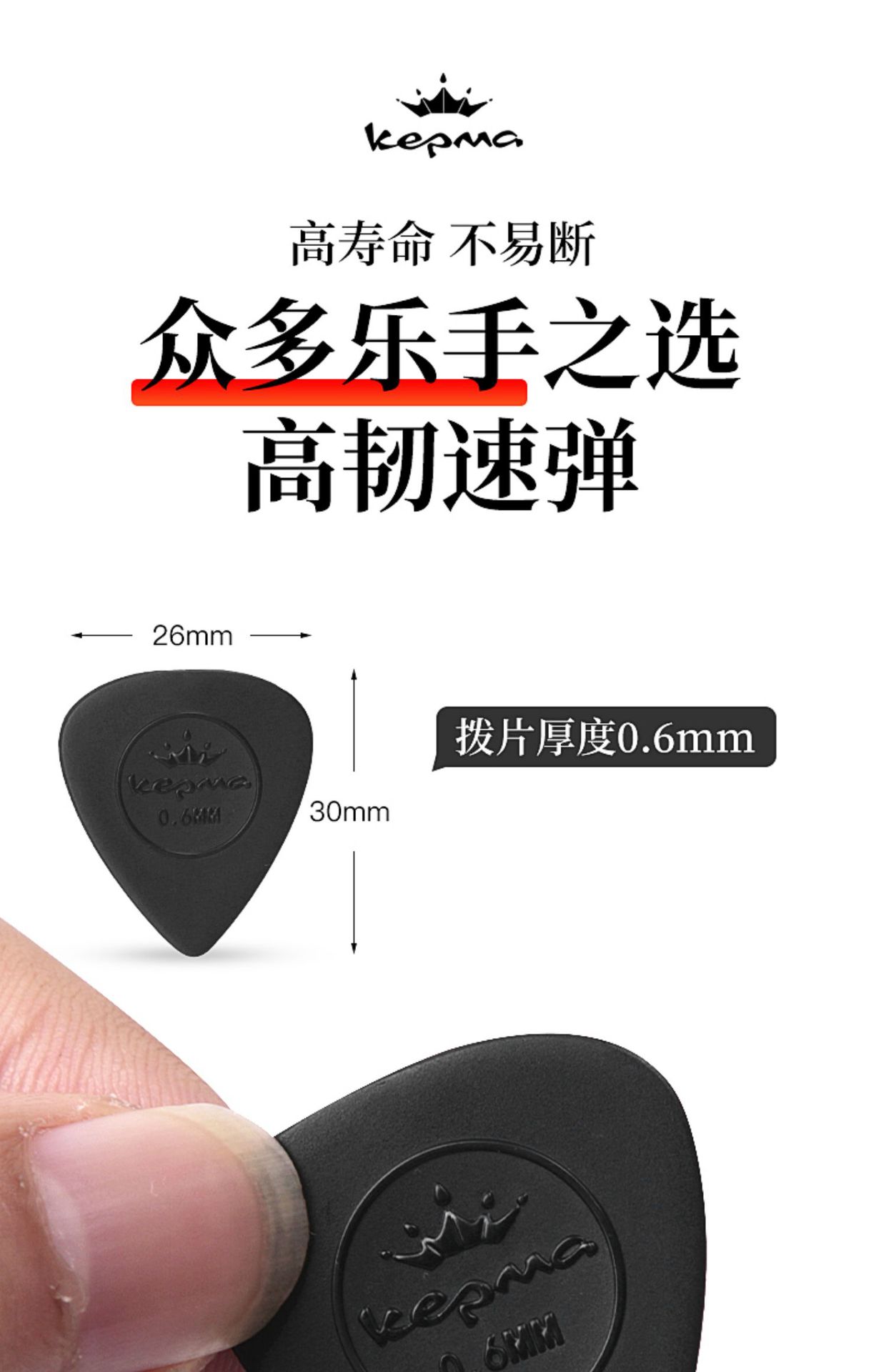 Kepma 기타 픽 오리지널 포크 기타 픽 스윕 핑거스타일링 미끄럼 방지 나일론 반투명 픽