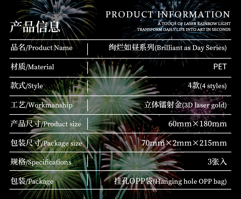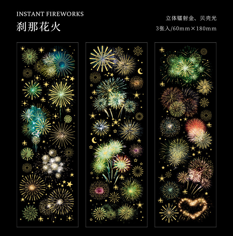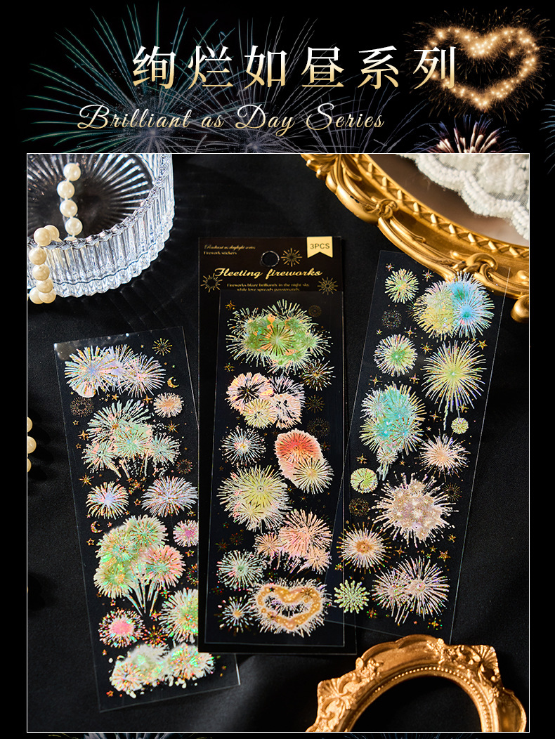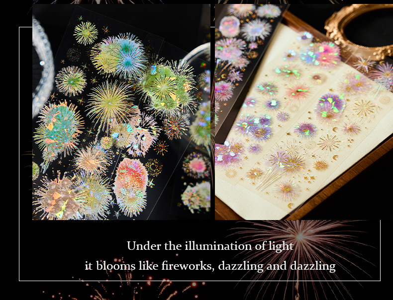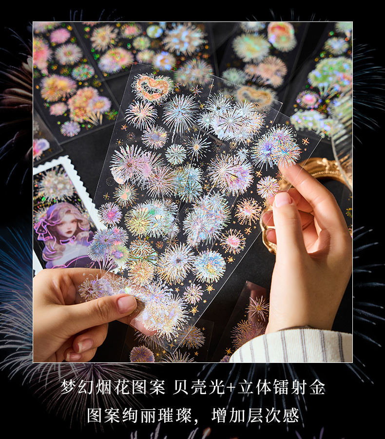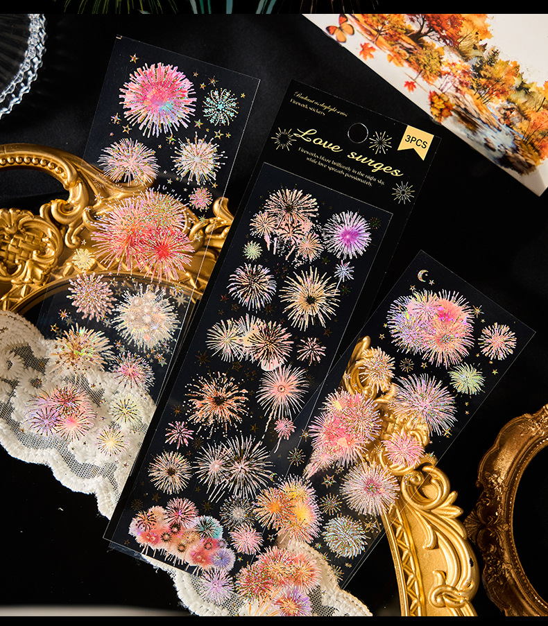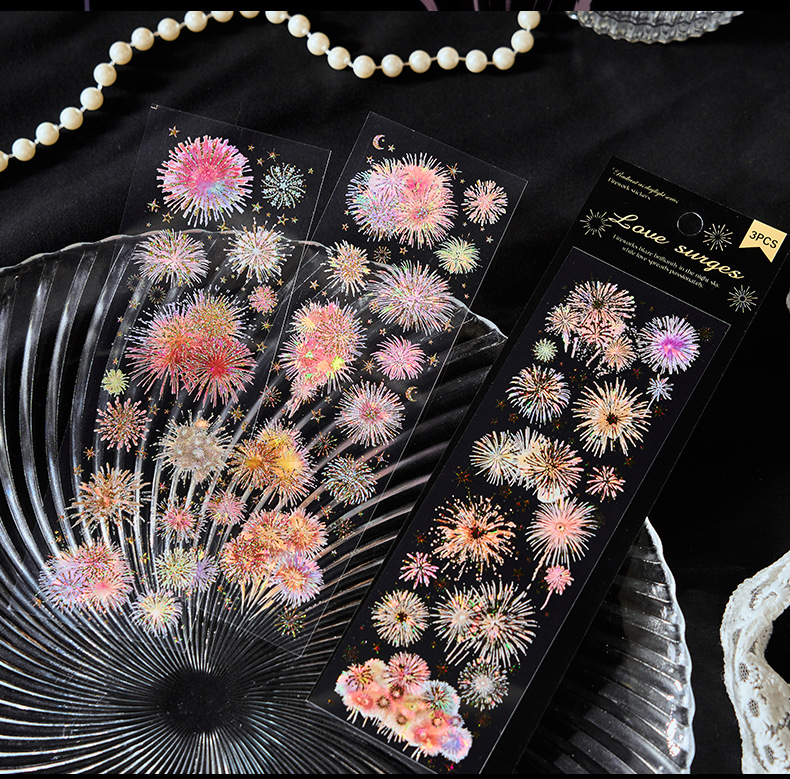 아침 거품 애완 동물 평면 스티커 하루 시리즈 불꽃 놀이 테마 손 계정 기본 조경 장식 재료 스티커로 화려한