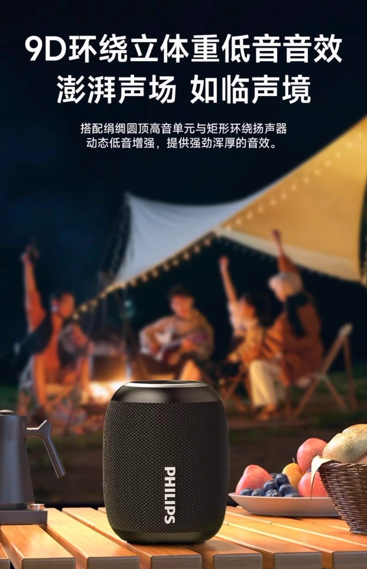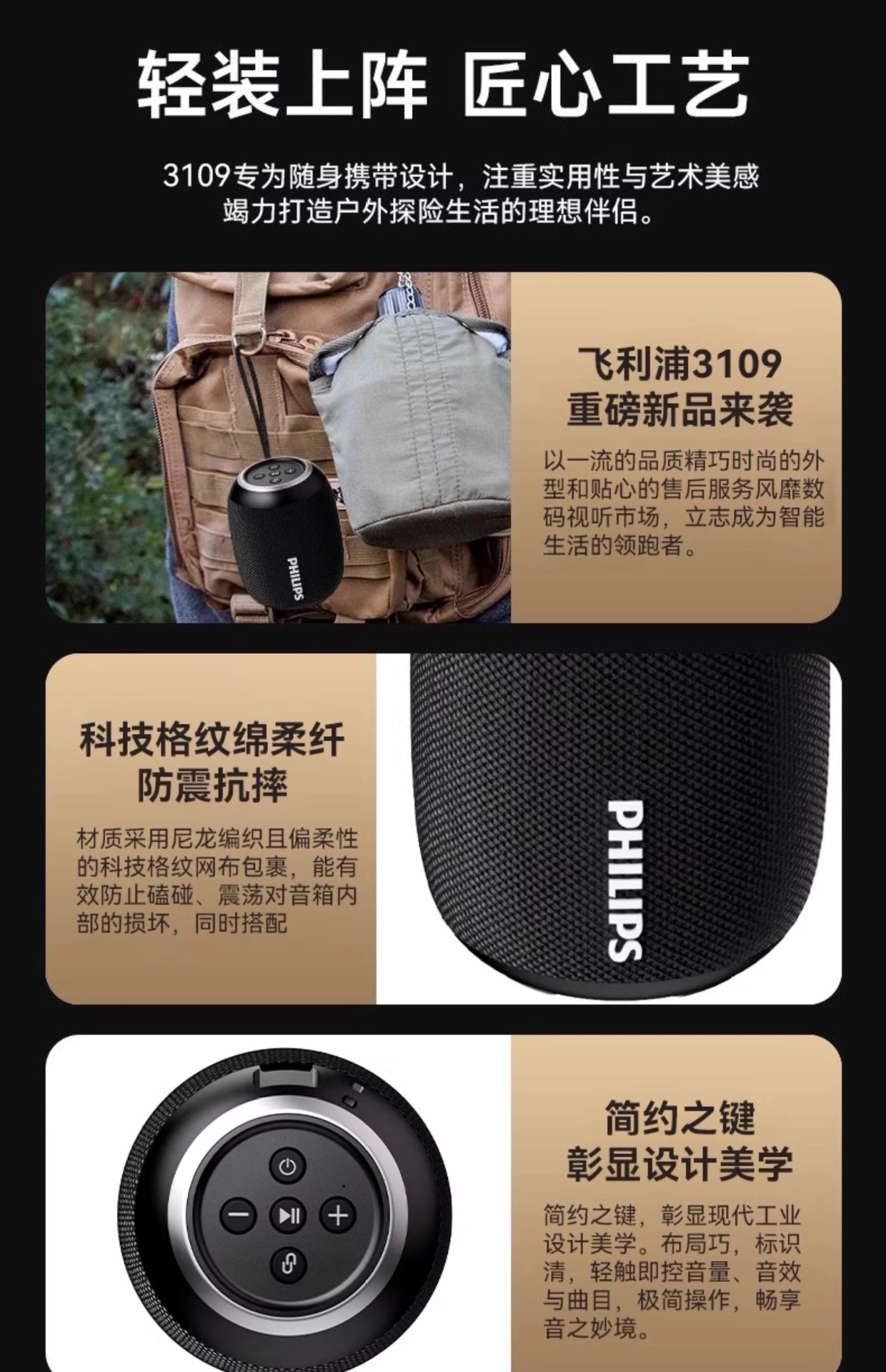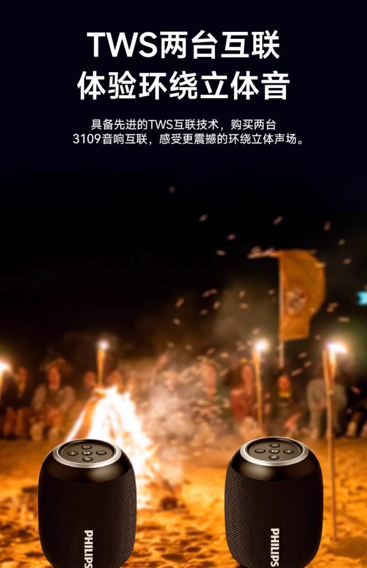 필립스 TAS3109 블루투스 야외 휴대용 대형 서브 우퍼 자동차 무선 스피커 TWS 피크닉 승마 톤