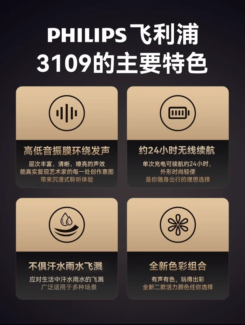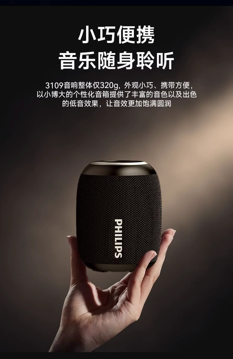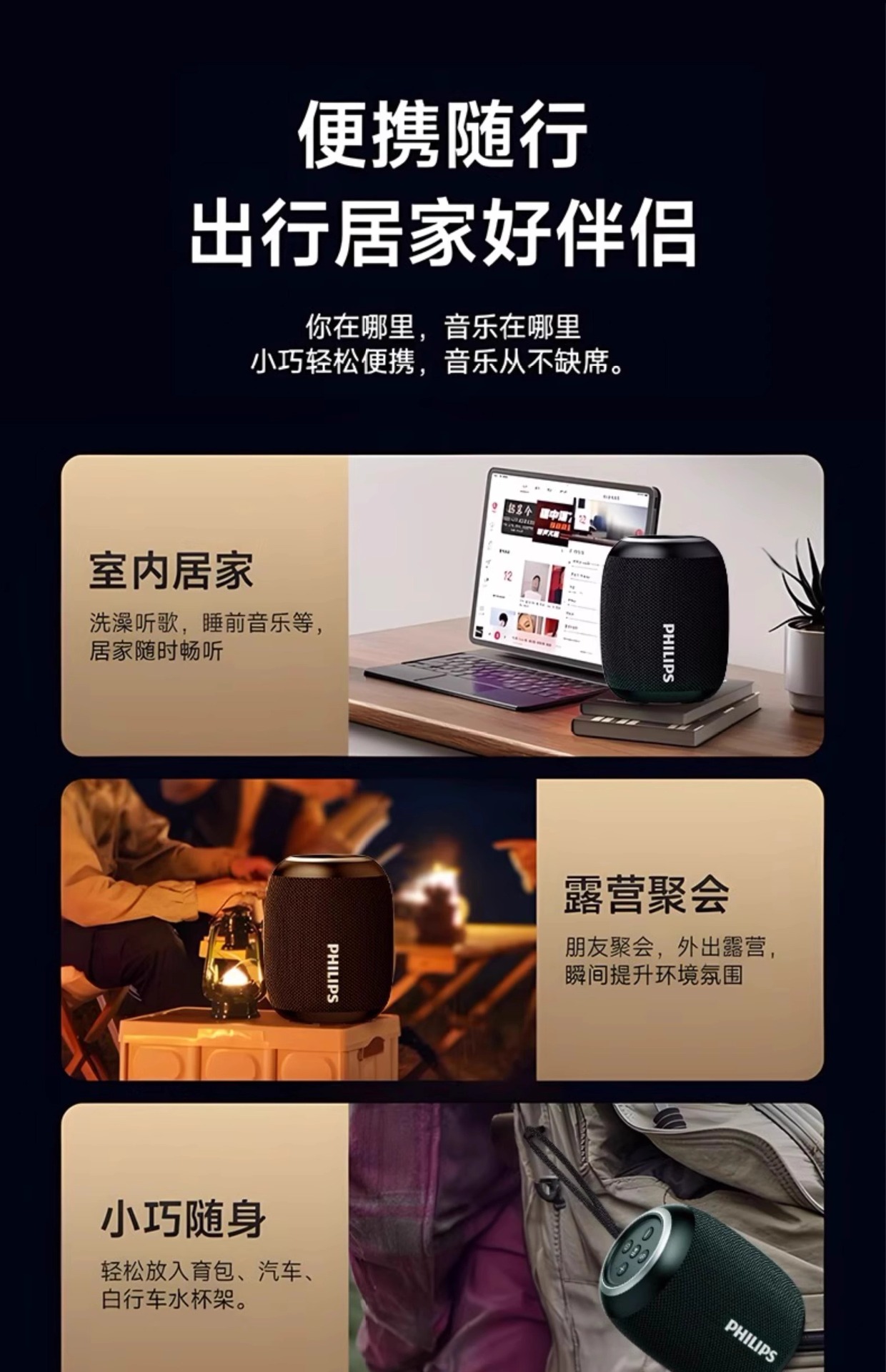 필립스 TAS3109 블루투스 야외 휴대용 대형 서브 우퍼 자동차 무선 스피커 TWS 피크닉 승마 톤