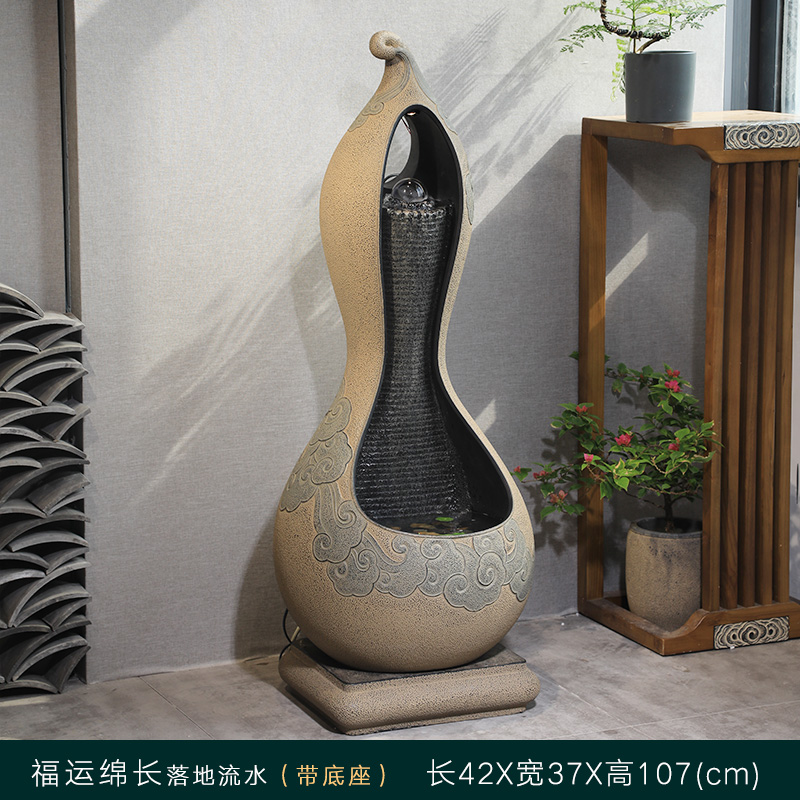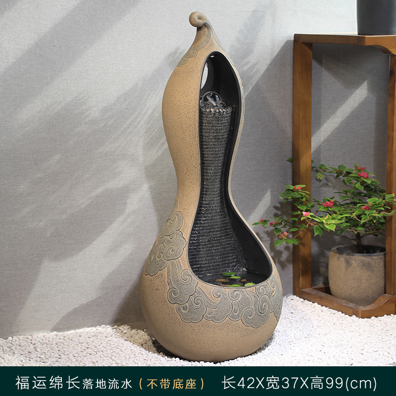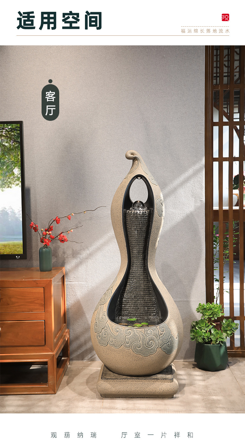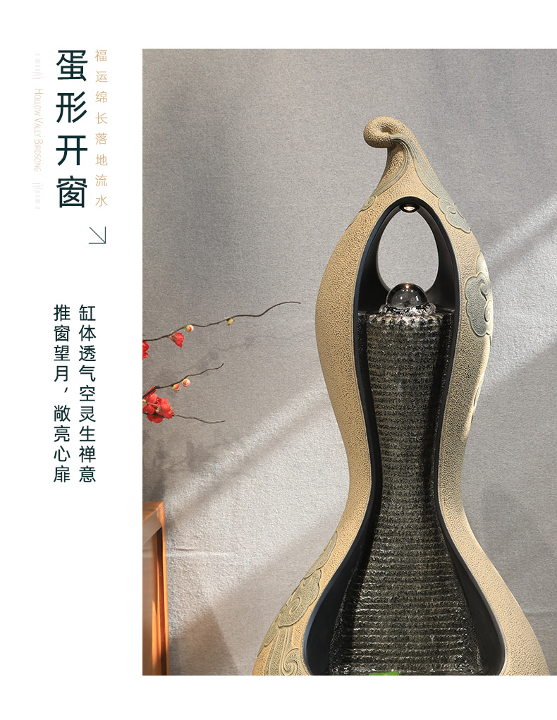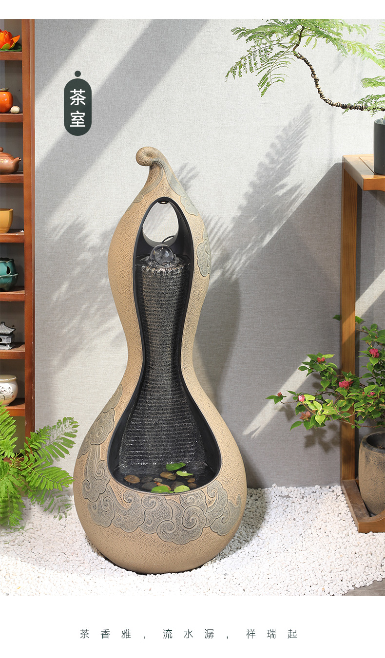 Hanyuntang 조롱박 바닥에 흐르는 물 장식품 새로운 중국 스타일 실내 거실 사무실 장식 순환 물 풍경 분수