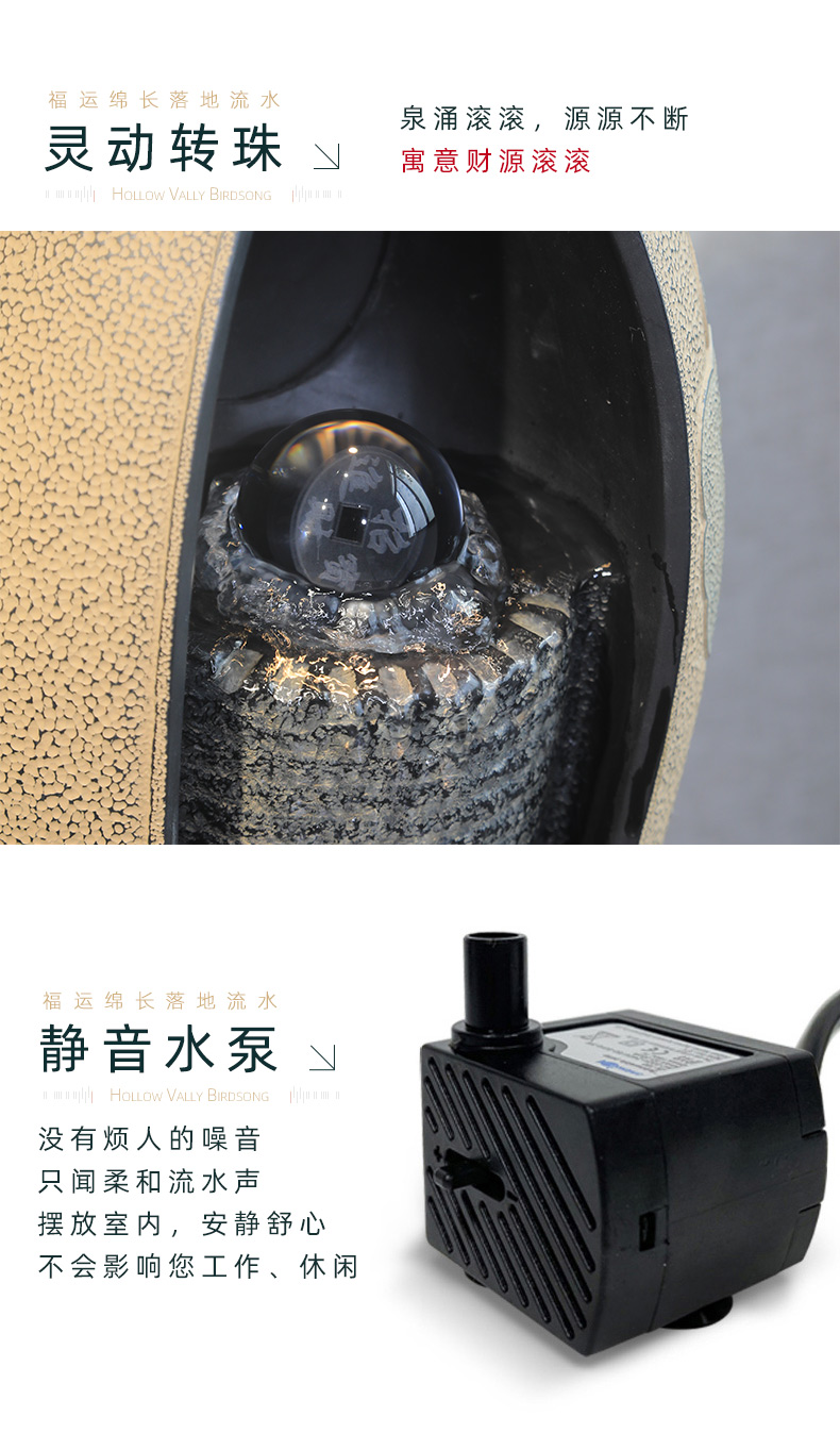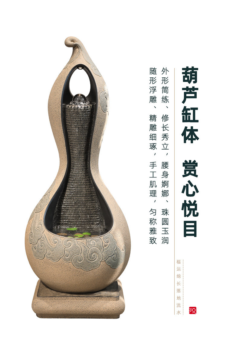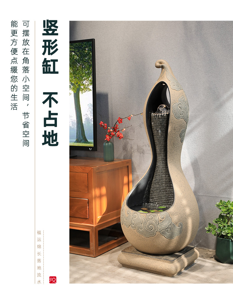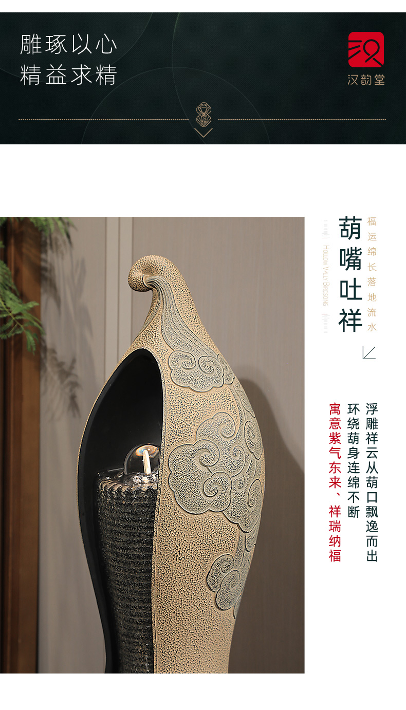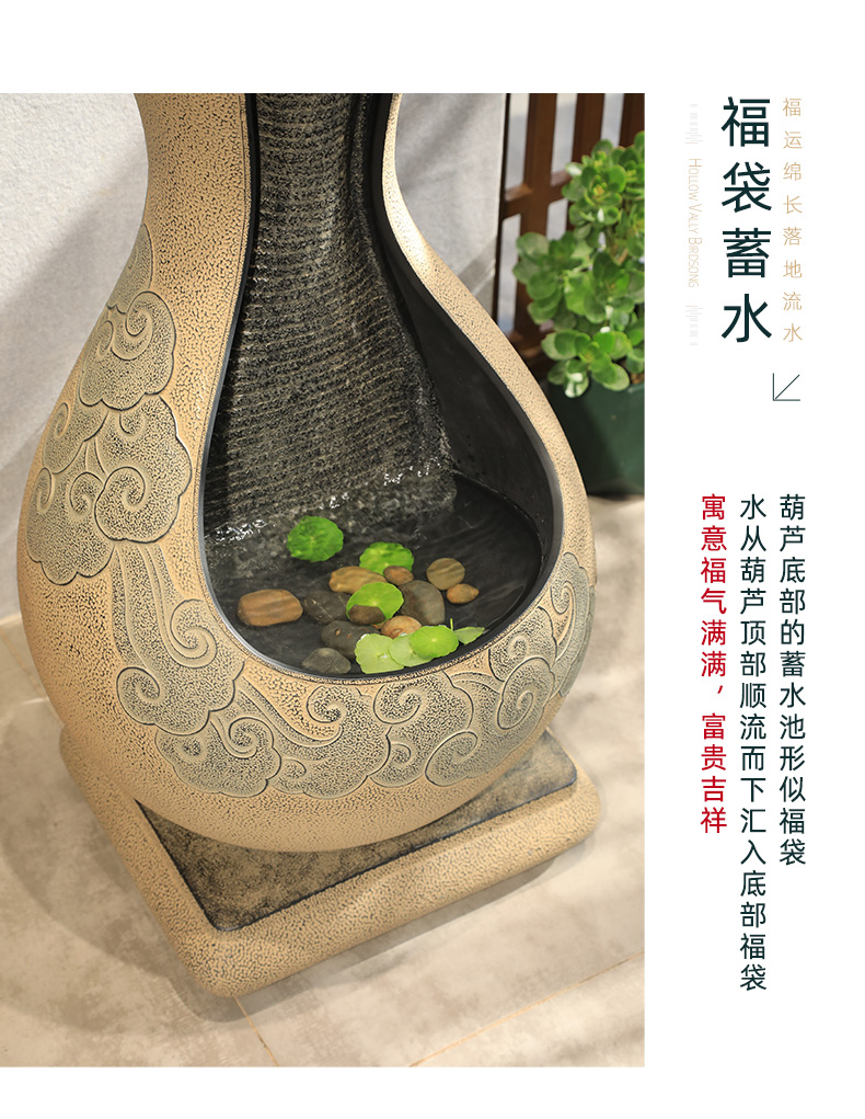 Hanyuntang 조롱박 바닥에 흐르는 물 장식품 새로운 중국 스타일 실내 거실 사무실 장식 순환 물 풍경 분수