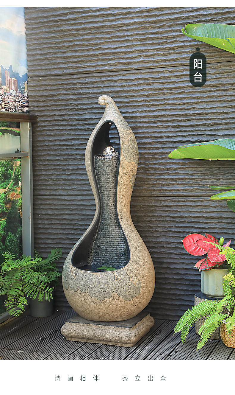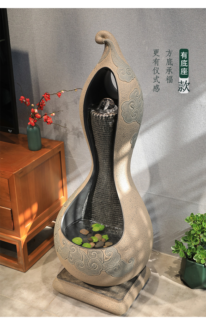 Hanyuntang 조롱박 바닥에 흐르는 물 장식품 새로운 중국 스타일 실내 거실 사무실 장식 순환 물 풍경 분수스토어 가기