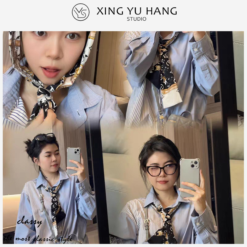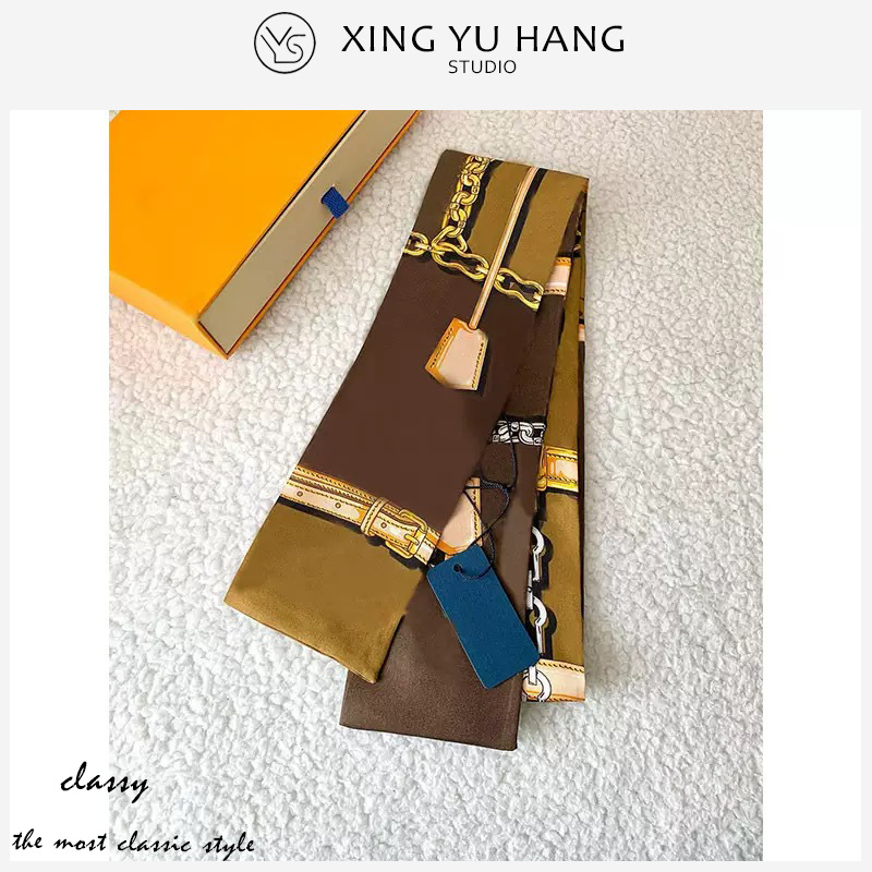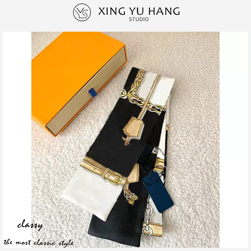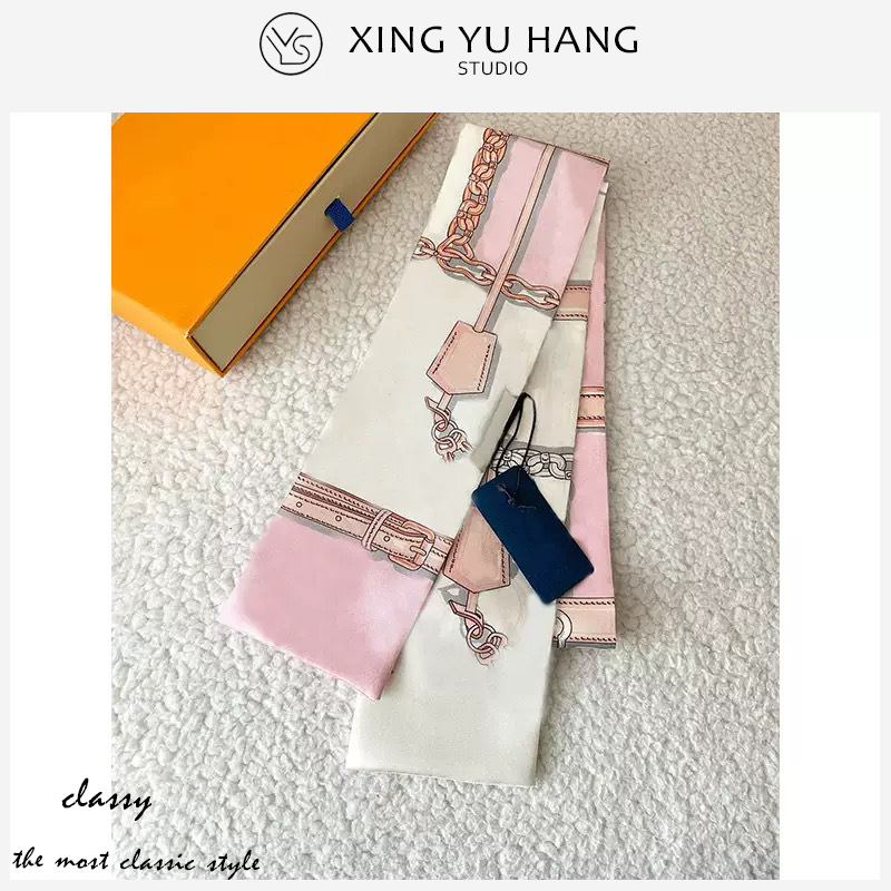 여성용 고급 흑백 작은 실크 스카프, 머리끈, 가방끈, 실크 핑크 클래식 스카프, 작은 긴 리본스토어 가기