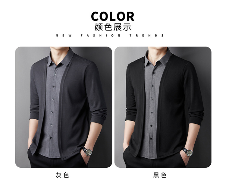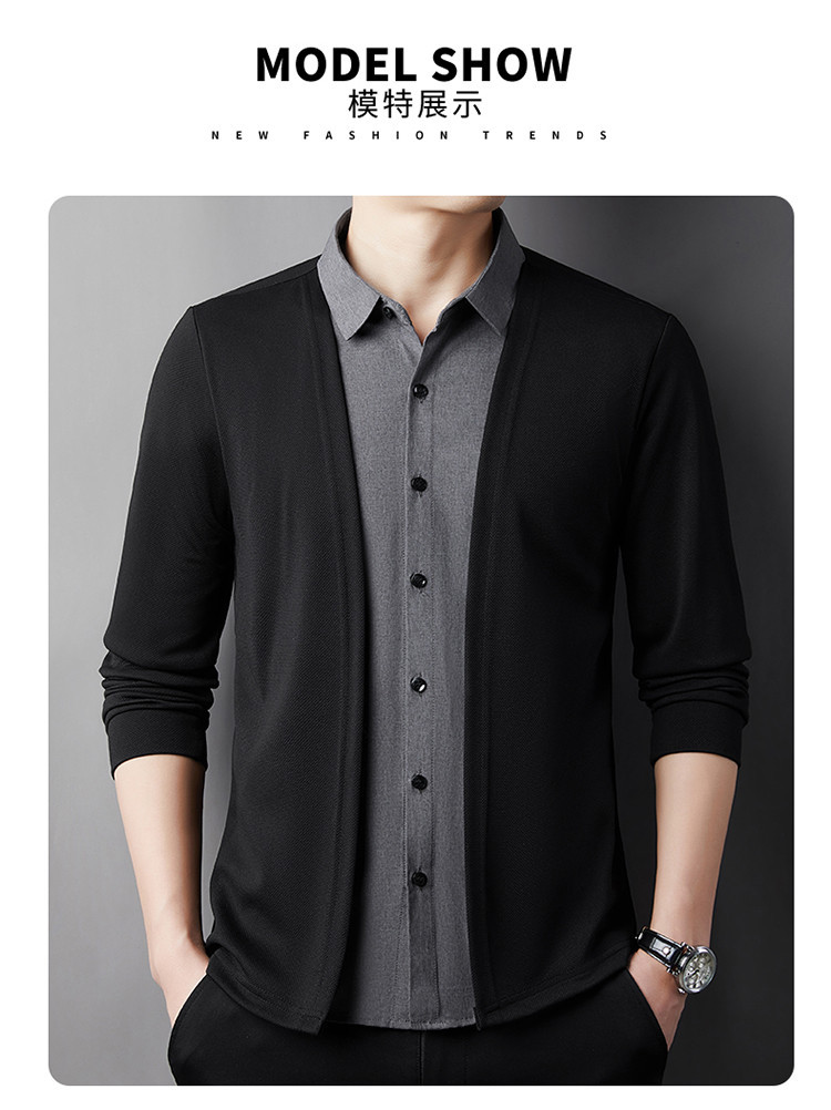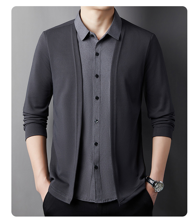 봄, 가을 휴가 투피스 셔츠 남성용 루즈한 긴팔 고급 라펠 셔츠 캐주얼 다용도 비즈니스 노아이론 의류스토어 가기