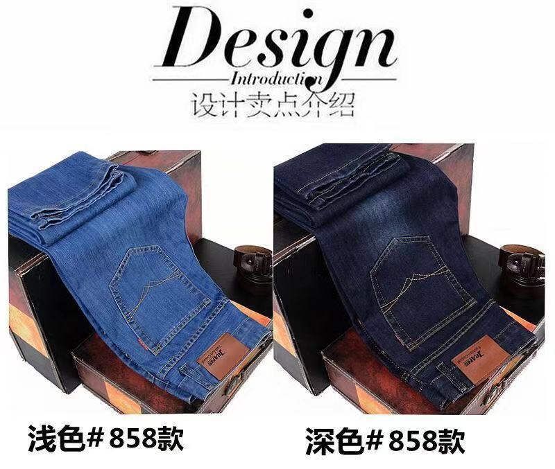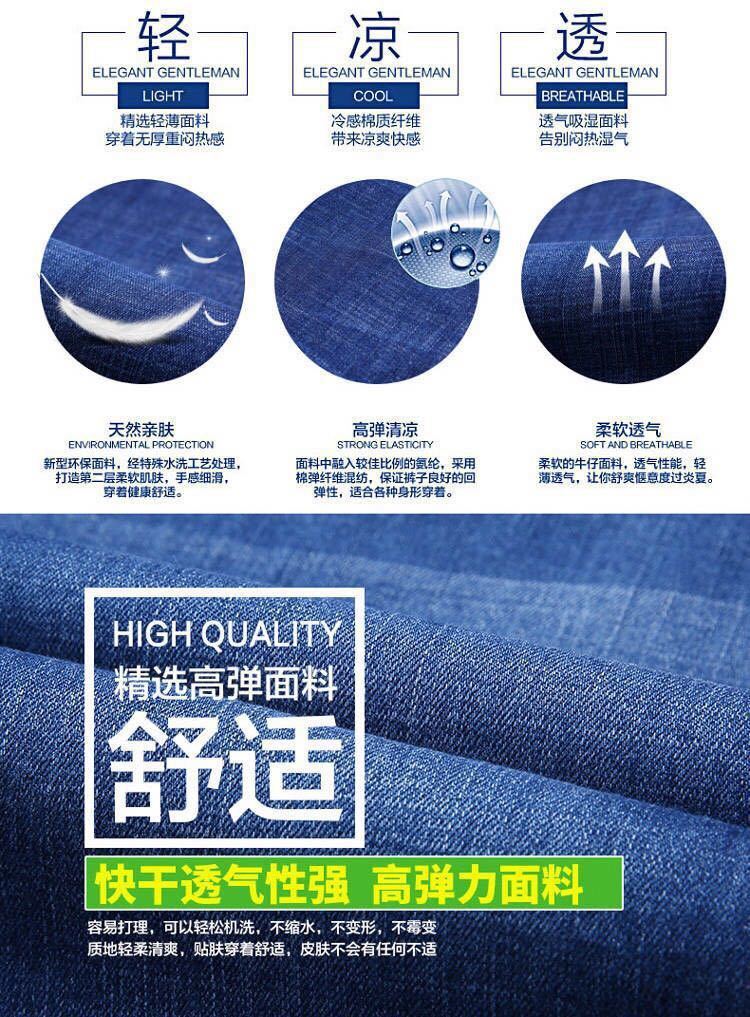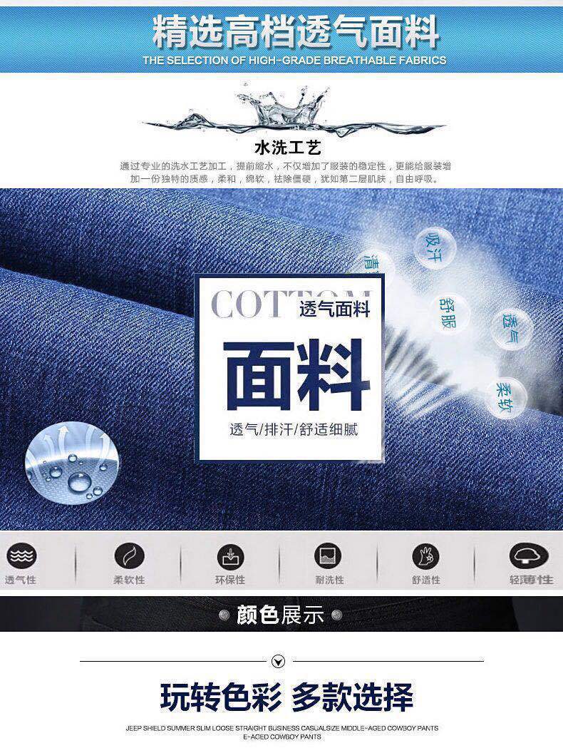여름 얇은 신축성 있는 남성 청바지 스트레이트 루즈 캐주얼 대형 작업 다용도 밝은 색상 남성용스토어 가기