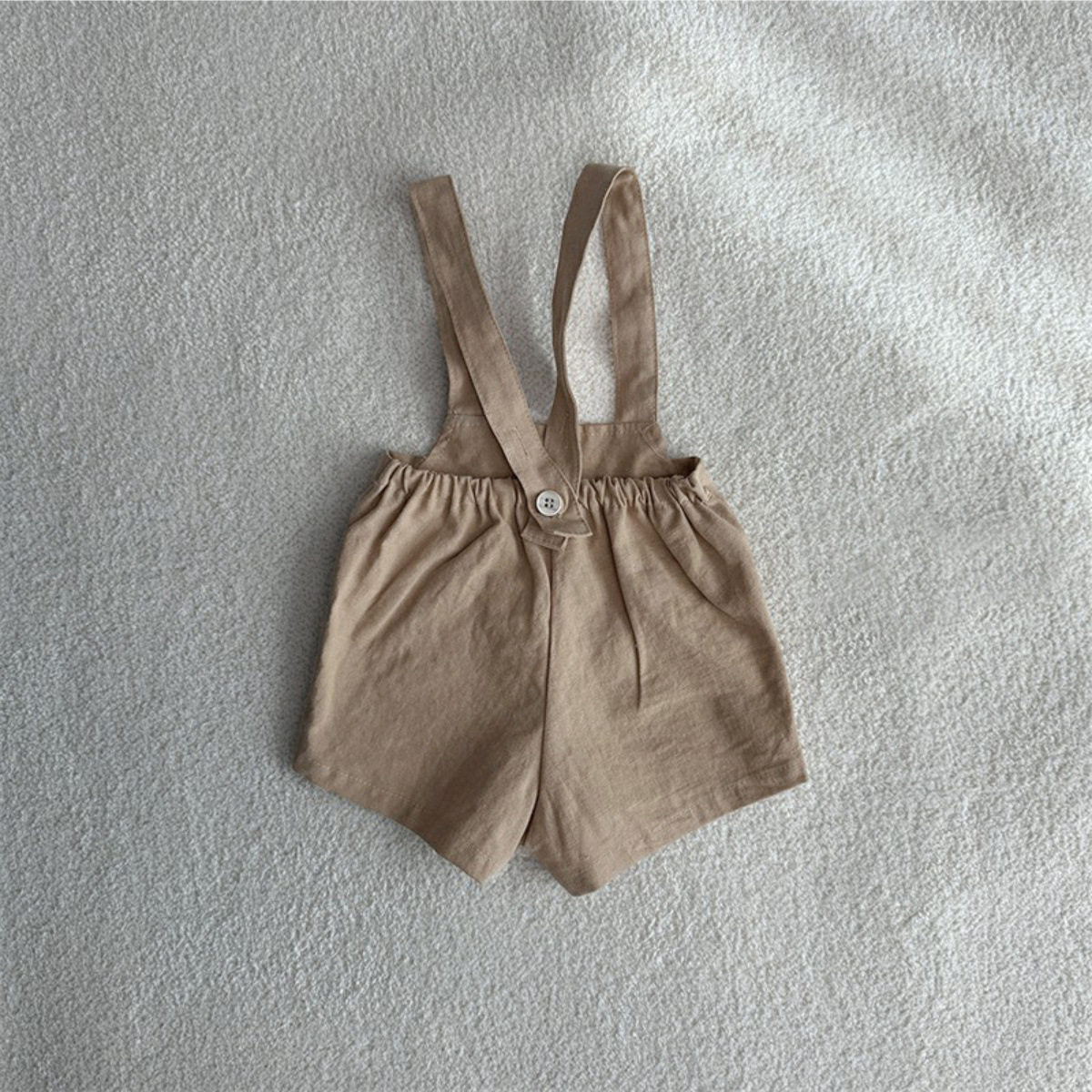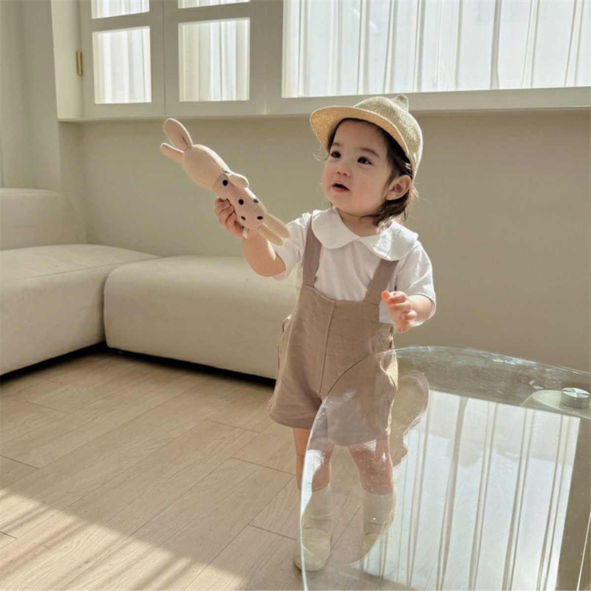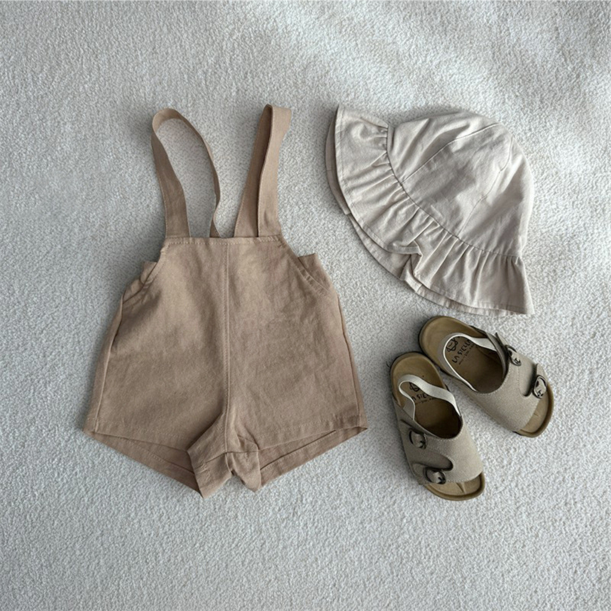 2025 남학생과 여학생을위한 여름 한국 아동복 간단한 짠 순면 멜빵 어린이 캐주얼 반바지