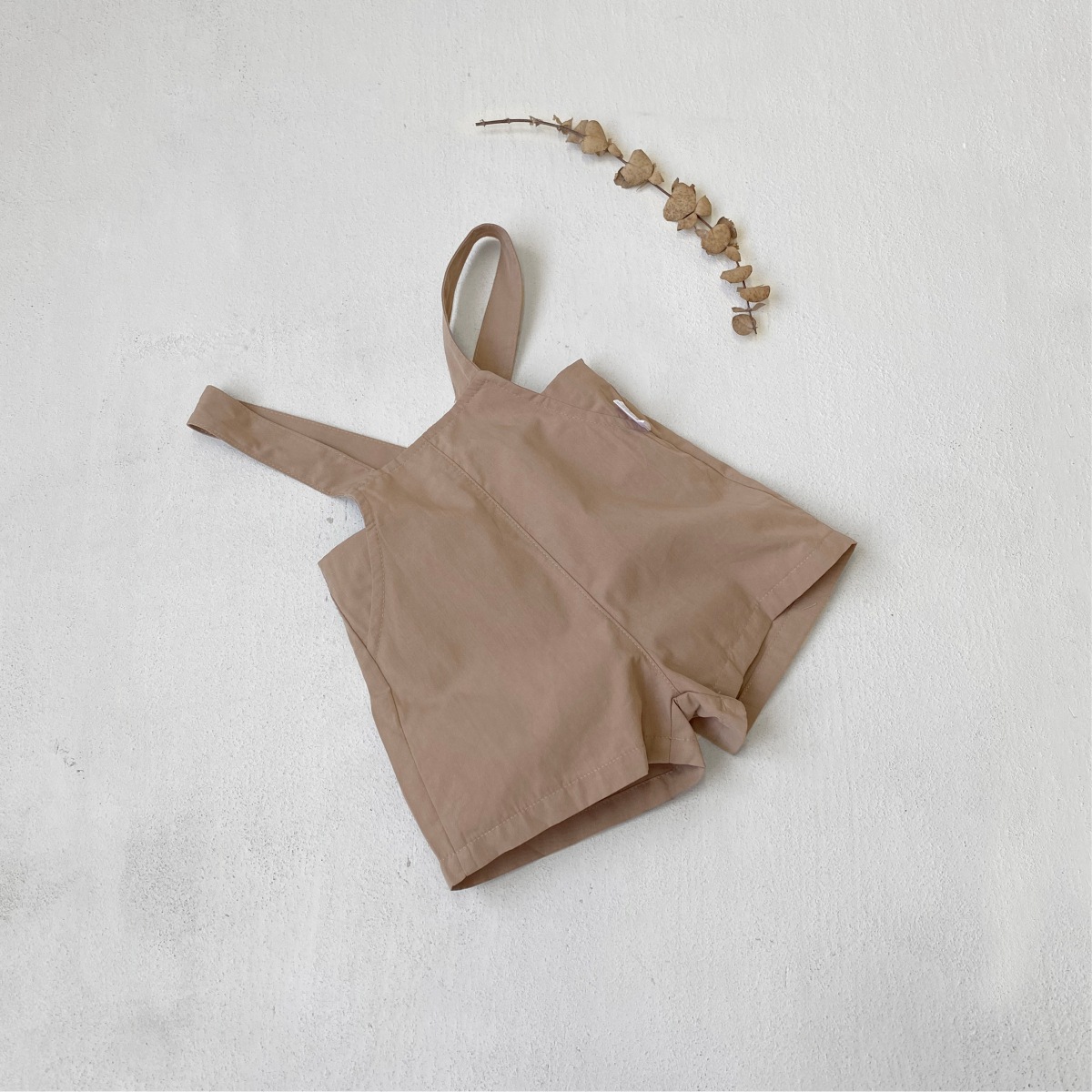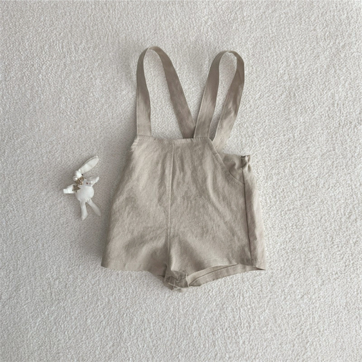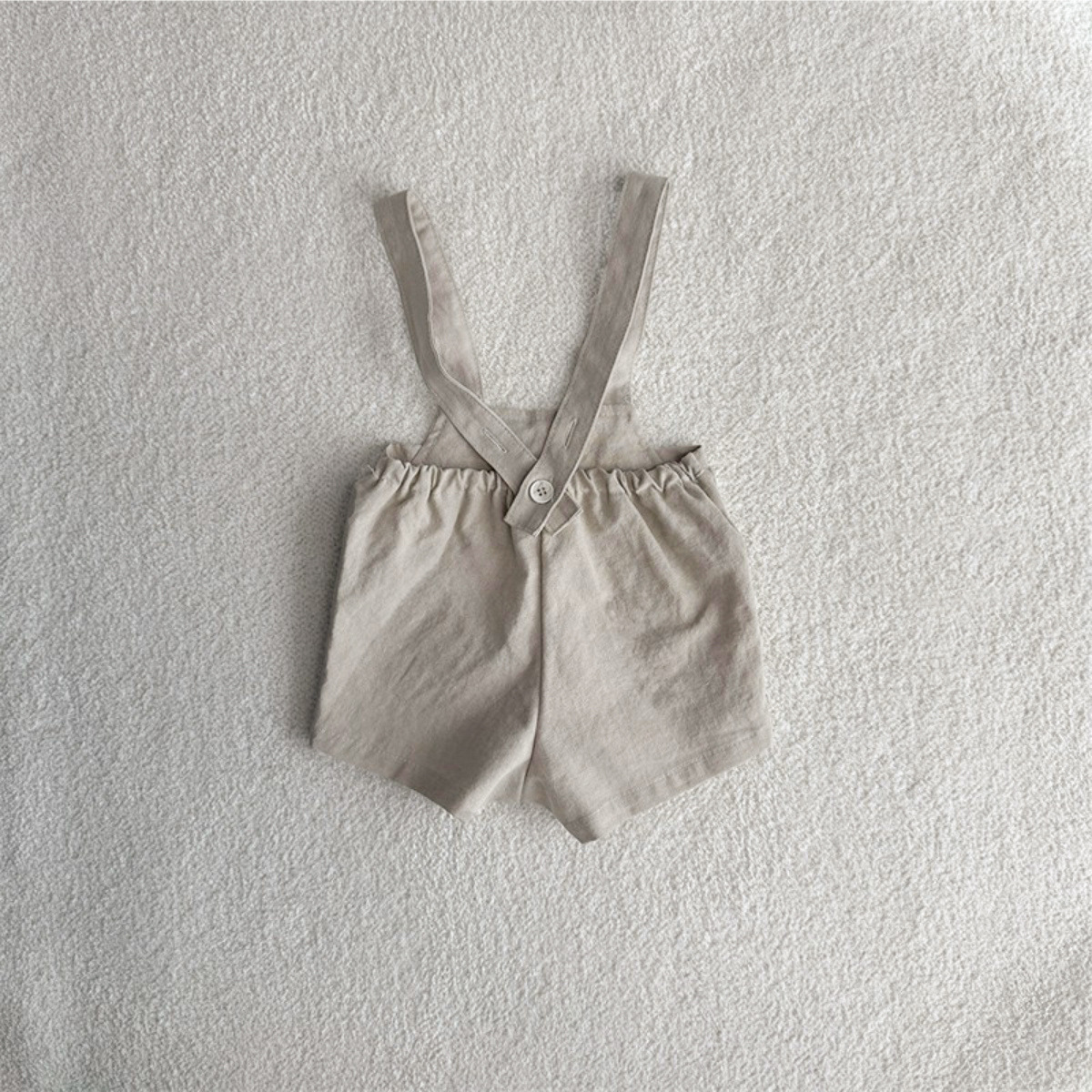 2025 남학생과 여학생을위한 여름 한국 아동복 간단한 짠 순면 멜빵 어린이 캐주얼 반바지