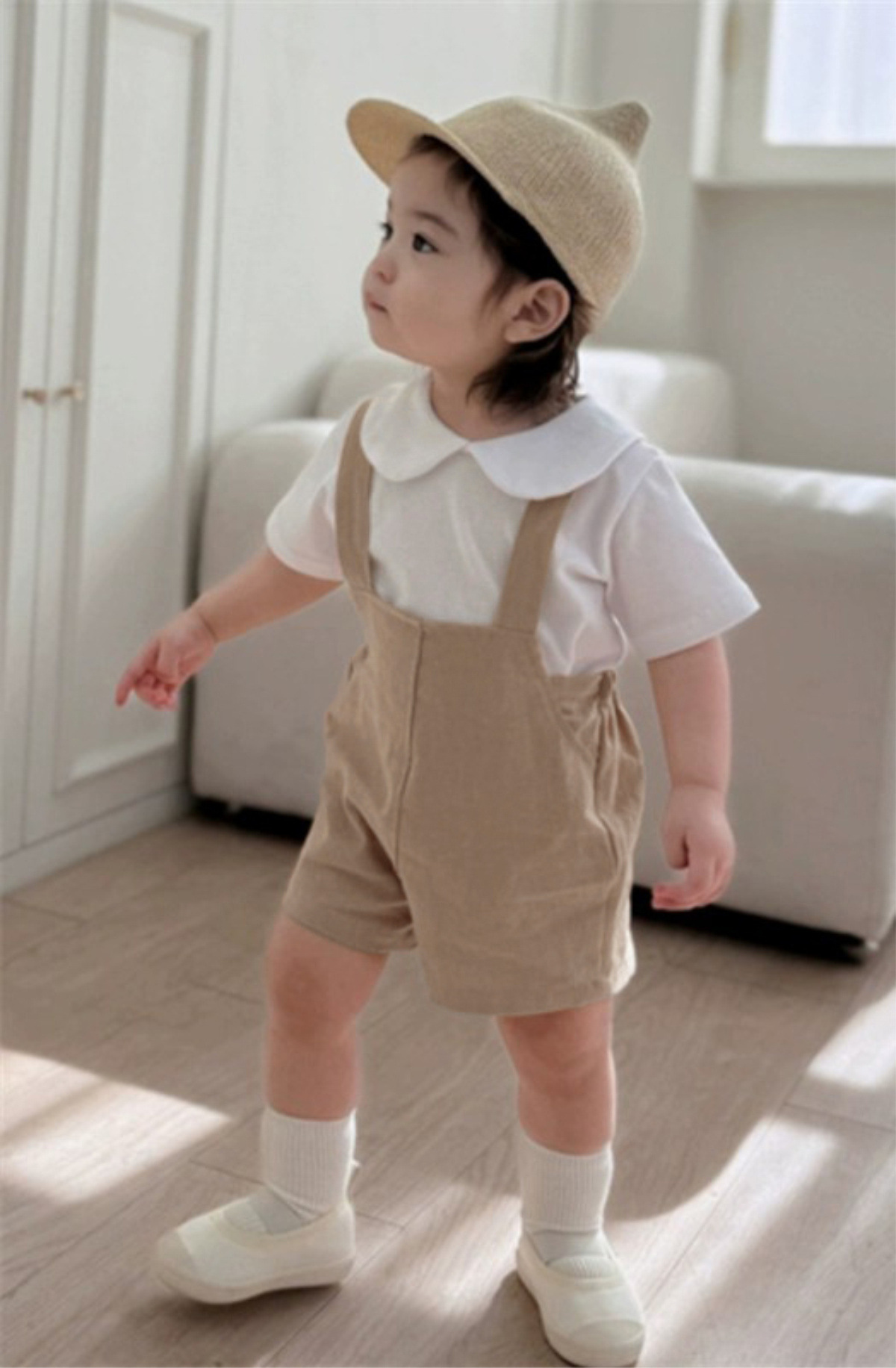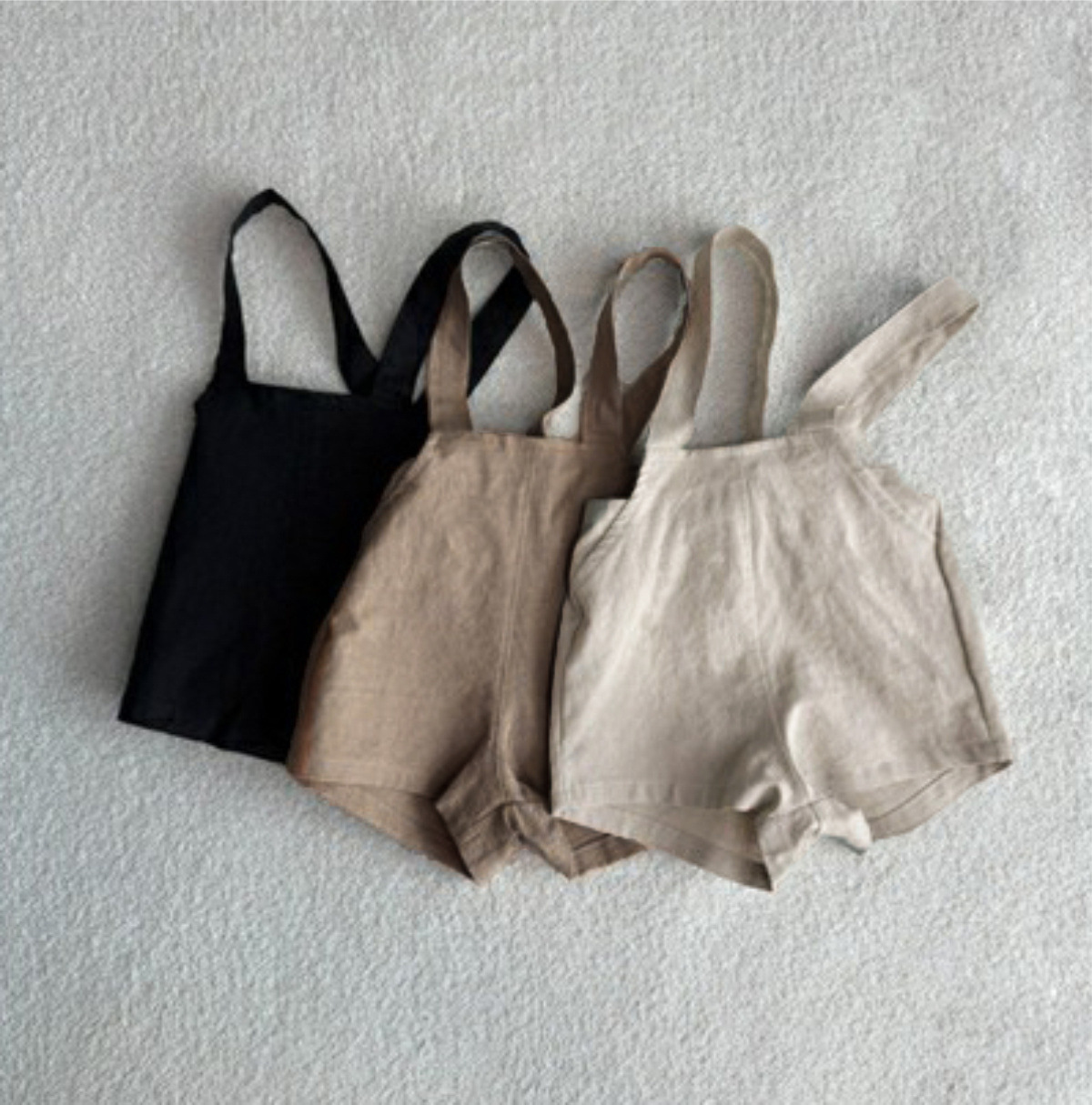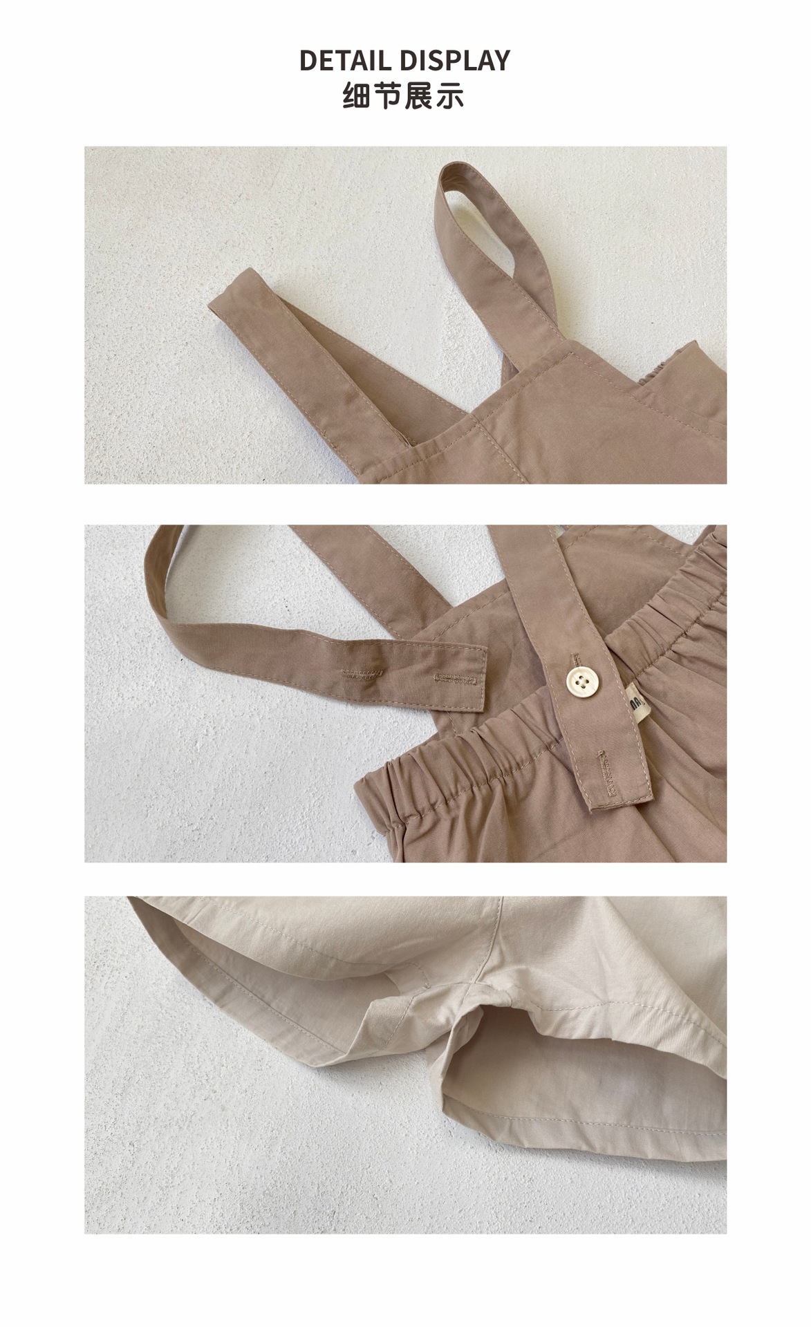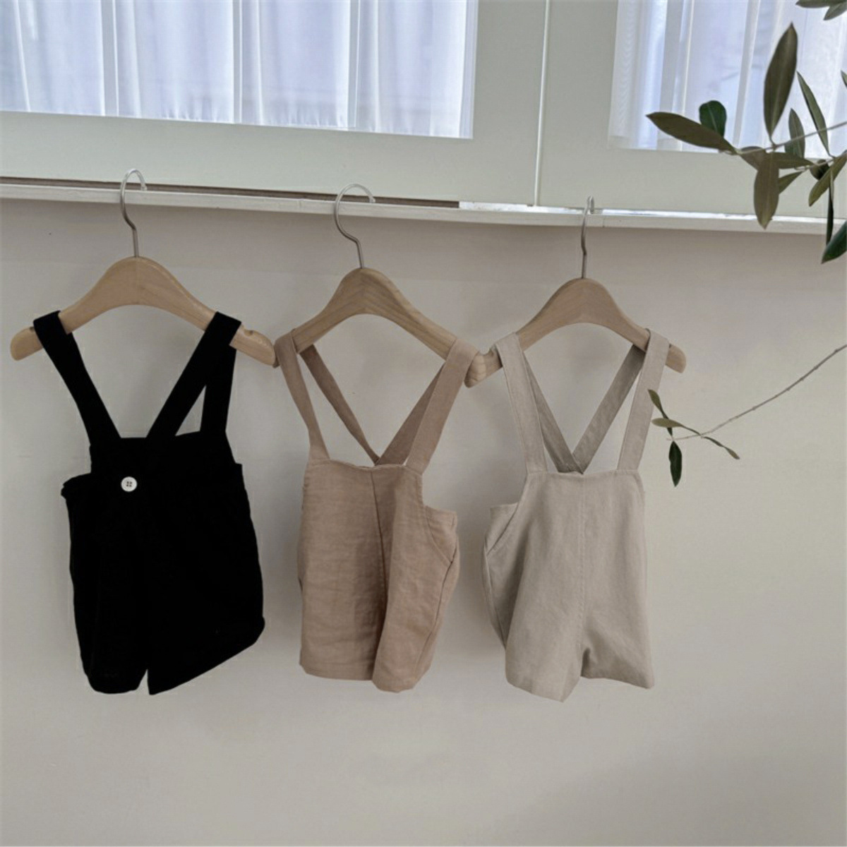 2025 남학생과 여학생을위한 여름 한국 아동복 간단한 짠 순면 멜빵 어린이 캐주얼 반바지스토어 가기
