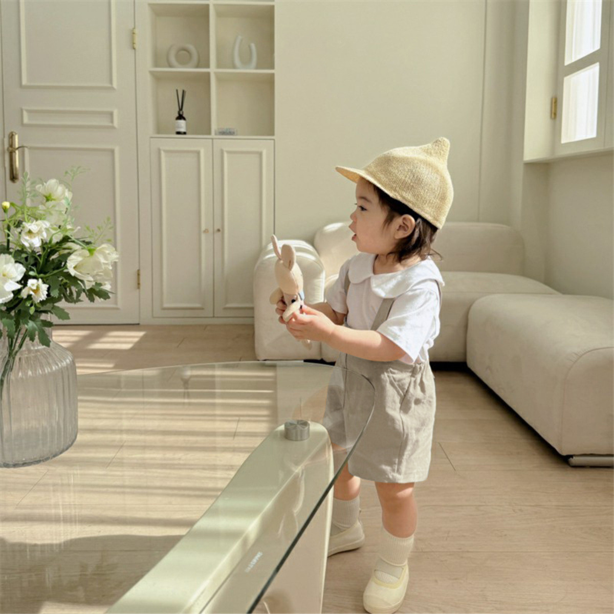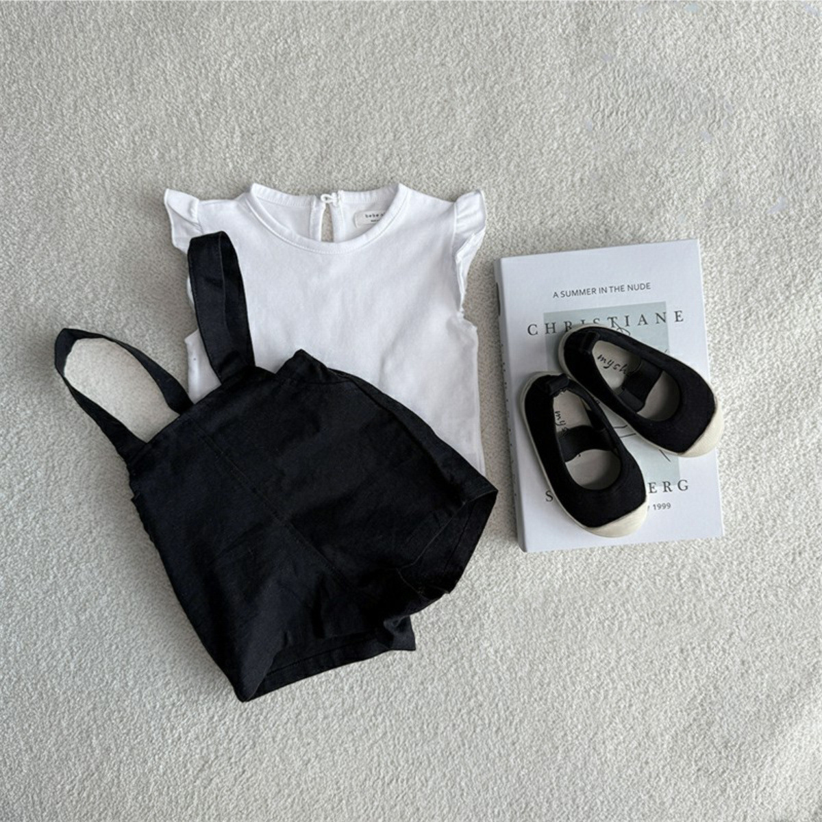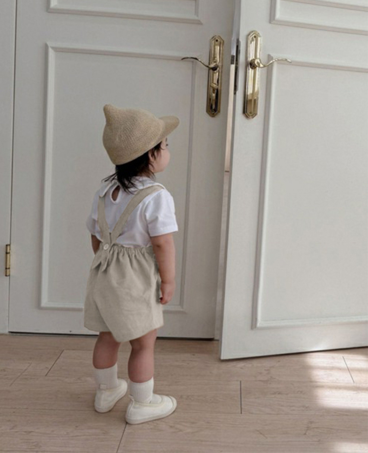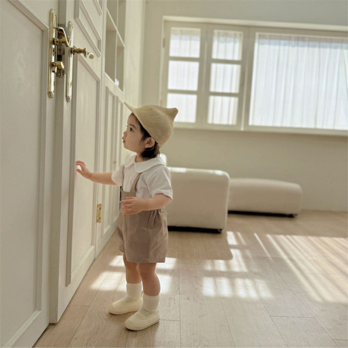 2025 남학생과 여학생을위한 여름 한국 아동복 간단한 짠 순면 멜빵 어린이 캐주얼 반바지스토어 가기