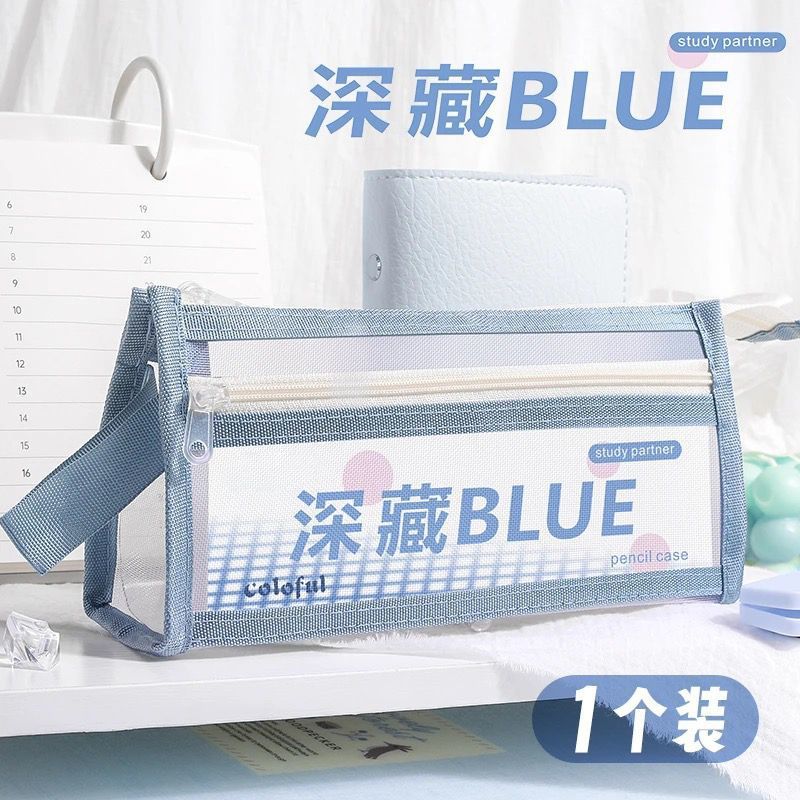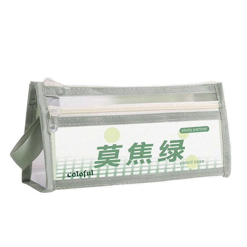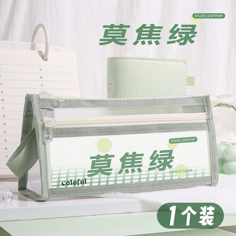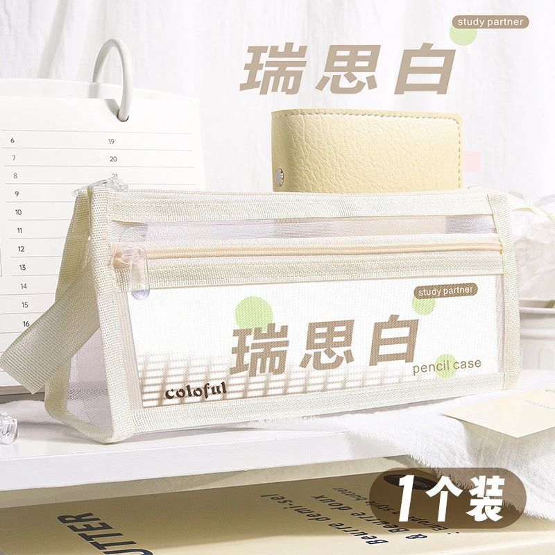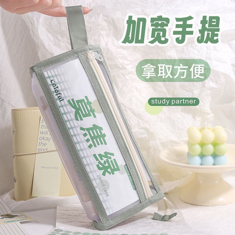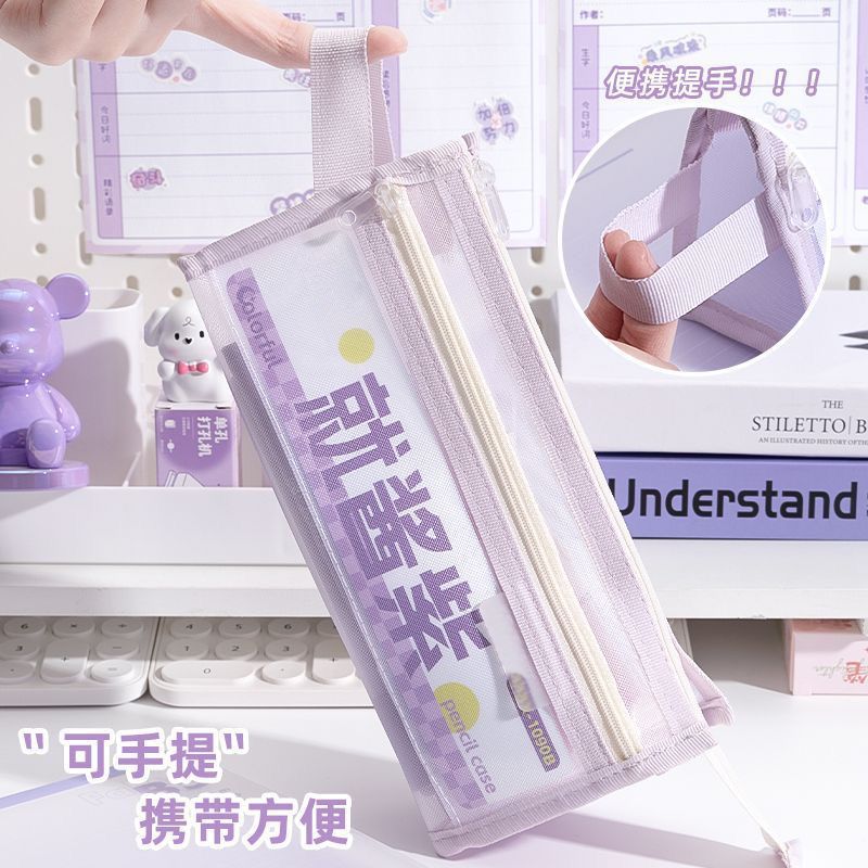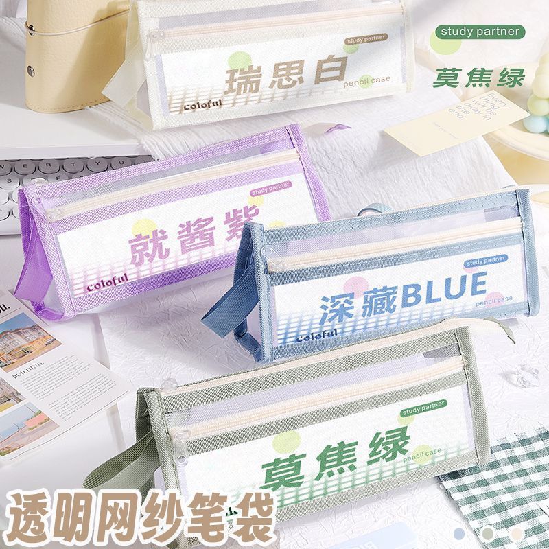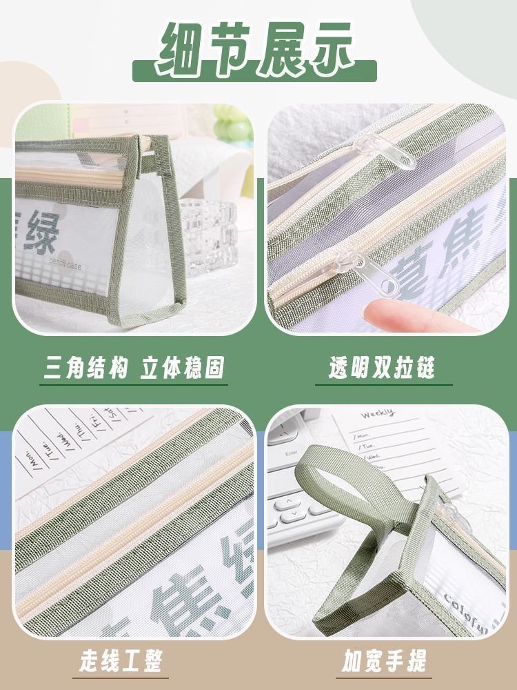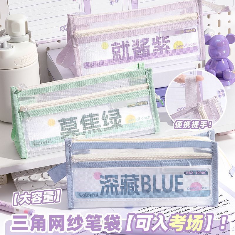 Ins 스타일 대용량 연필 가방 메쉬 투명 더블 레이어 저장 단순하고 귀여운 문구 가방 삼각형 구조가 더 안정적입니다.스토어 가기