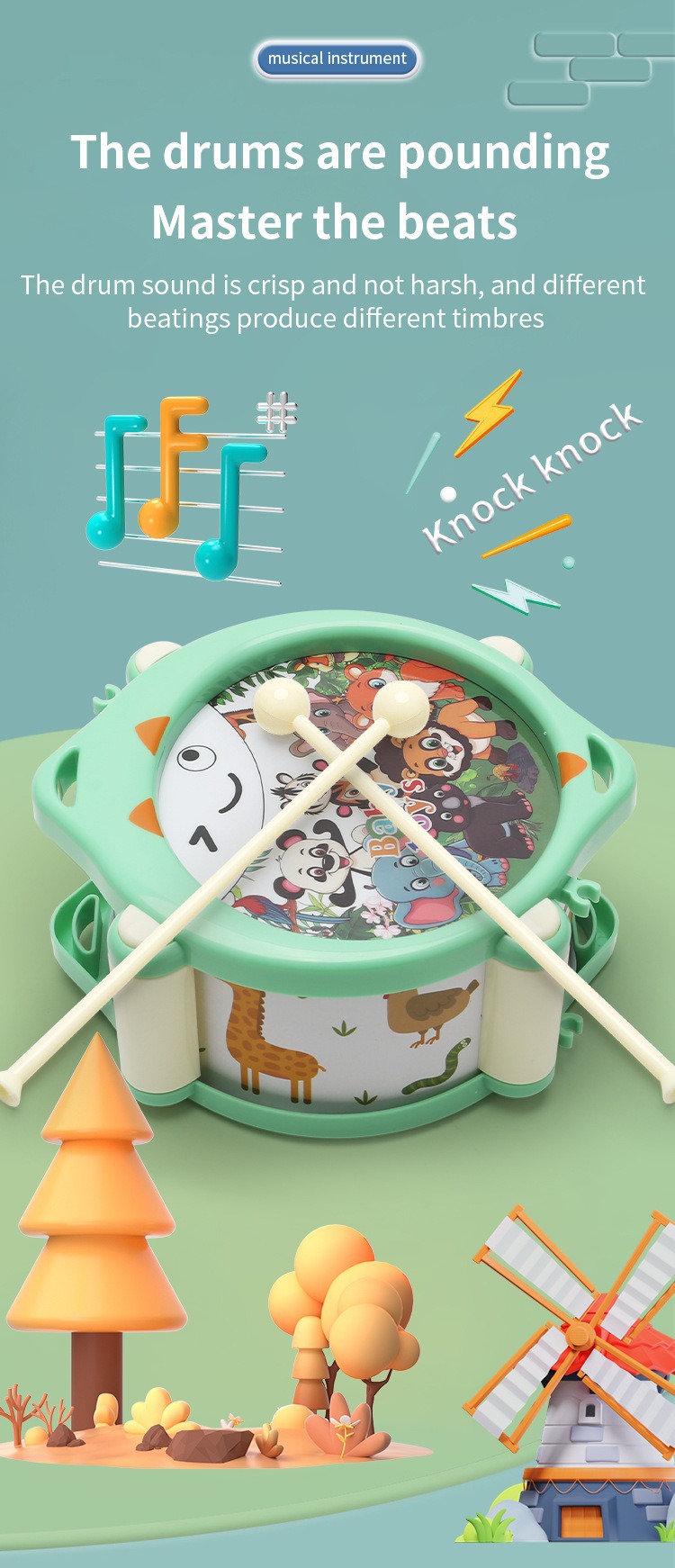 국경 간 그립 조기 교육 손 드럼 아기 교육 딸랑이 학교 주변 인기 판매 악기 훈련 음악 장난감스토어 가기