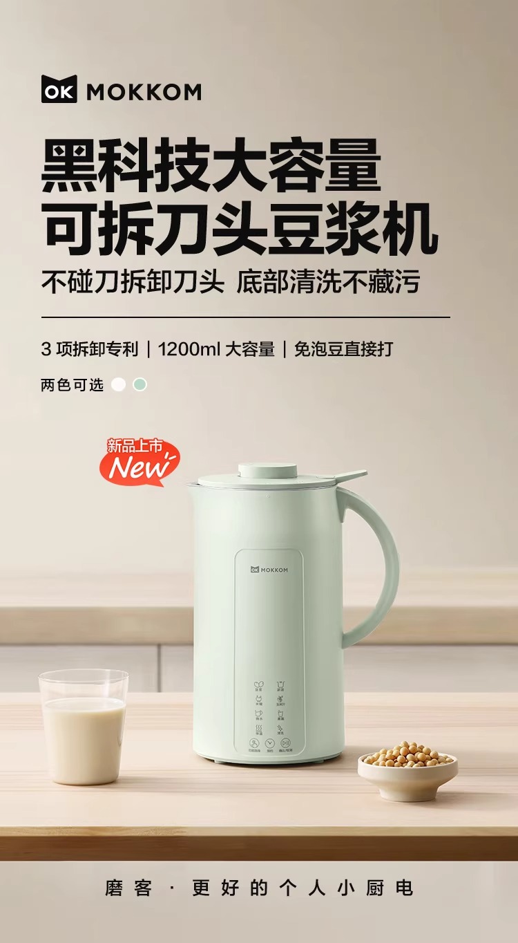 Mokkom Mini Wall Breaking Machine 완전 자동 6 목적 다기능 가열 가정용 필터 프리 두유 기계