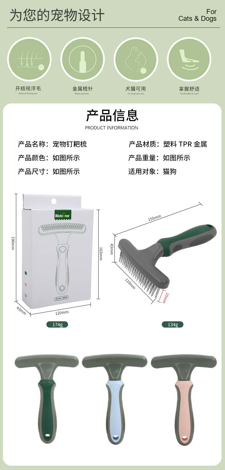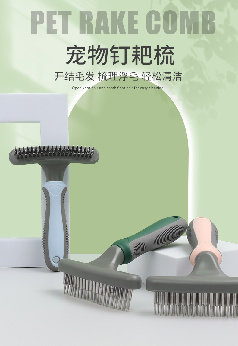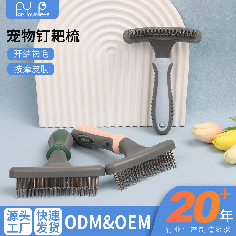 애완 동물 개 빗 오픈 매듭 제거 제모 브러시 고양이 빗 청소 및 미용 용품 애완 동물 이중 행 네일 갈퀴 빗스토어 가기