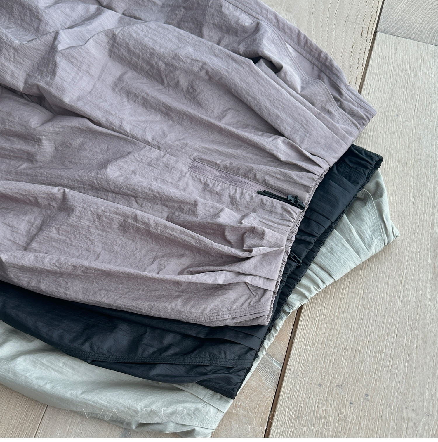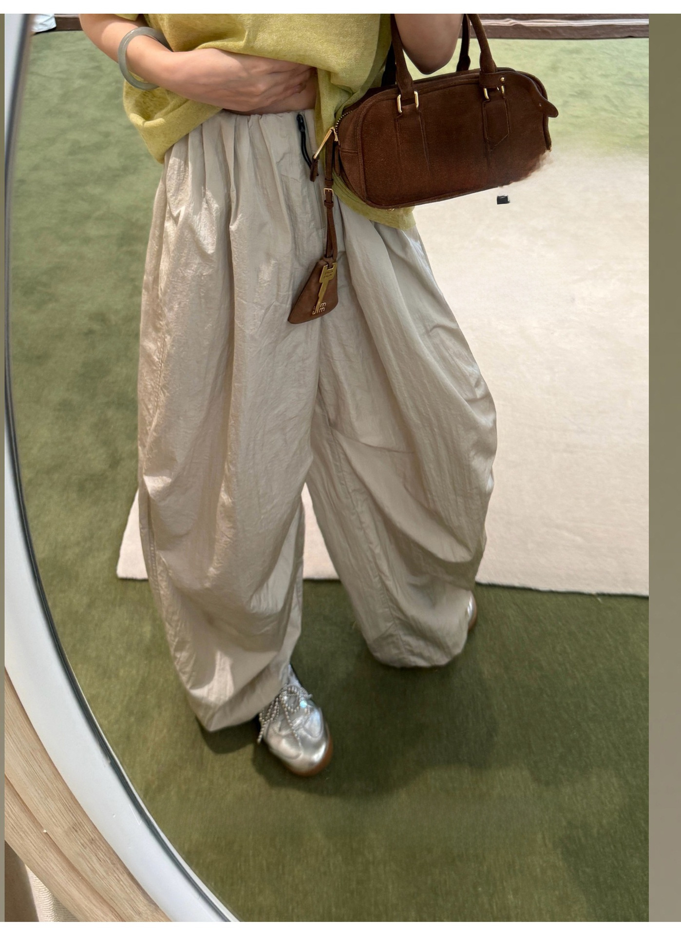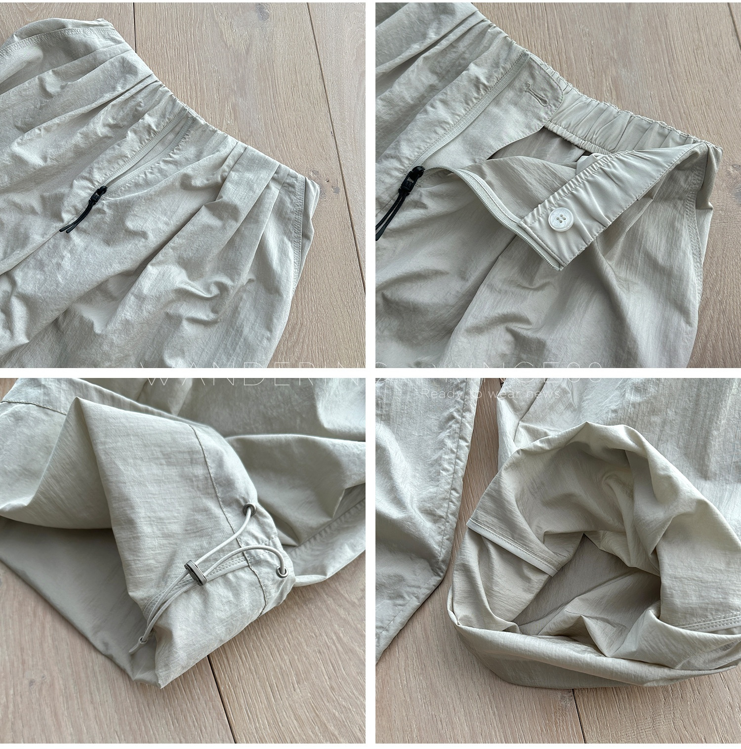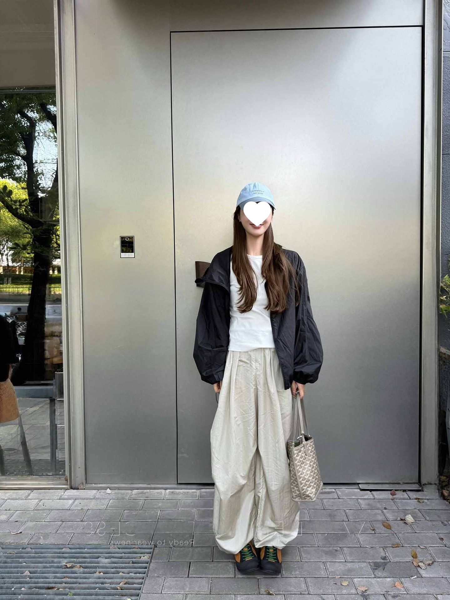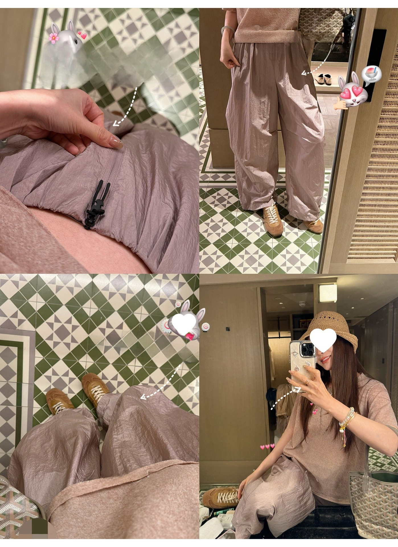 还有特地为梨形身材设计的版型细节,侧缝前移,裤前打褶,抽绳脚口
