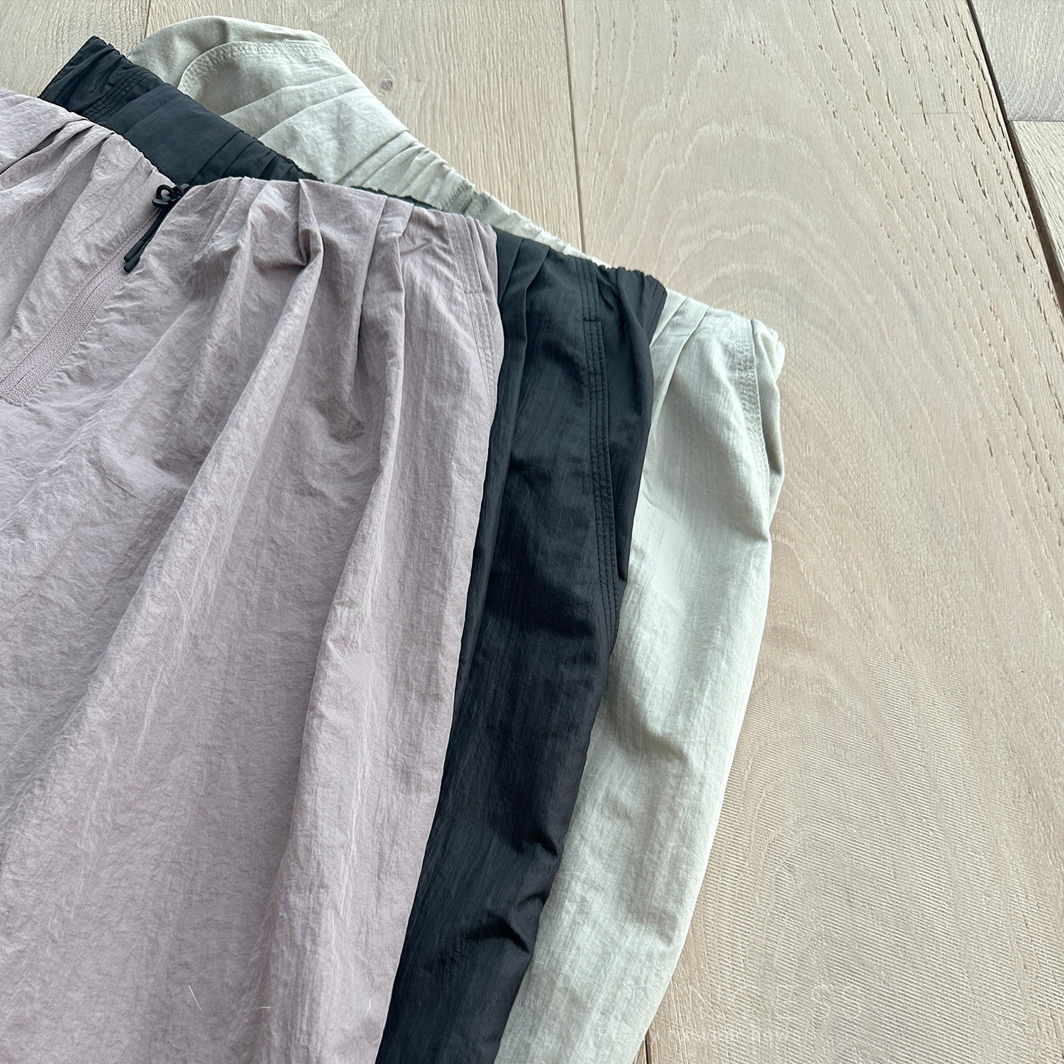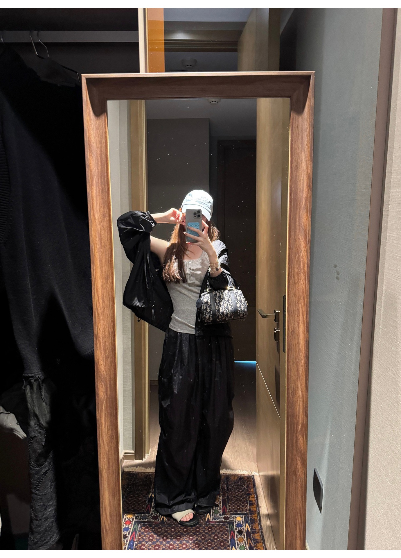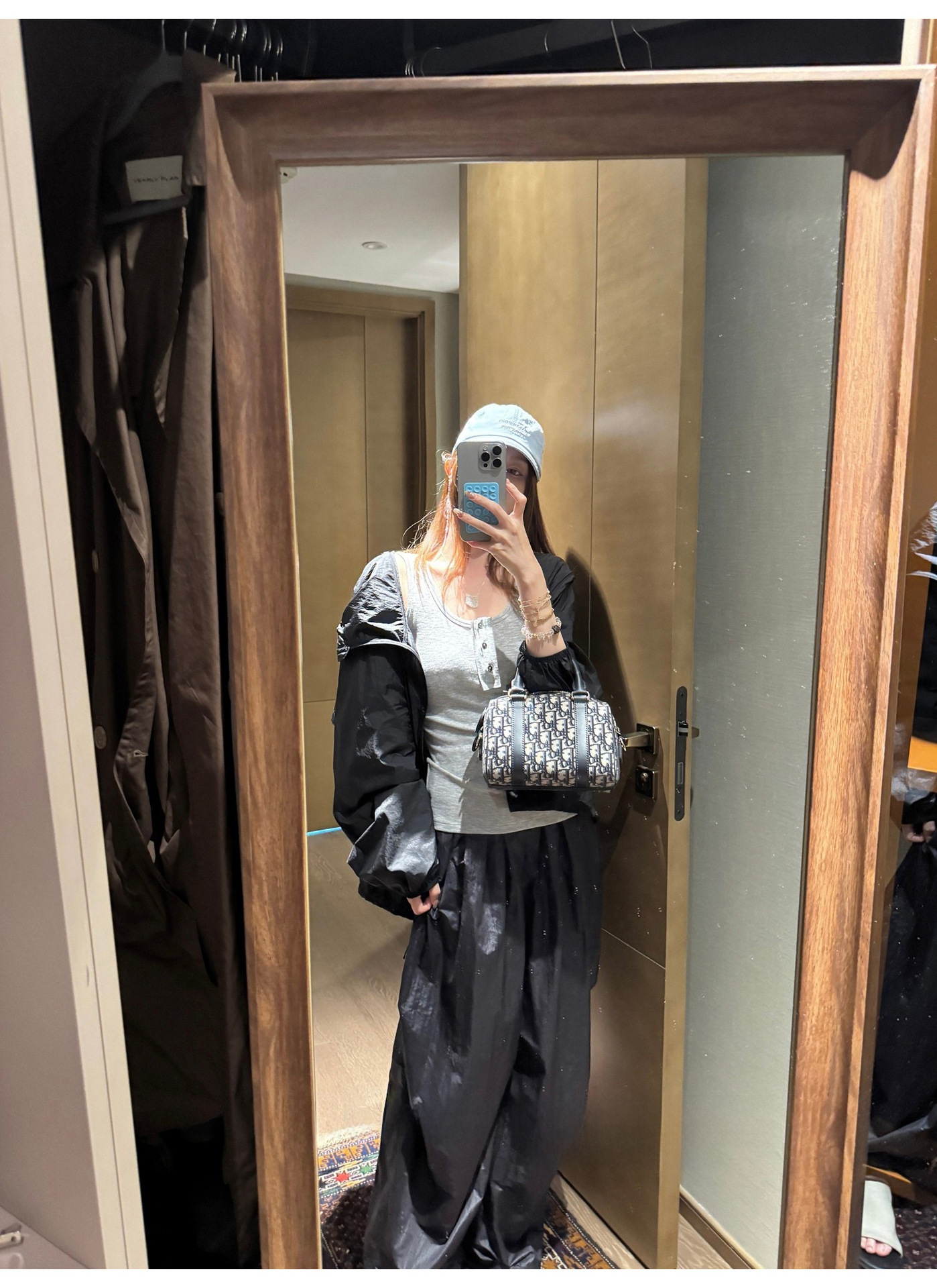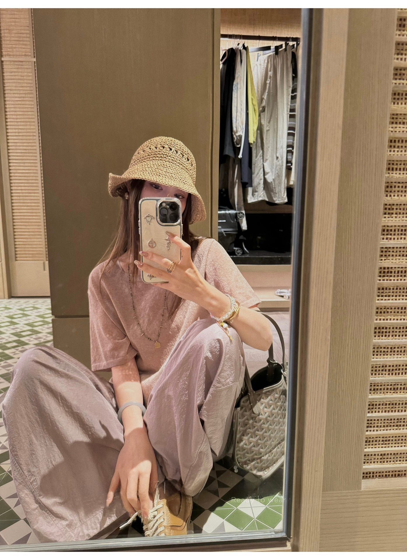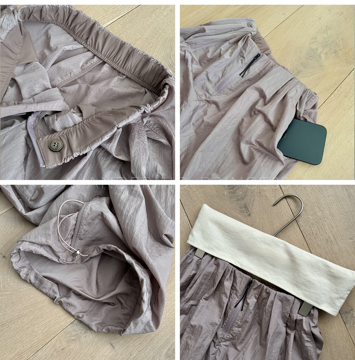 还有特地为梨形身材设计的版型细节,侧缝前移,裤前打褶,抽绳脚口